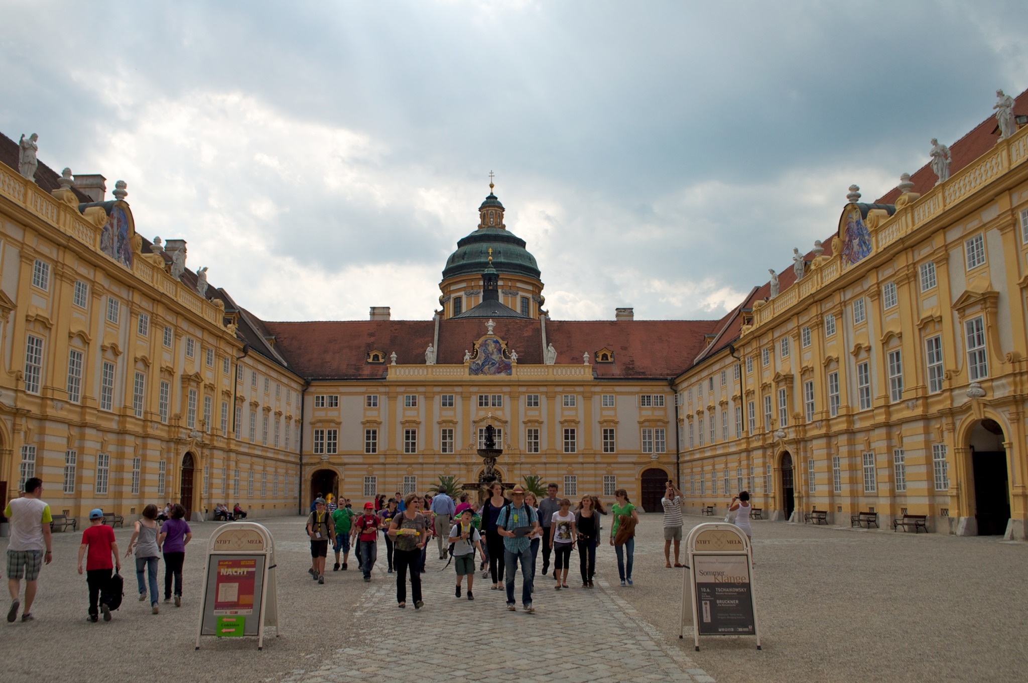 Nach dem Regen von gestern Abend waberten heute früh Nebelschwaden über die Donau, doch schon bald schien wieder meistens die Sonne über unserer heutigen Tour von Grein über Ybbs (nicht mit den Yps-Heften aus Euerer Kindheit verwechseln) und Melk nach Emmersdorf. Damit sind wir in der Wachau angekommen. Zwischendrin gab es noch eine echte Bergerklimmung, um eine schöne Kirche und ein Schloss zu besichtigen.