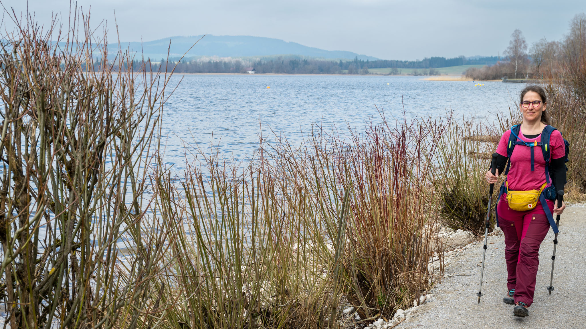 Mit Bus und Bahn ging es heute früh von Strobl über Salzburg zur Haltestelle Wallersee am Nordufer des Sees. Von dort haben wir den See im Uhrzeigersinn umrundet – zunächst durchs Wenger Moor und dann möglichst direkt am See entlang bis Seekirchen am Wallersee.