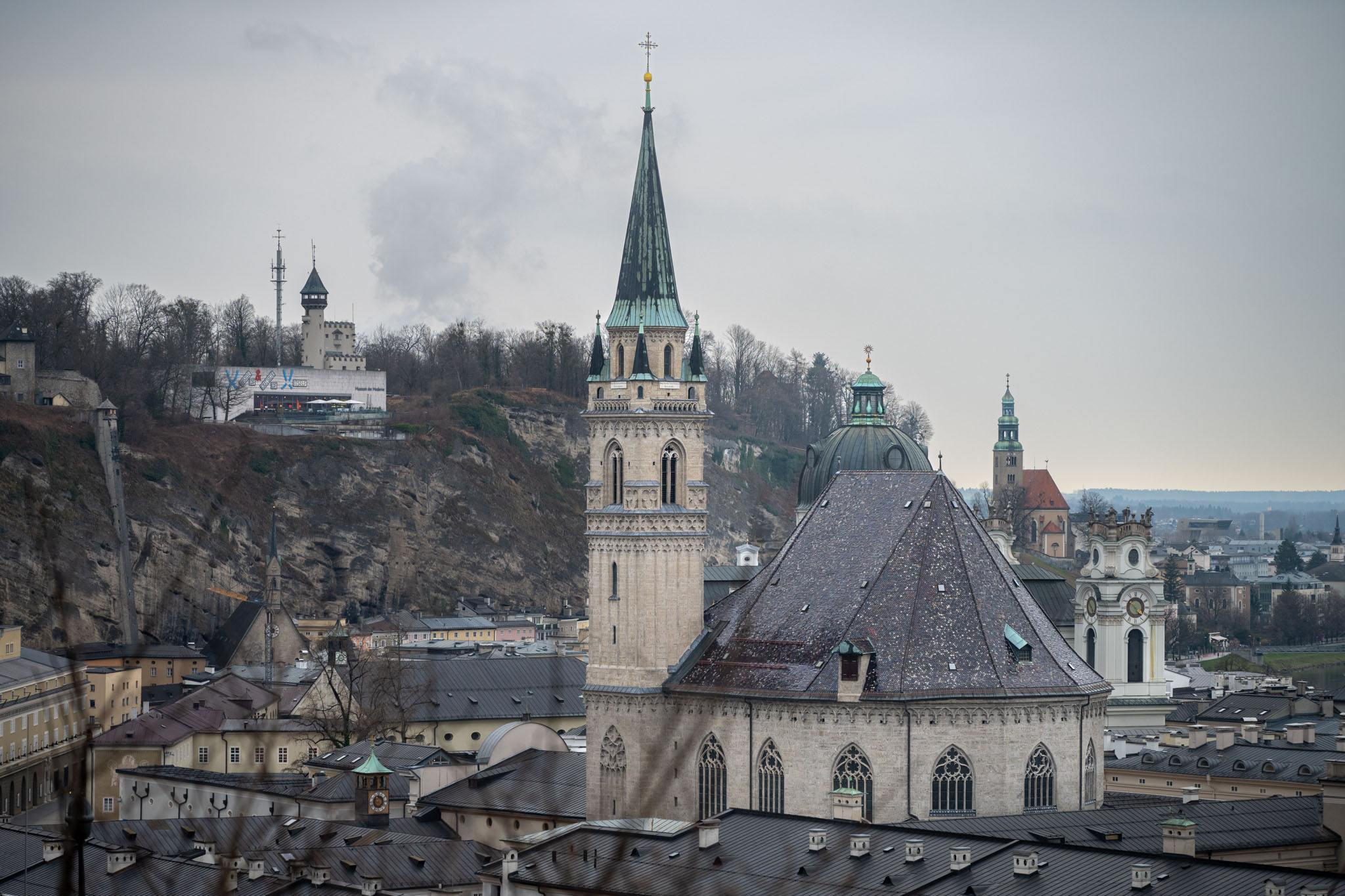 So sind wir mit dem nächsten Bus nach Salzburg gefahren und haben dort zu Mittag gegessen. Es gab Wiener Schnitzel, Spinatknödel und Mozart-Topfenknödel. Nach einem ausgiebigen Rundgang durch die Altstadt und auf die Festung sowie dem obligatorischen Einkauf von Mozartkugeln, sind wir dann zum Abendessen in ein gutes Burger-Restaurant (kein Fast Food!) gegangen, das wir von früheren Salzburg-Besuchen schon kannten.
