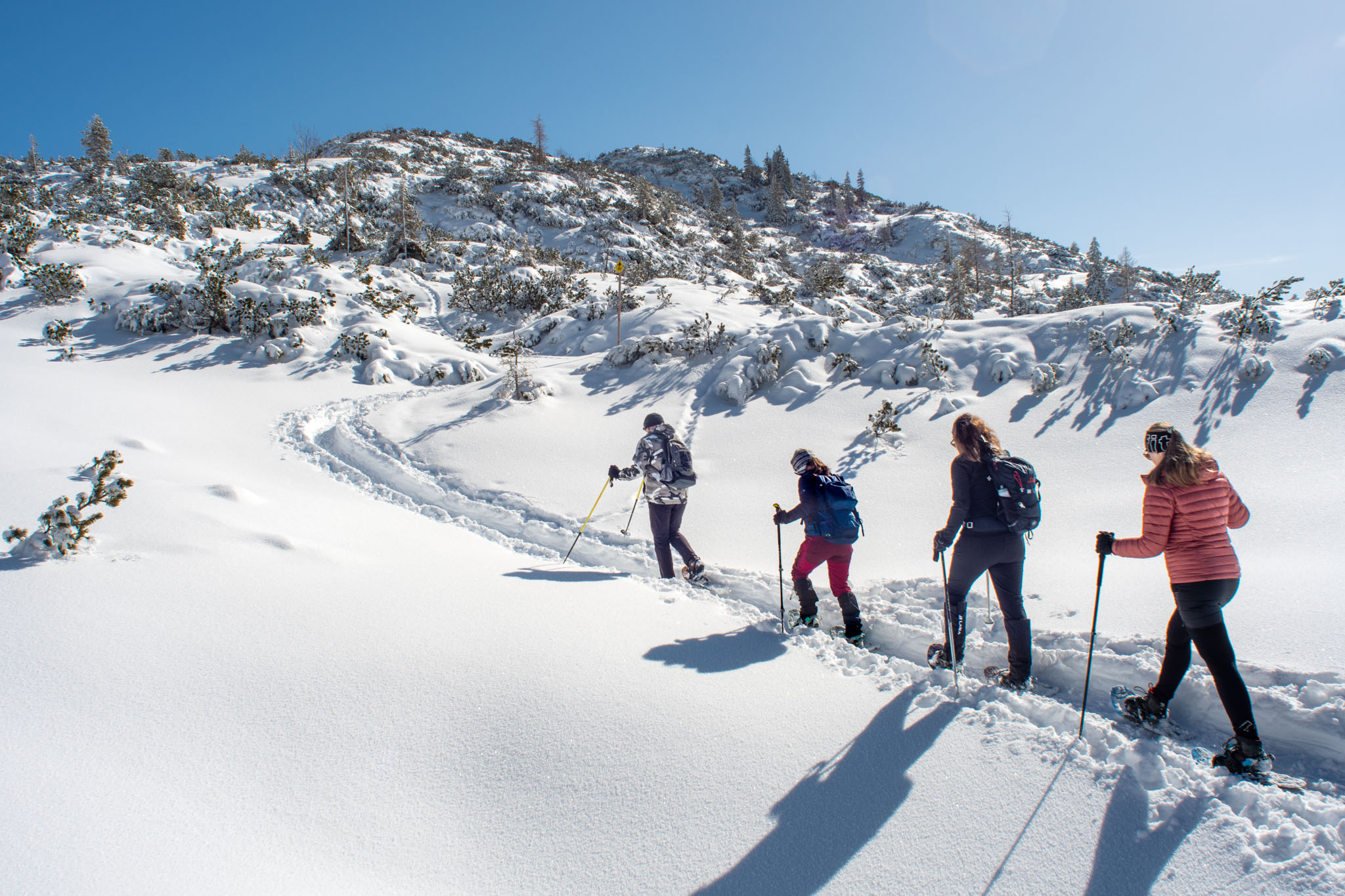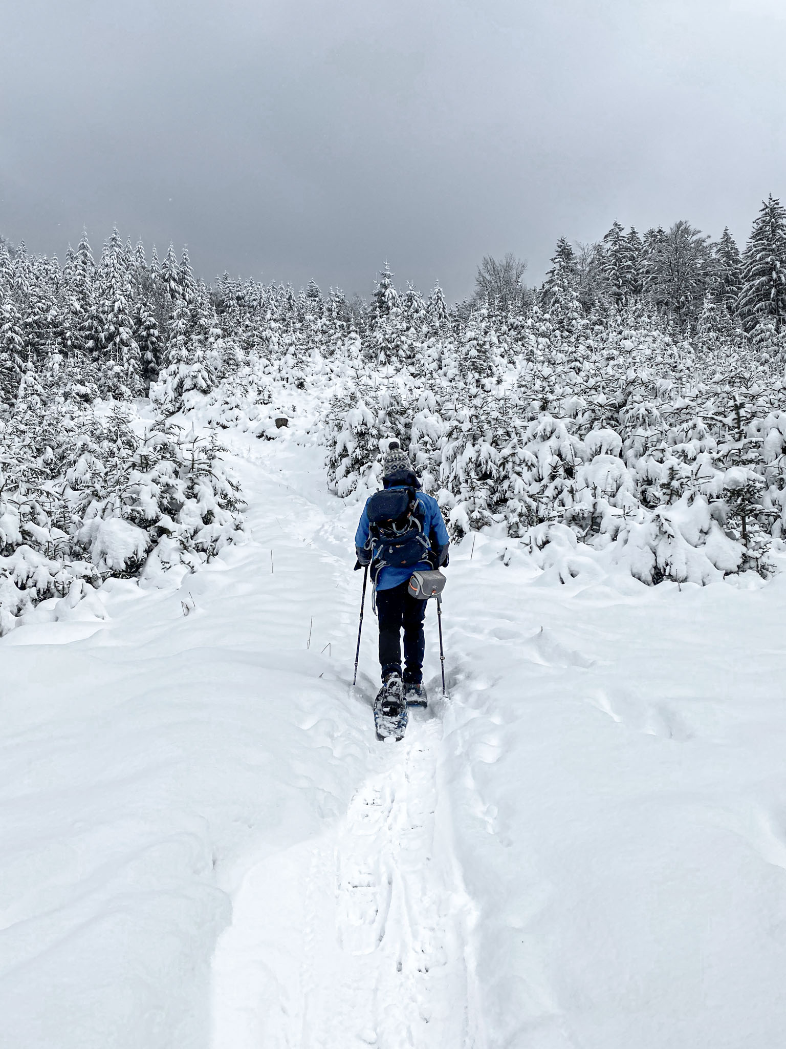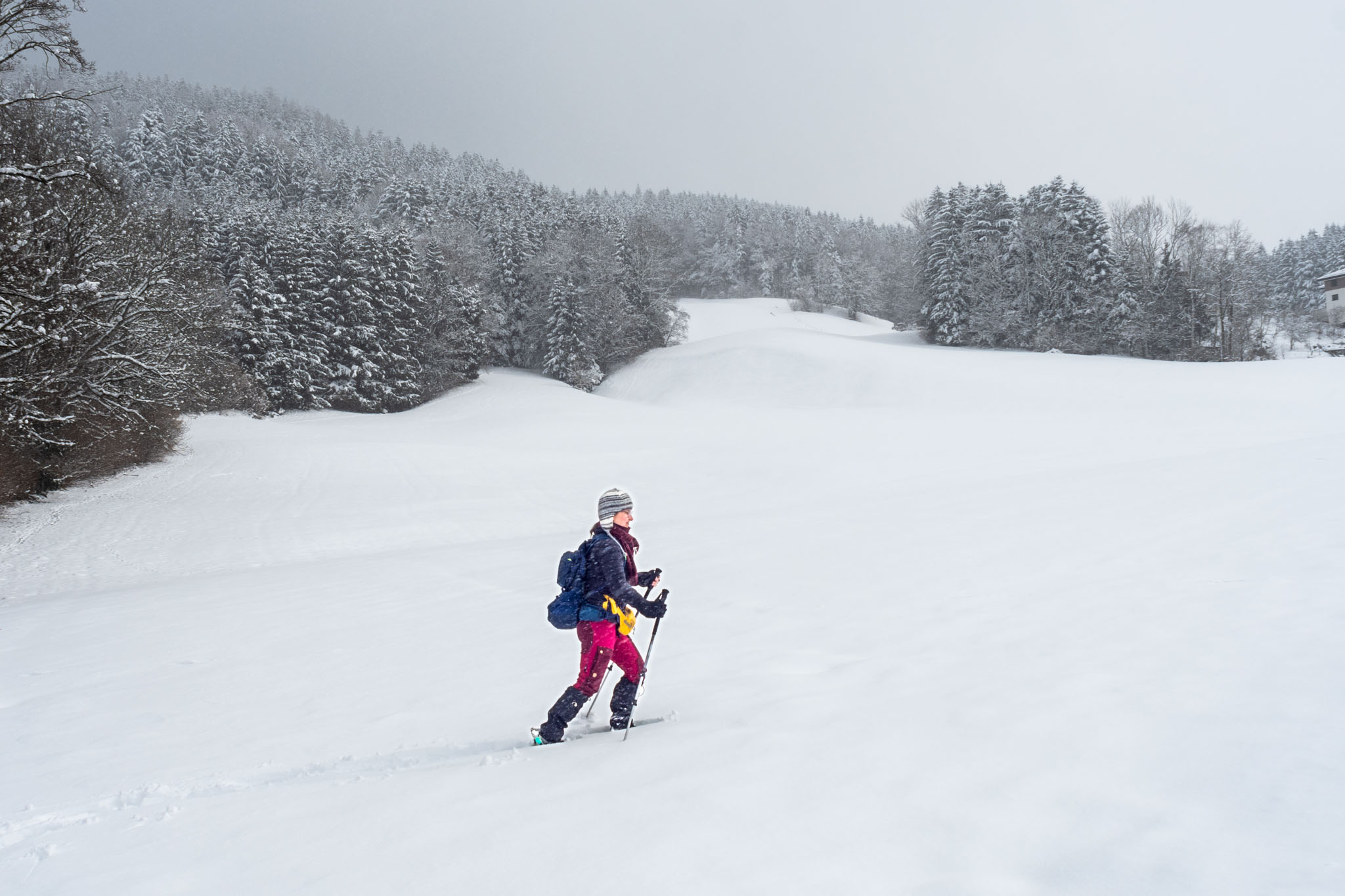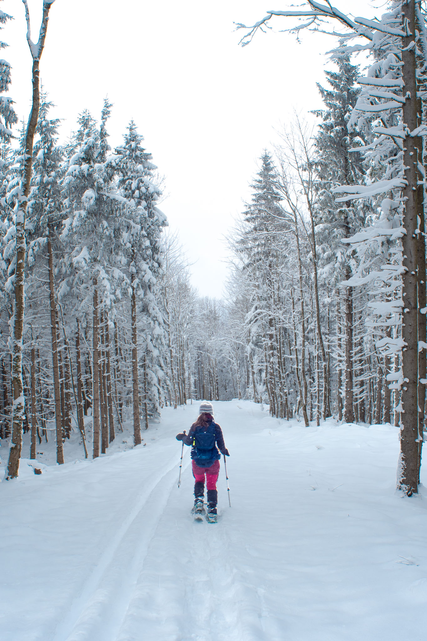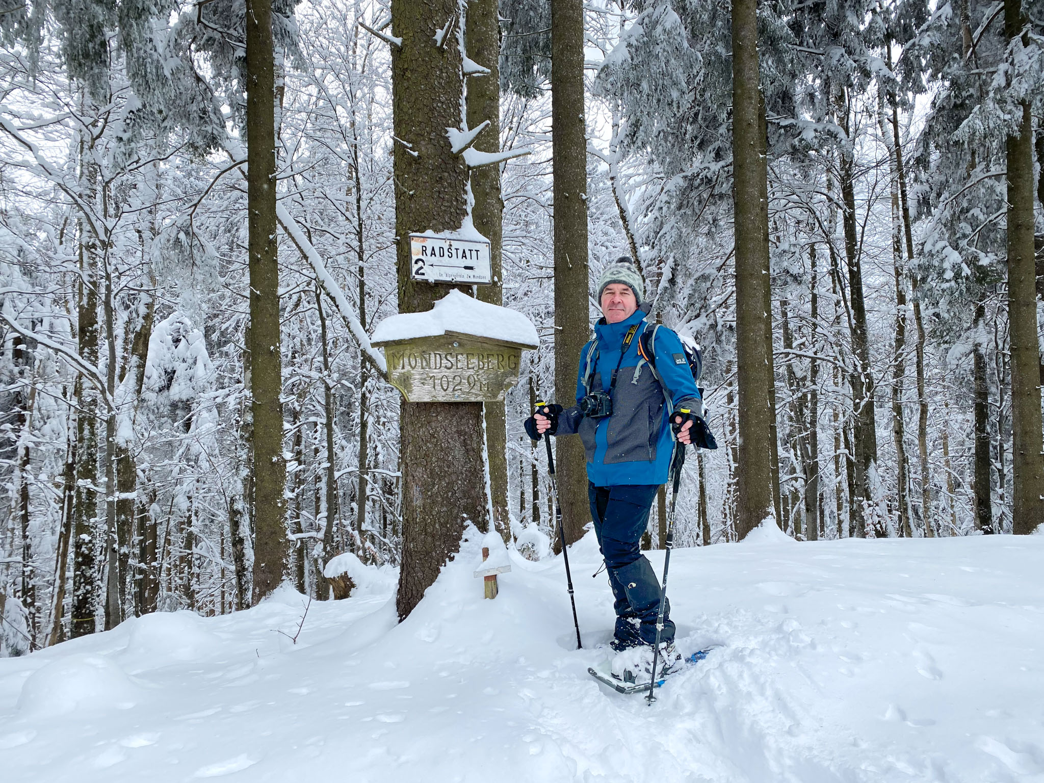 Mit dem Bus sind wir via St. Gilgen nach Mondsee gefahren und oberhalb des Mondsees zu einer mehrstündige Schneeschuhtour durch den frisch tiefverschneiten Wald auf den Mondseeberg aufgebrochen.