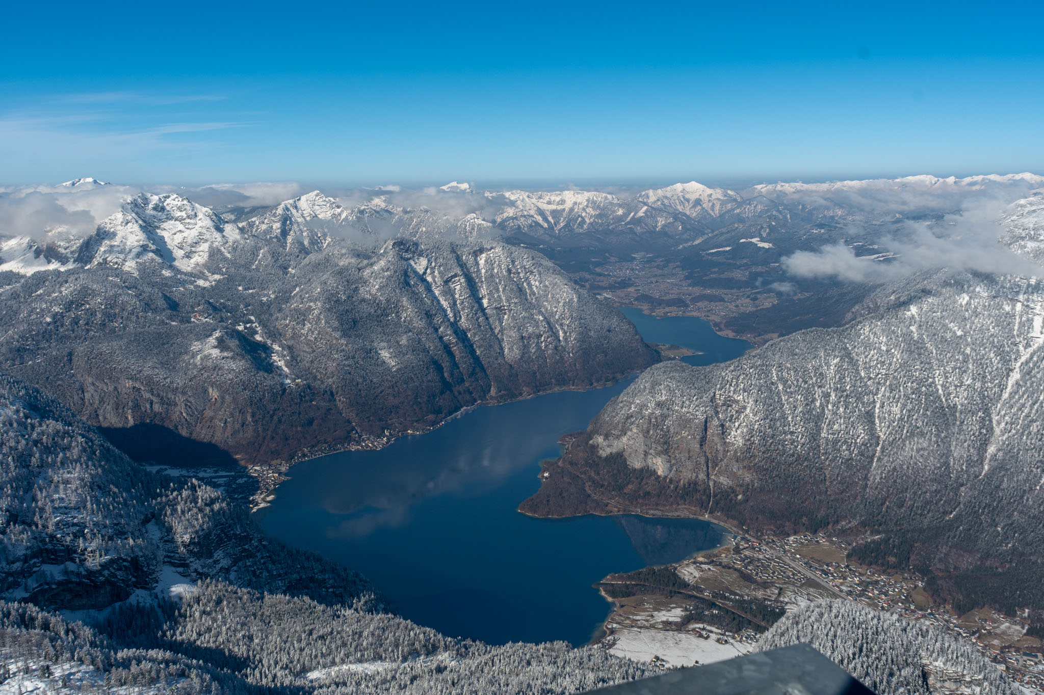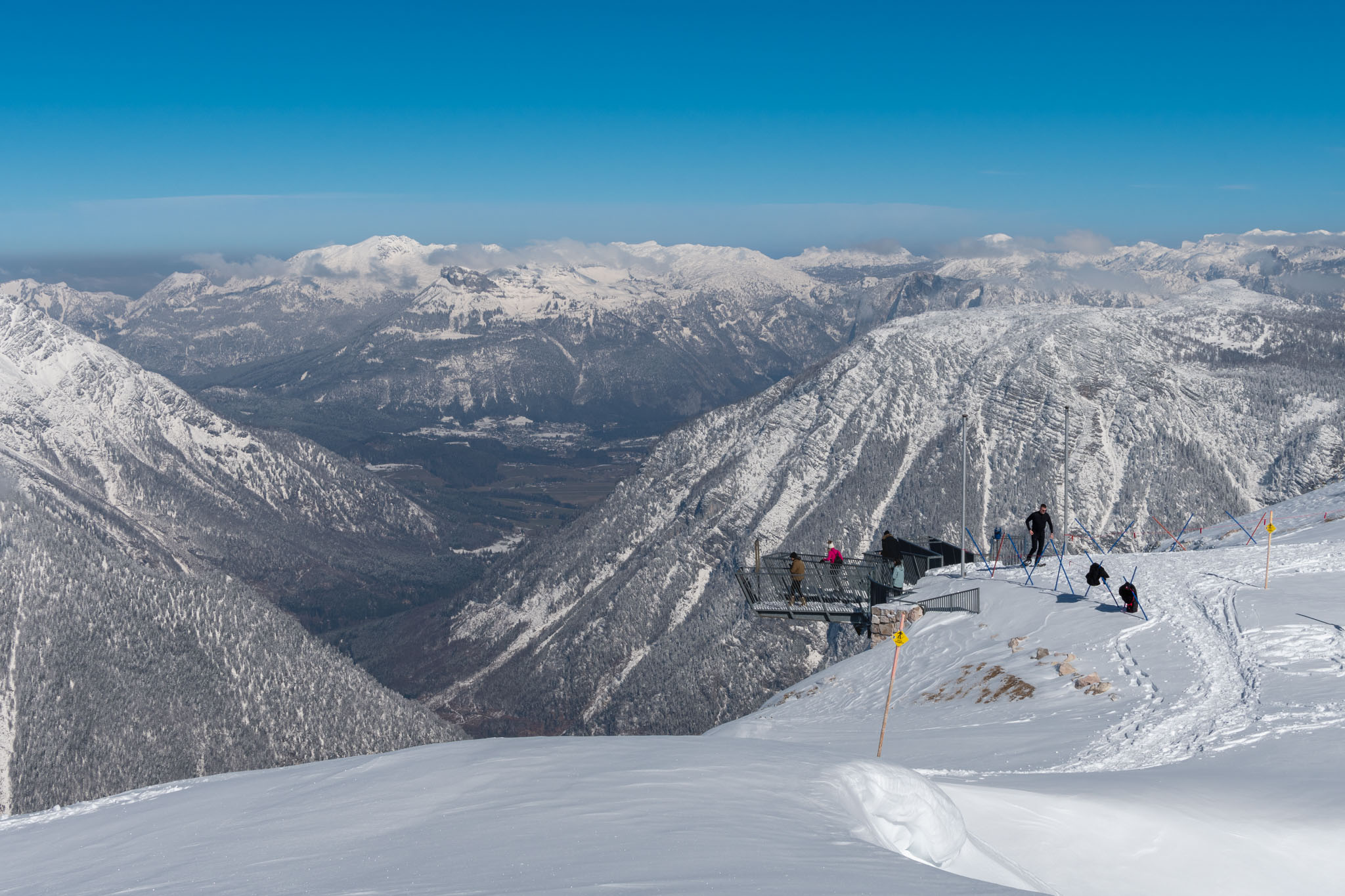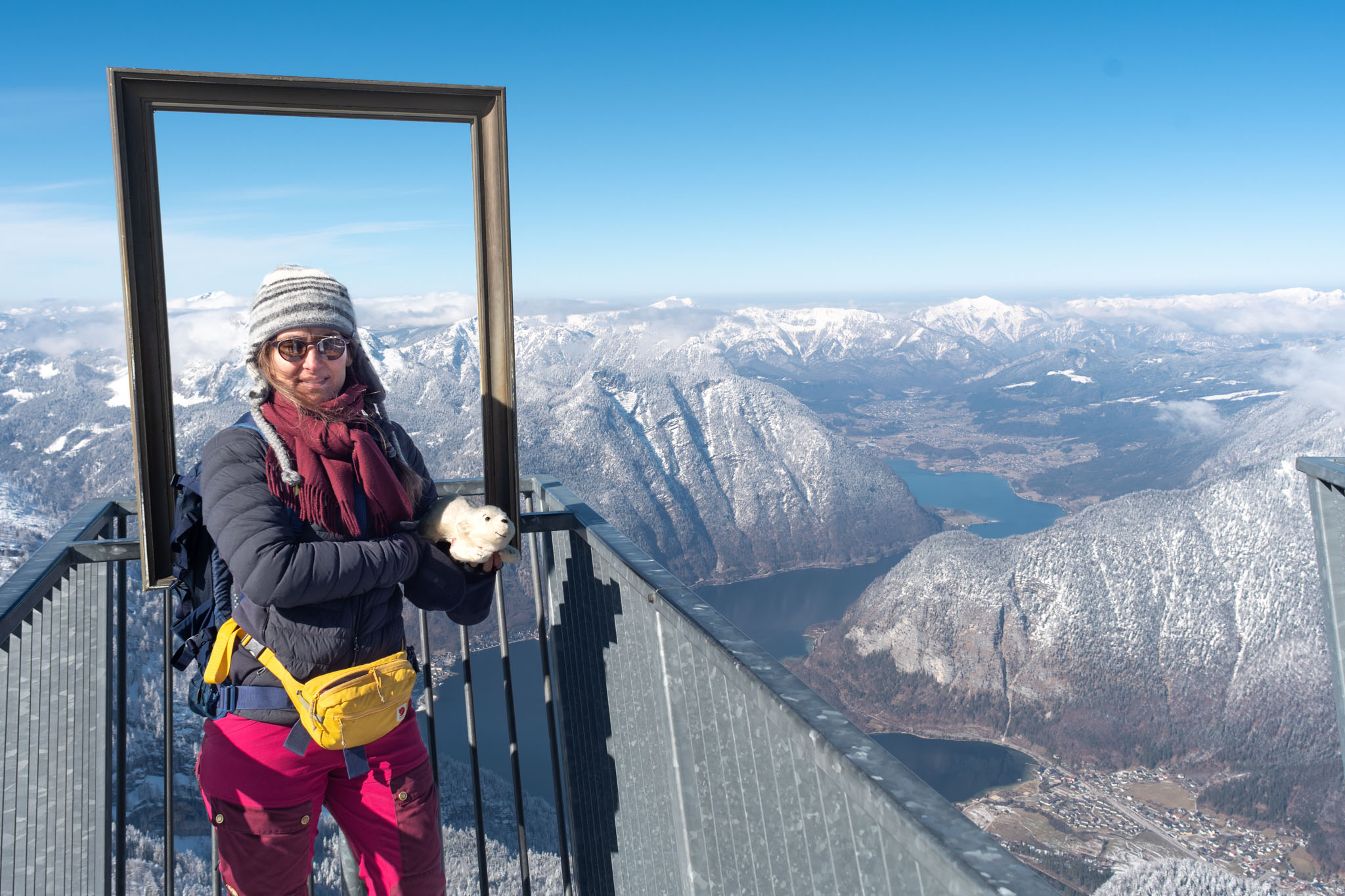 Den ersten richtig sonnigen Tag haben wir genutzt, um via Bad Ischl und Hallstatt nach Obertraun zu fahren und uns dort mit der Seilbahn auf den Krippenstein bringen zu lassen. Dort wurden die Schneeschuhe angeschnallt und wir wanderten zu zwei Aussichtspunkten um die Aussicht über den Hallstätter See zu genießen. Den zweiten dieser Aussichtspunkte, die "5fingers" hätten wir gerne vergangenen September schon zum Abschluss des SalzAlpenSteigs besucht, aber damals war das Wetter am letzten Tag schlicht und einfach zu regnerisch, als dass sich das gelohnt hätte.