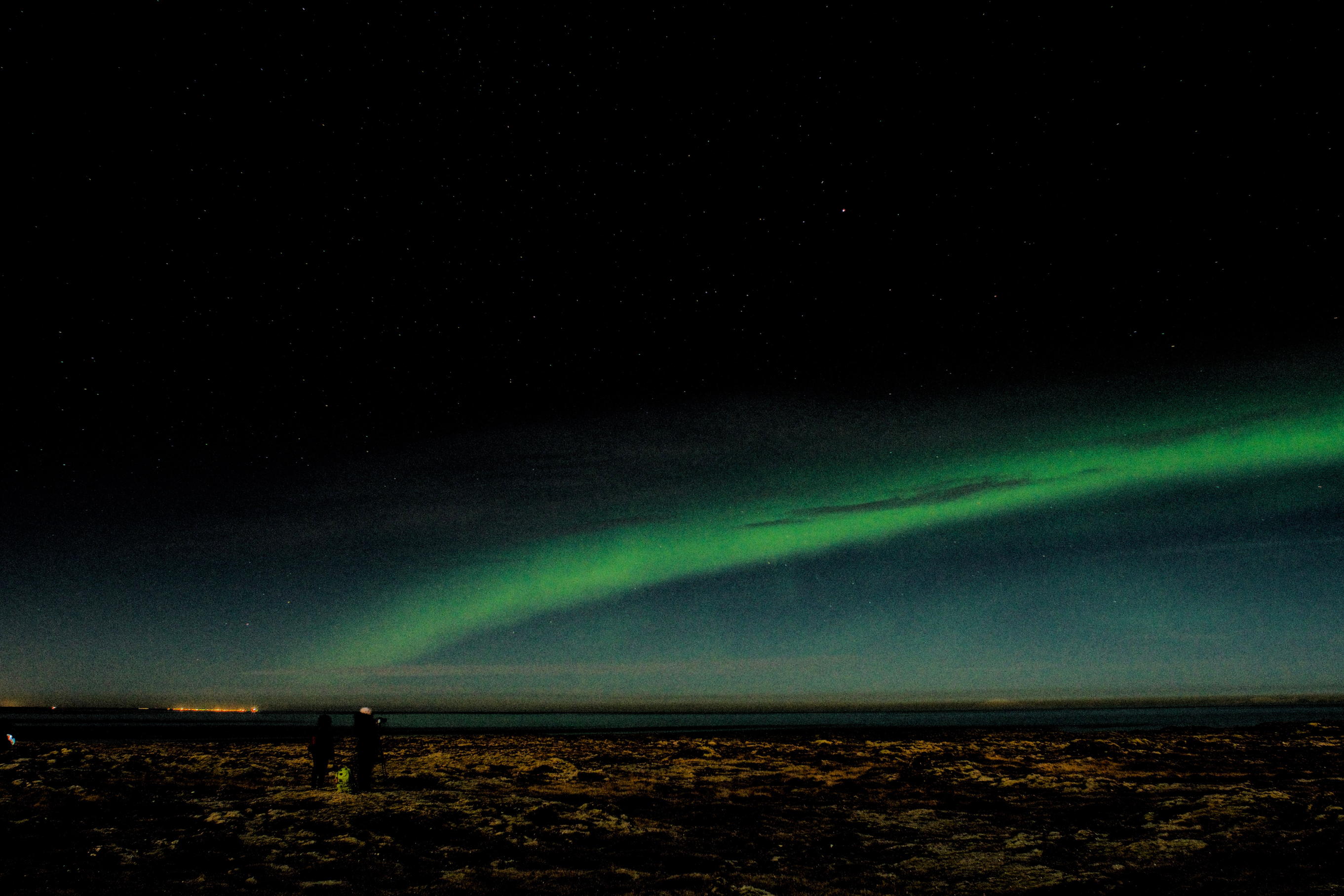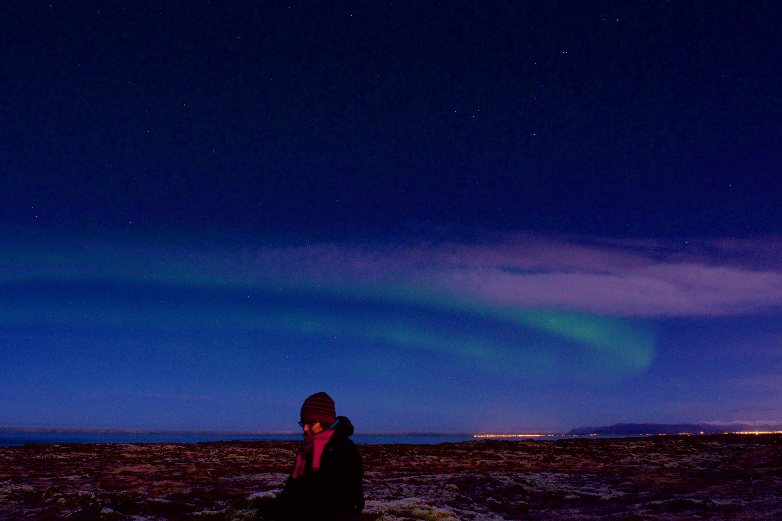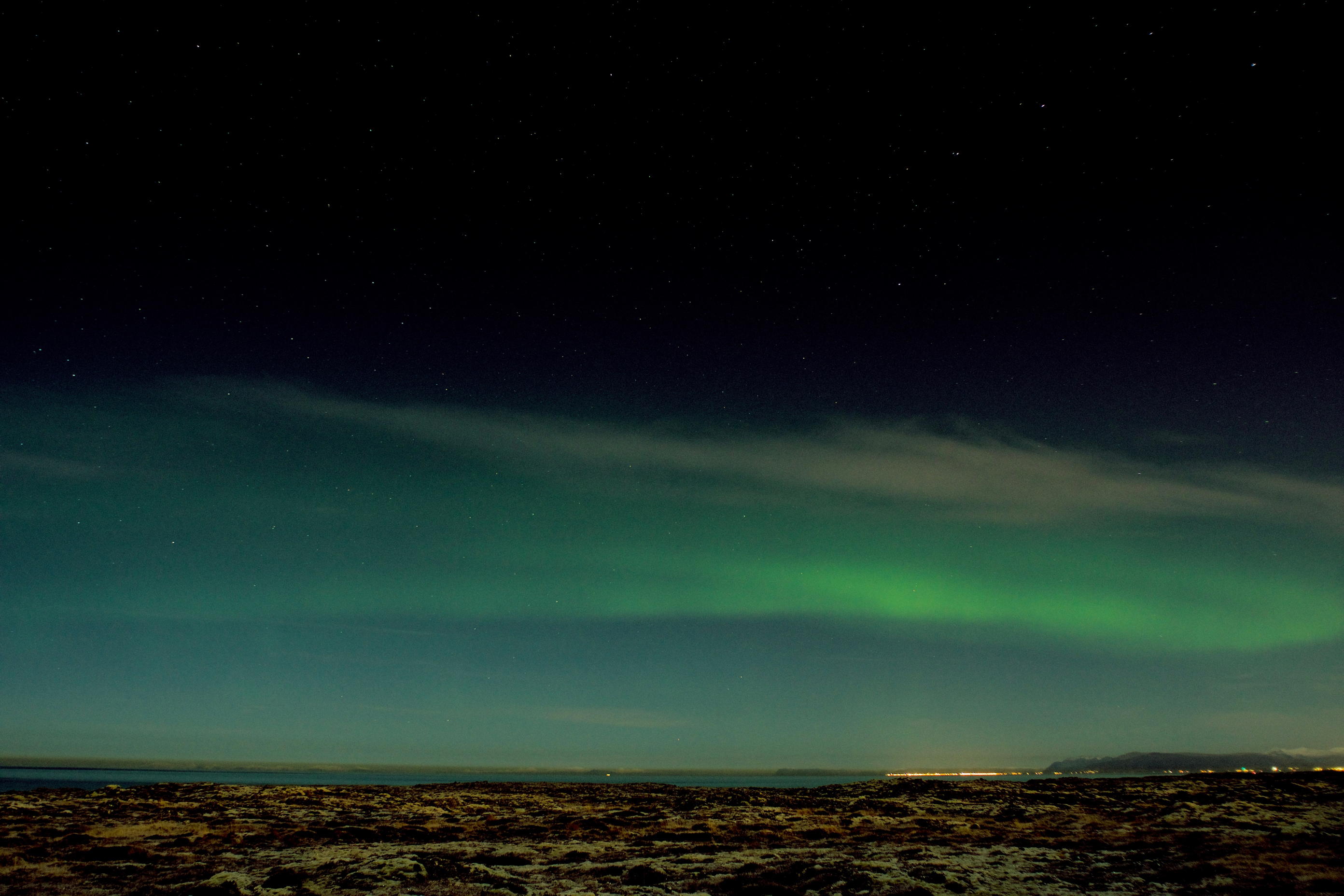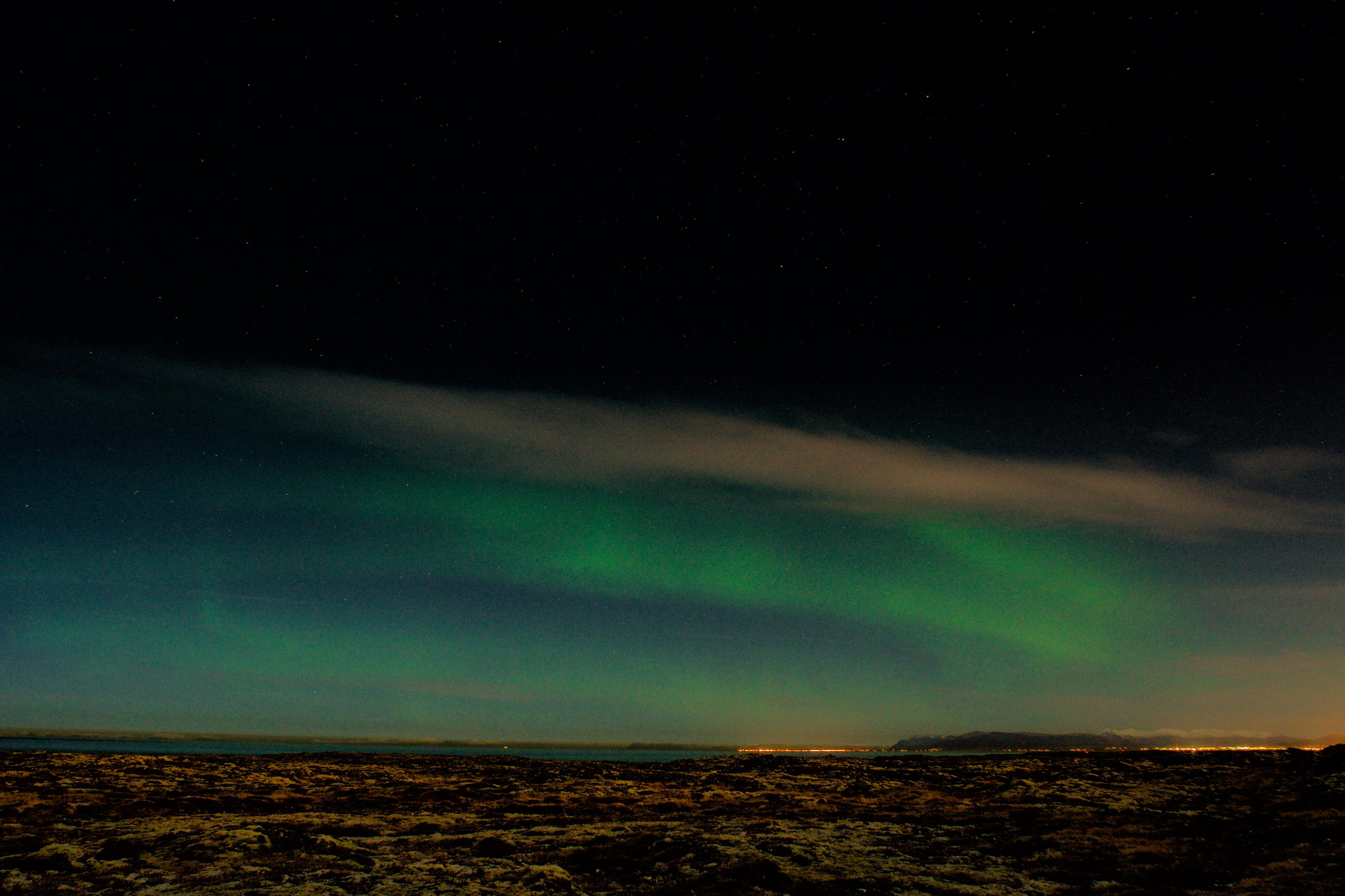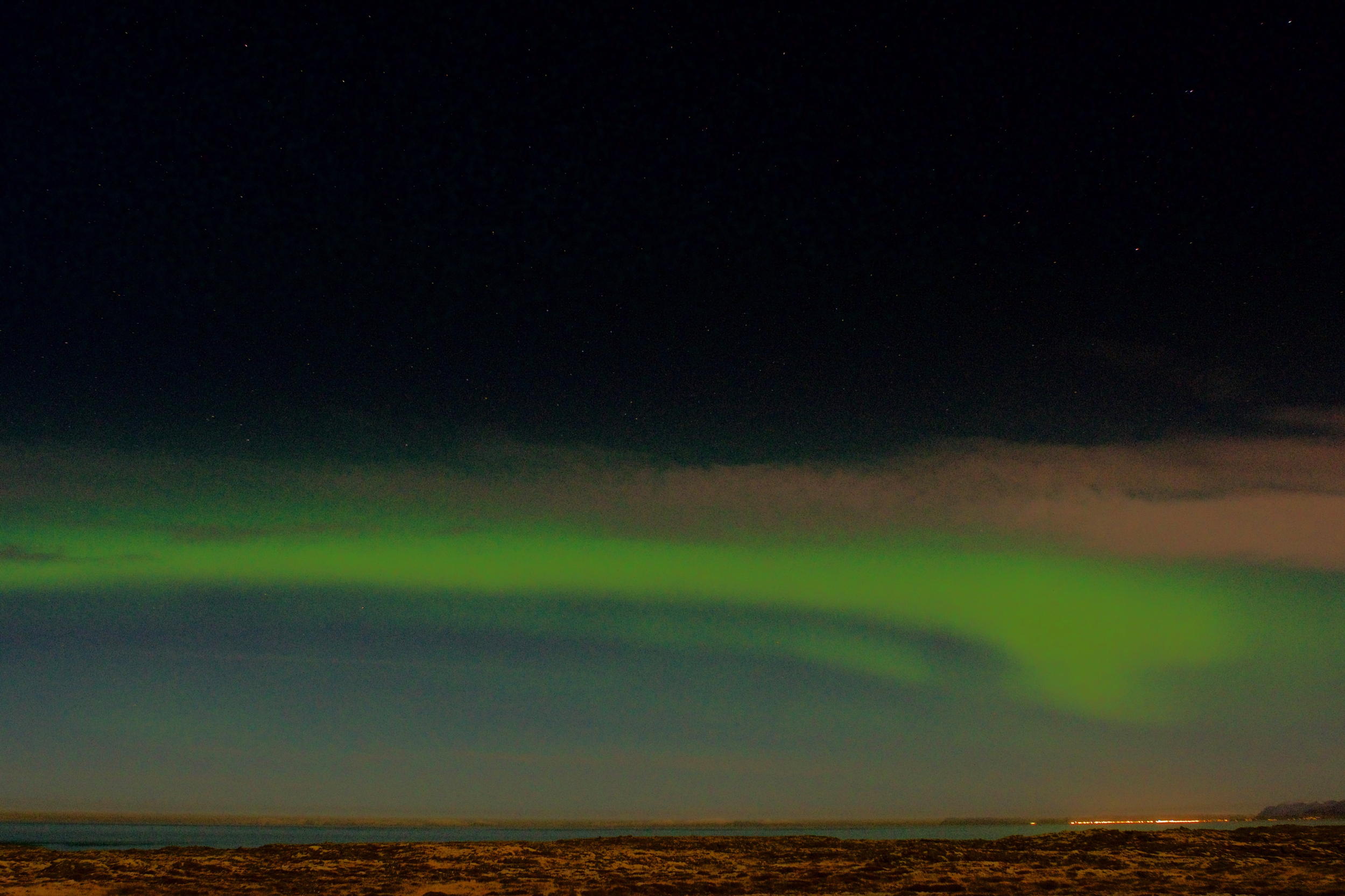 Als wir 2008 das erste Mal – seinerzeit im Sommer – auf Island waren, haben wir uns vorgenommen, auch im Winter einmal hierher zu kommen, um Polarlichter zu beobachten. Vergangene Nacht sind wir dann aufgebrochen. Und wir haben welche gesehen! Der Himmel war wolkenlos, doch wir hatten fast Vollmond (es war also recht hell) und die Sonnenaktivität war ziemlich schwach, doch faszinierend war das Schauspiel am Himmel trotzdem.