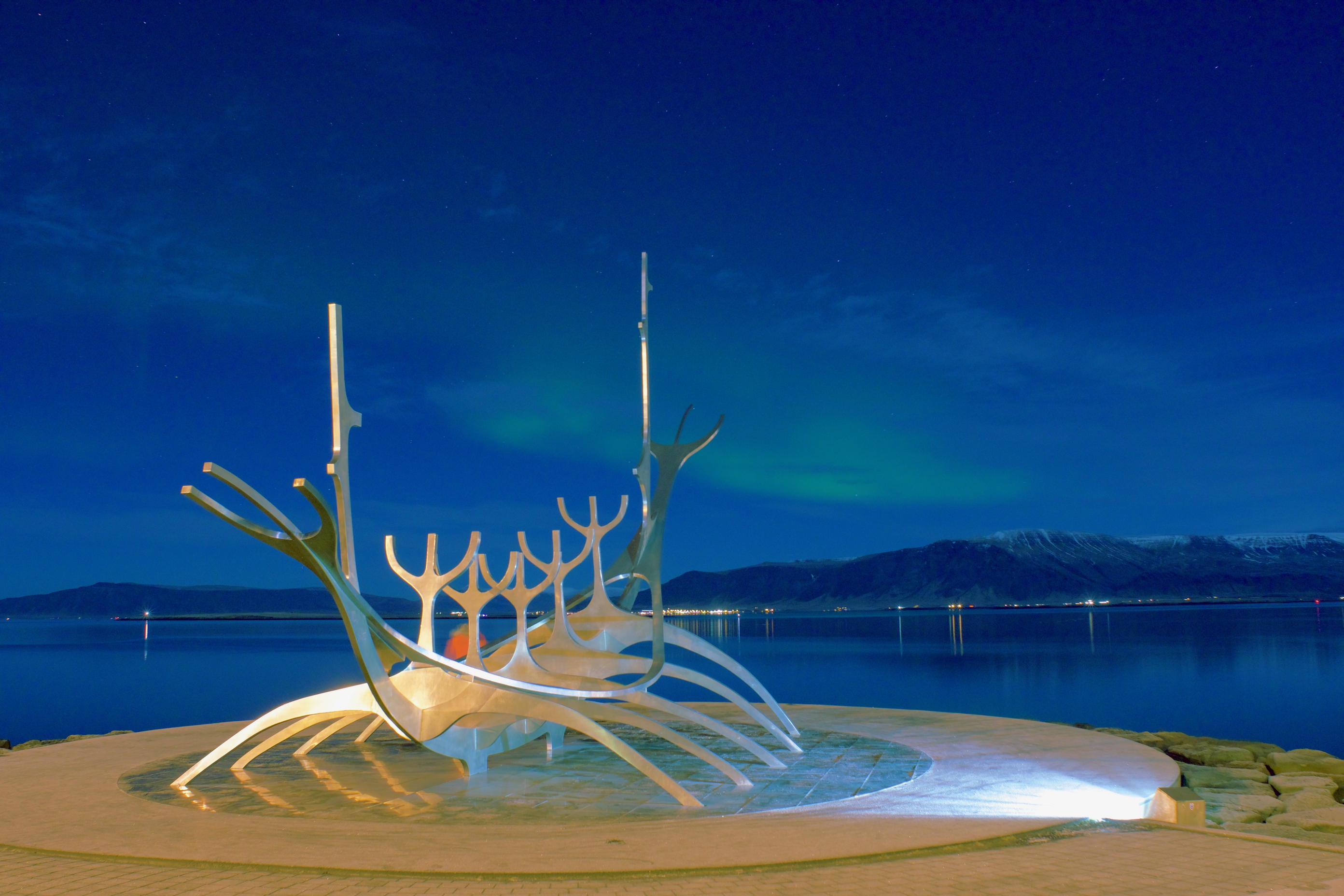 Und auf dem Heimweg zurück zu unserem Hotel – es war bereits dreiviertel eins – haben wir dann mitten in Reykjavík am "Sonnenschiff" noch einmal ein Polarlicht gesehen.