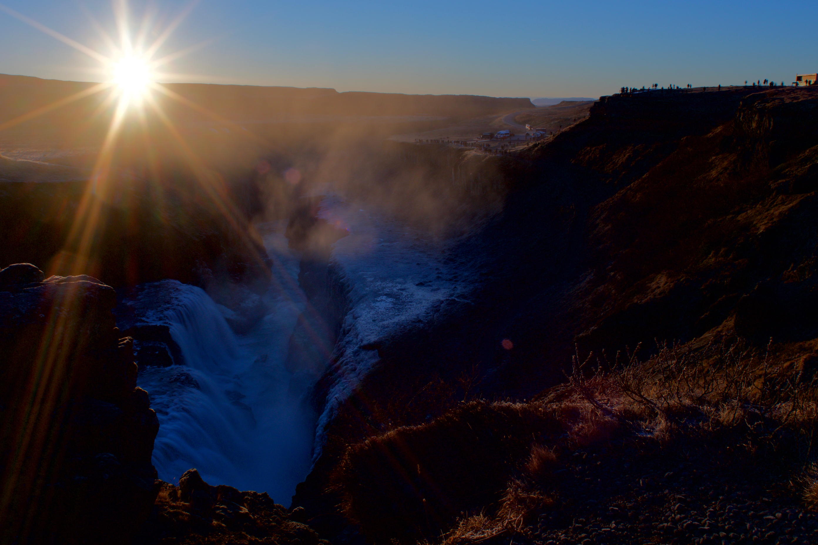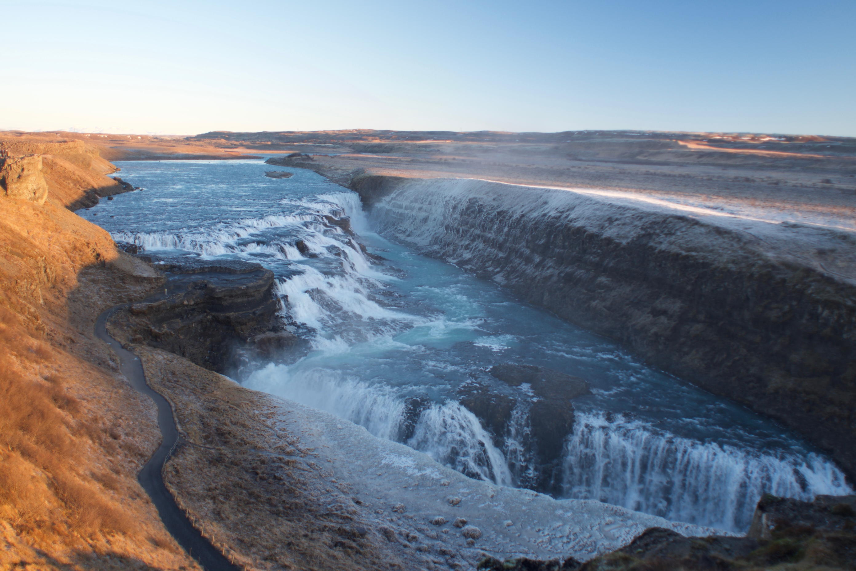 Nur 10 Minuten Fahrstrecke vom Geysir entfernt befindet sich der Gullfuss, der "Goldene Wasserfall", der dem "Goldenen Zirkel" auch seinen Namen gab.