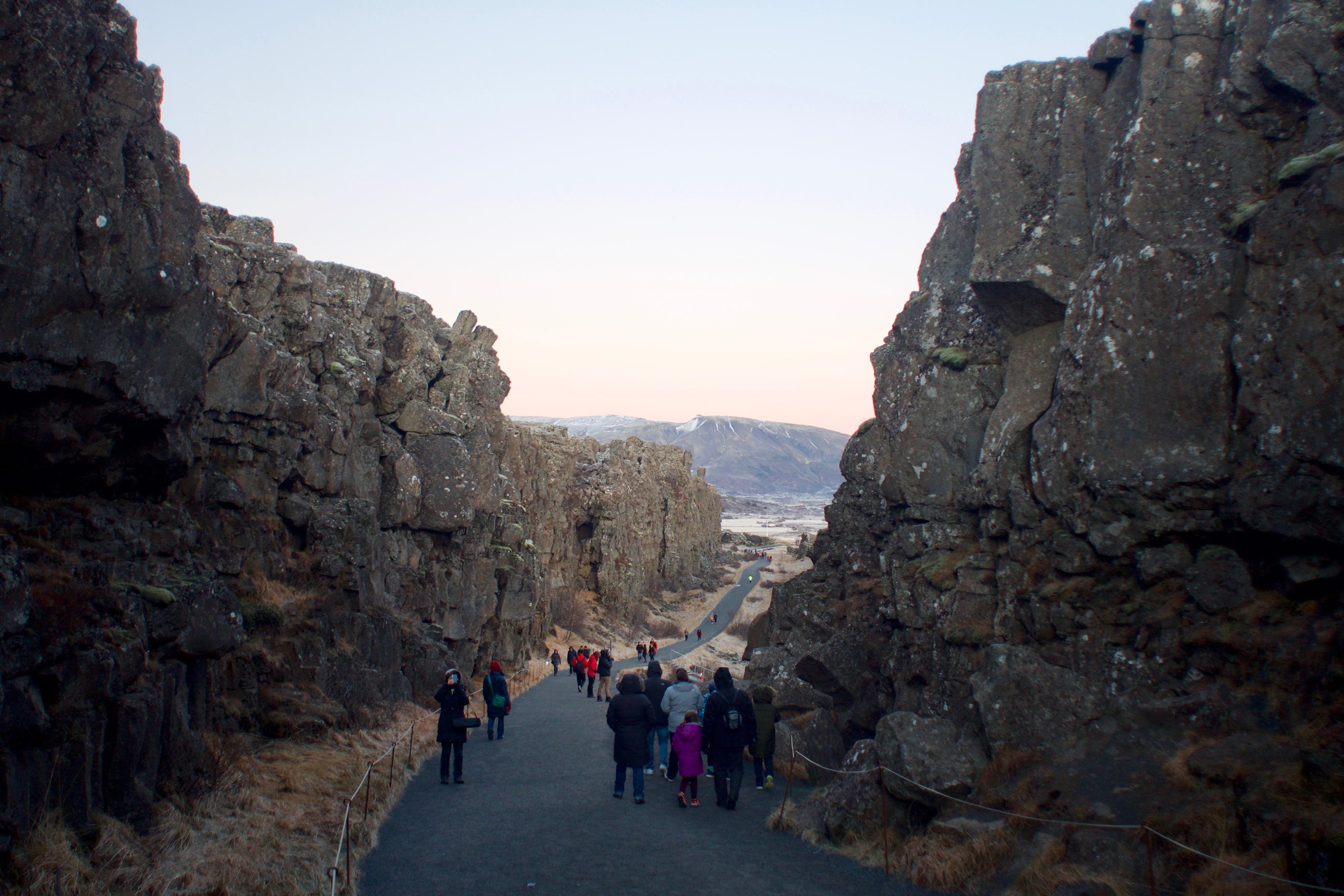 In Þingvellir, etwa 40 km östlich von Reykjavík, bestand seit dem Jahr 930 das isländische Parlament, das somit zu den ältesten der Welt gehört. Gleichzeitig liegt Þingvellir auch auf der Grenze zwischen der anerikanischen und eurasischen Kontinentalplatte. Da diese beiden Platten hier auseinanderdriften, hat sich hier im Laufe der Zeit ein interessantes Tal gebildet.