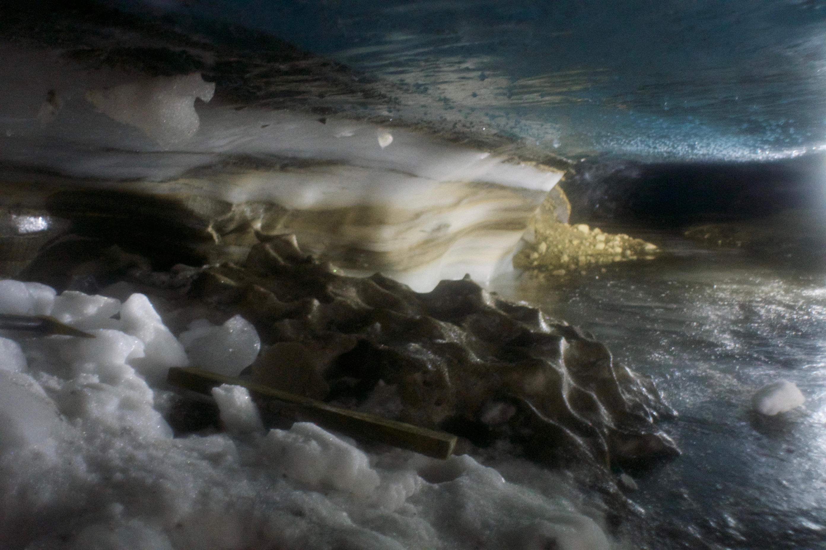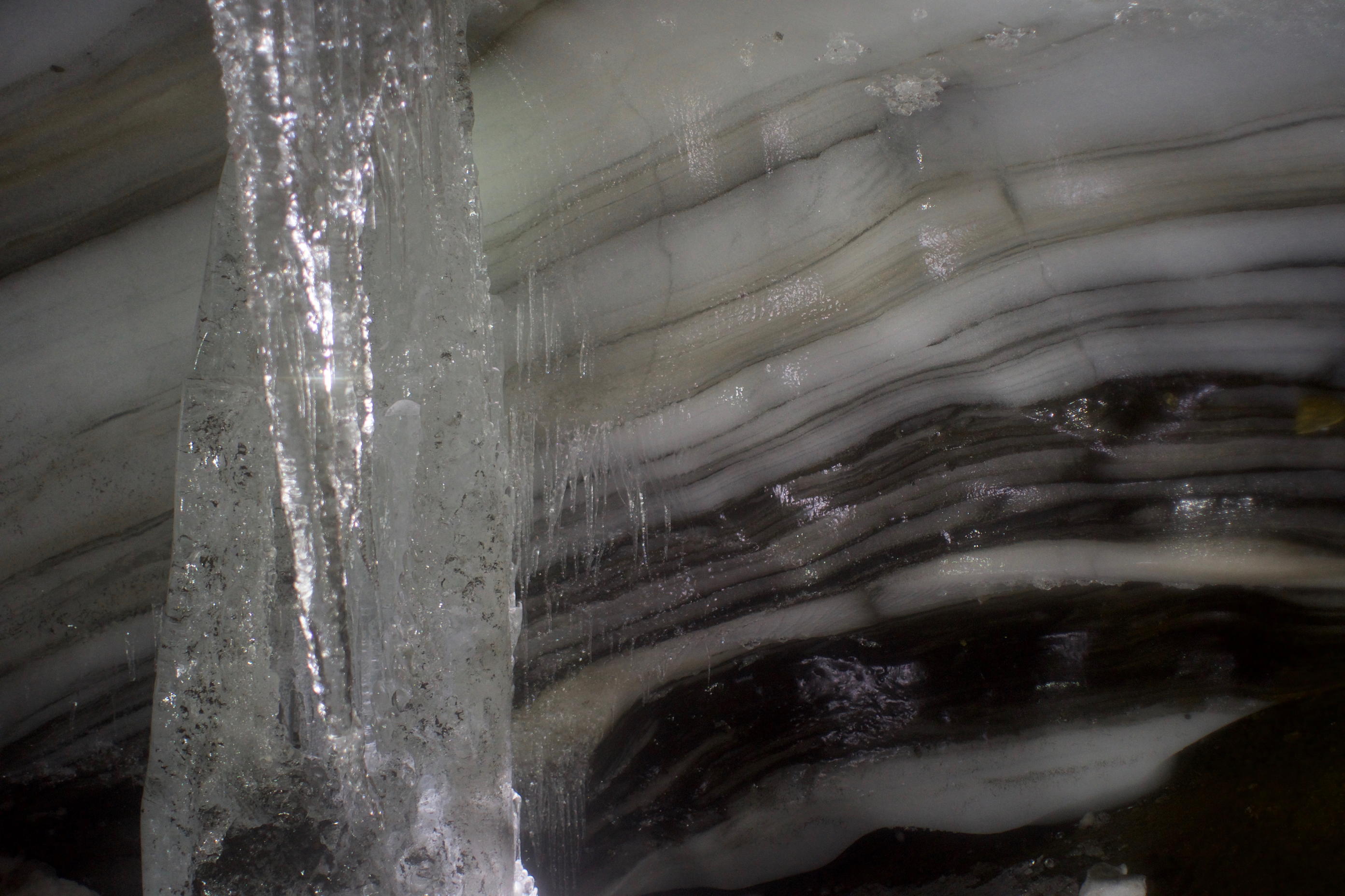 Und da man auf einem Gletscher diesen gar nicht sieht, weil Schnee darüber ist, sind wir zwischendurch in eine Gletscherhöhle abgestiegen und haben die verschiedenen Sorten von Eis, die es in einem Gletscher gibt, bestaunt.