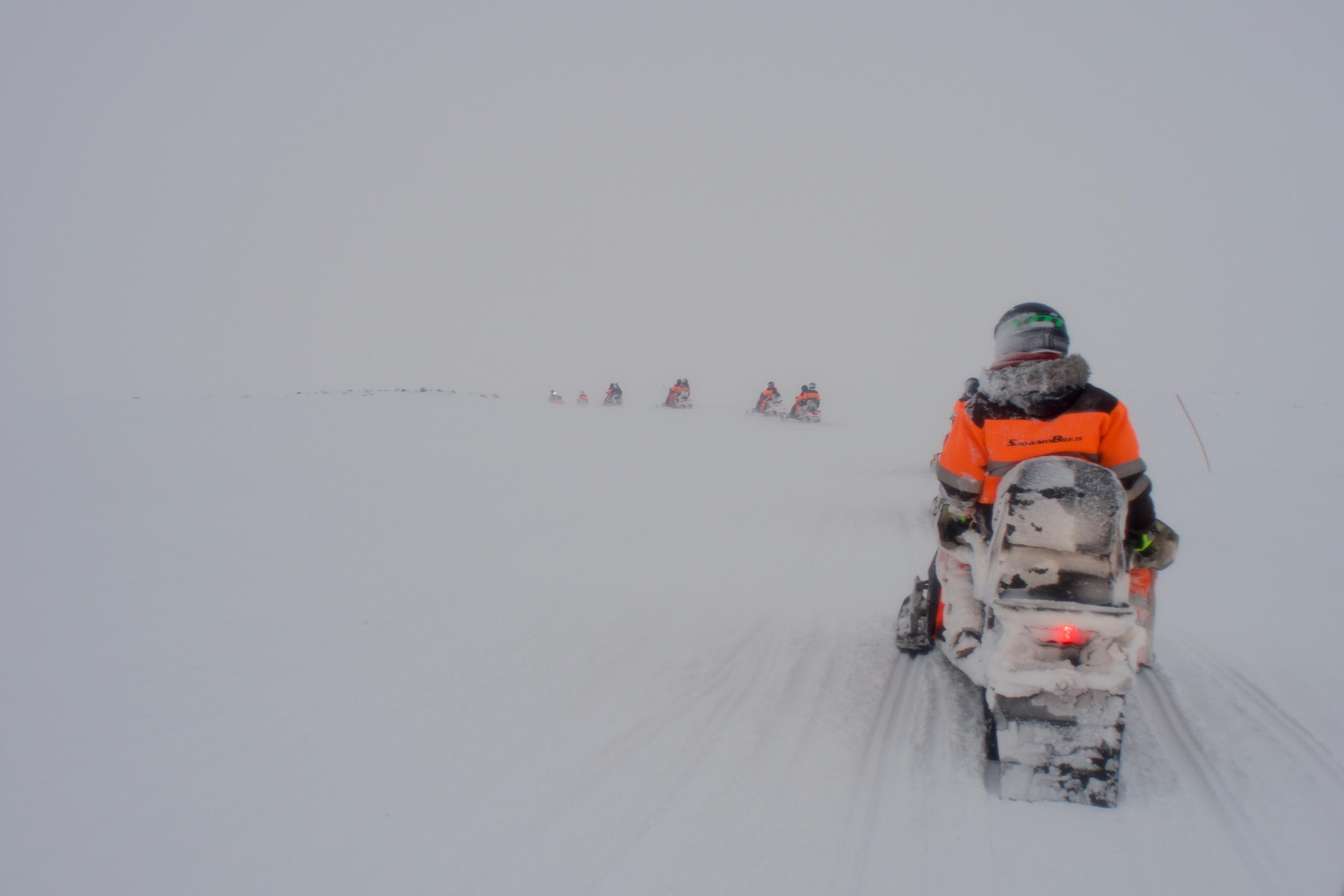 Man sollte dazu wissen, dass Island angeblich der dritt-windigste Ort auf der Erde ist und dass die beiden noch windigeren Orte nicht bewohnt sind. Und so war es auf dem Gletscher dann auch. Das Schwierigste war also, nicht weggeweht zu werden. Ansonsten macht Schneemobilfahren ziemlich viel Spaß, ist aber durchaus anstrengend.