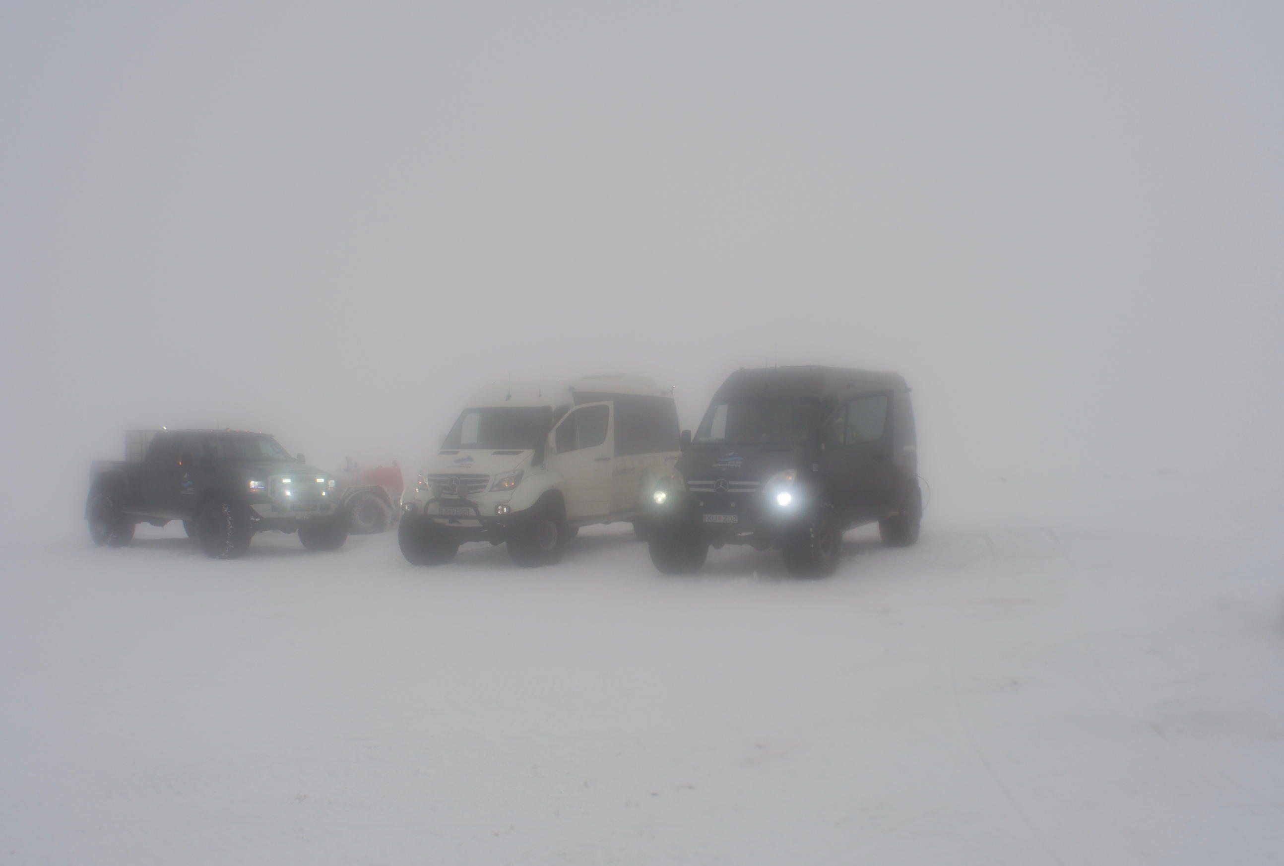 Der Langjökull ("Langgletscher"; nordöstlich von Reykjavík) ist der zweitgrößte Gletscher Islands und der drittgrößte Europas. Und auf dem waren wir heute mit dem Schneemobil.