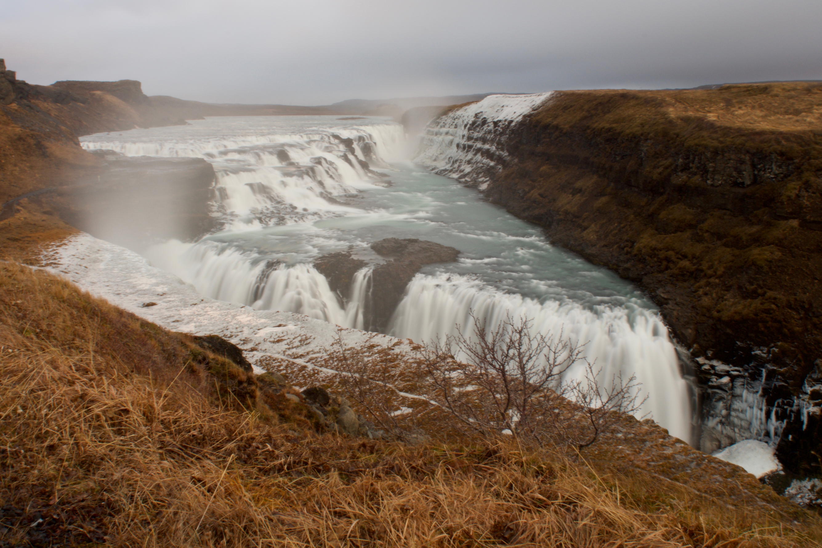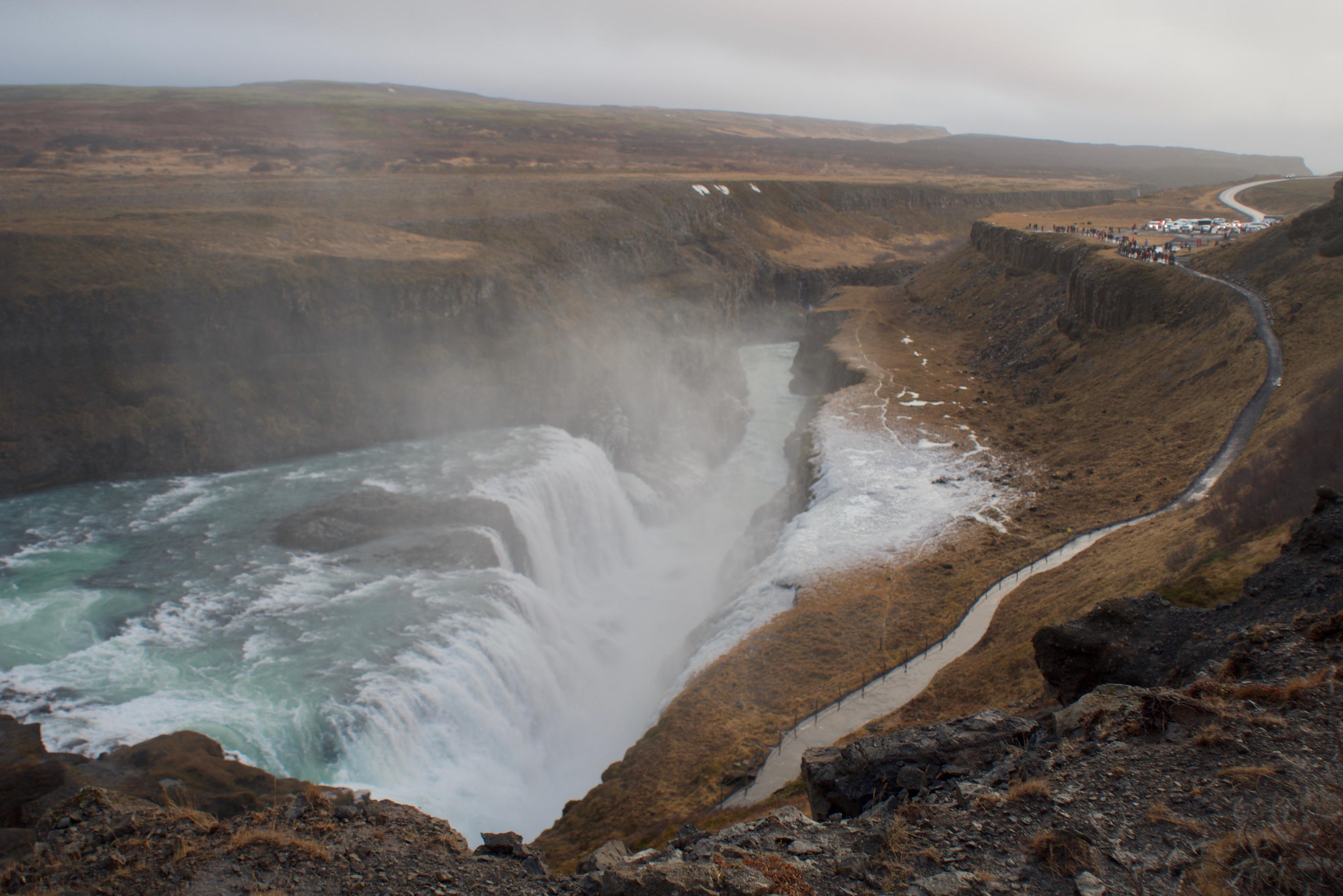 Auf dem Heimweg sind wir dann noch am Gullfoss vorbeigekommen, an dem wir am vergangenen Freitag auf unserer Goldener-Zirkel-Tour schon einmal waren. Diesmal kam der Wind aus der entgegengesetzten Richtung, so dass es heute als Ergänzung auch noch Fotos des Wasserfalls von vorne gibt.