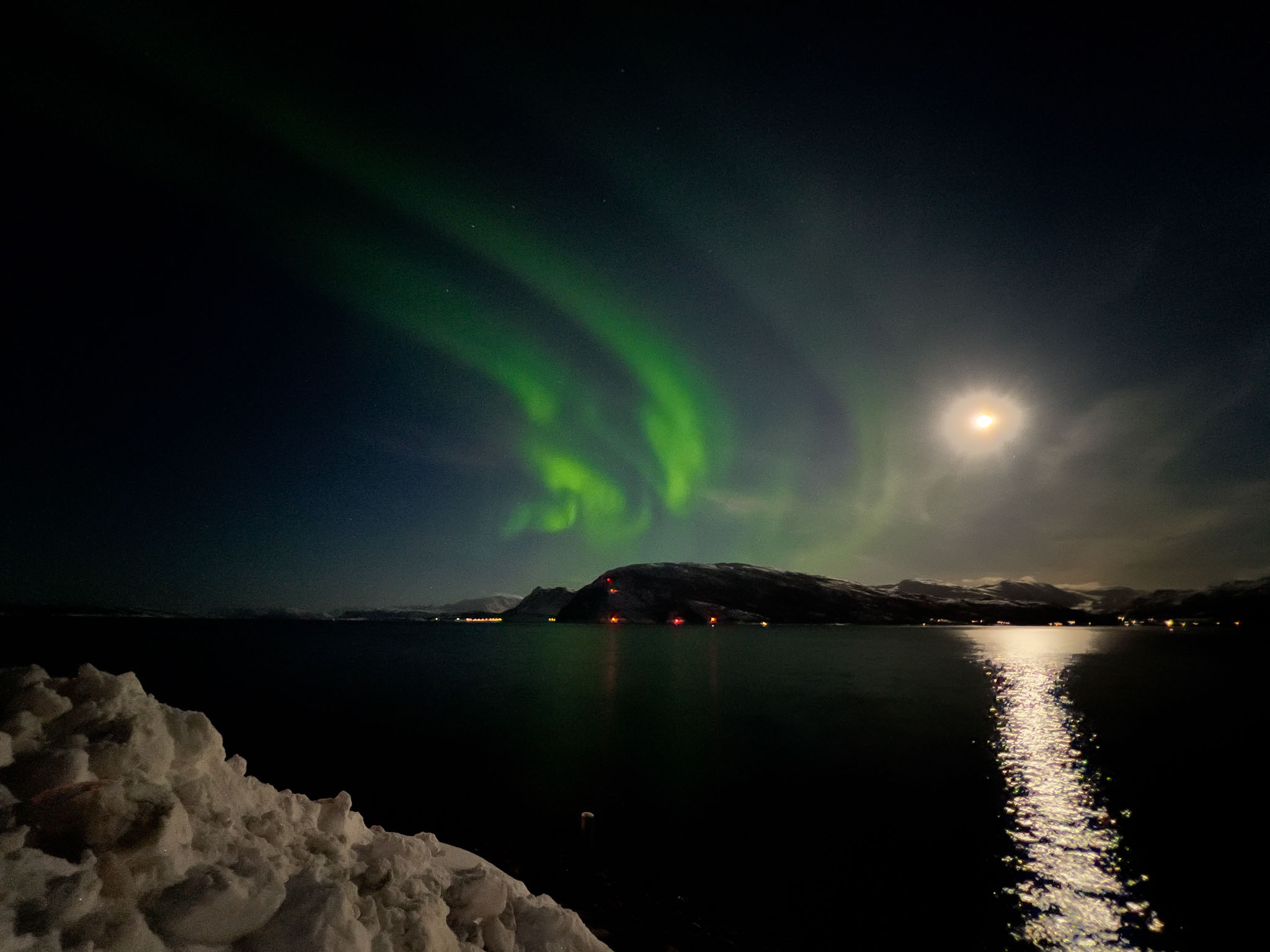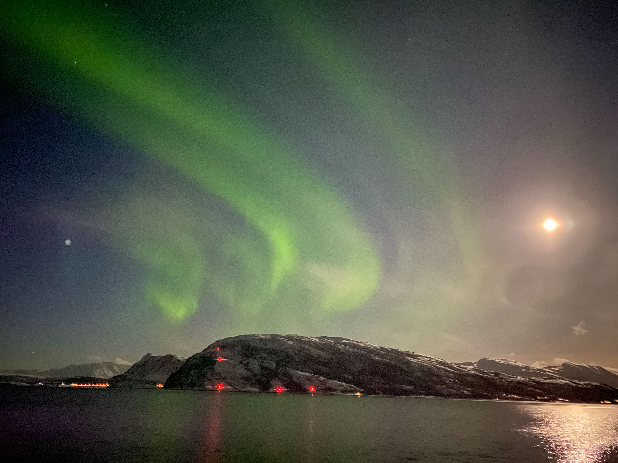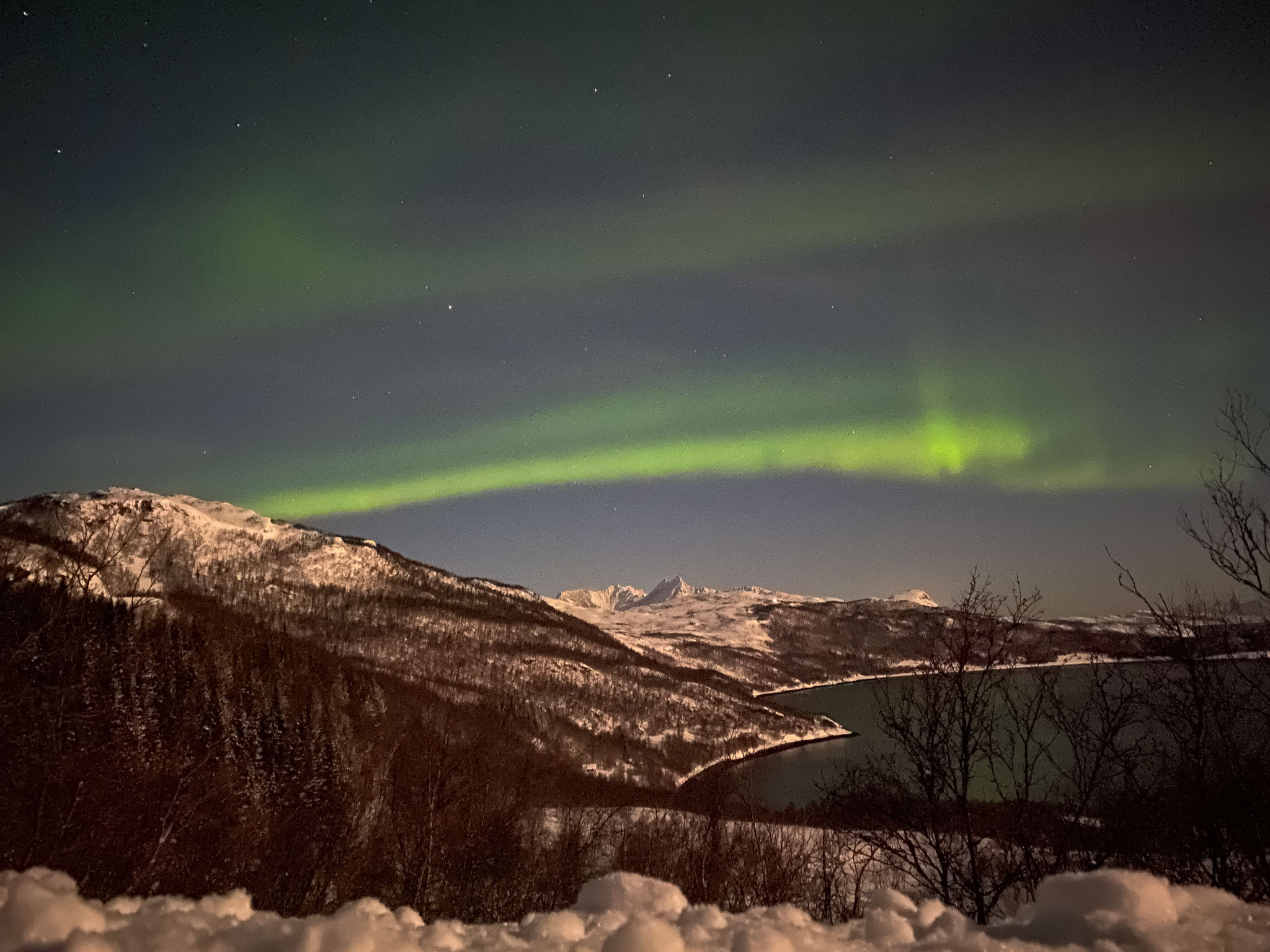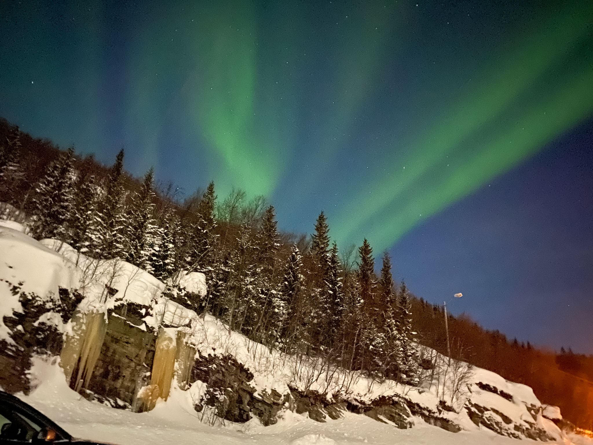 Da wir überhaupt nicht damit gerechnet hatten, so früh am Abend schon Nordlichter zu sehen, hatten weder Julia noch Thomas ihre Stative dabei. Wir mussten also die iPhones nutzen, um die Polarlichter zu fotografieren.