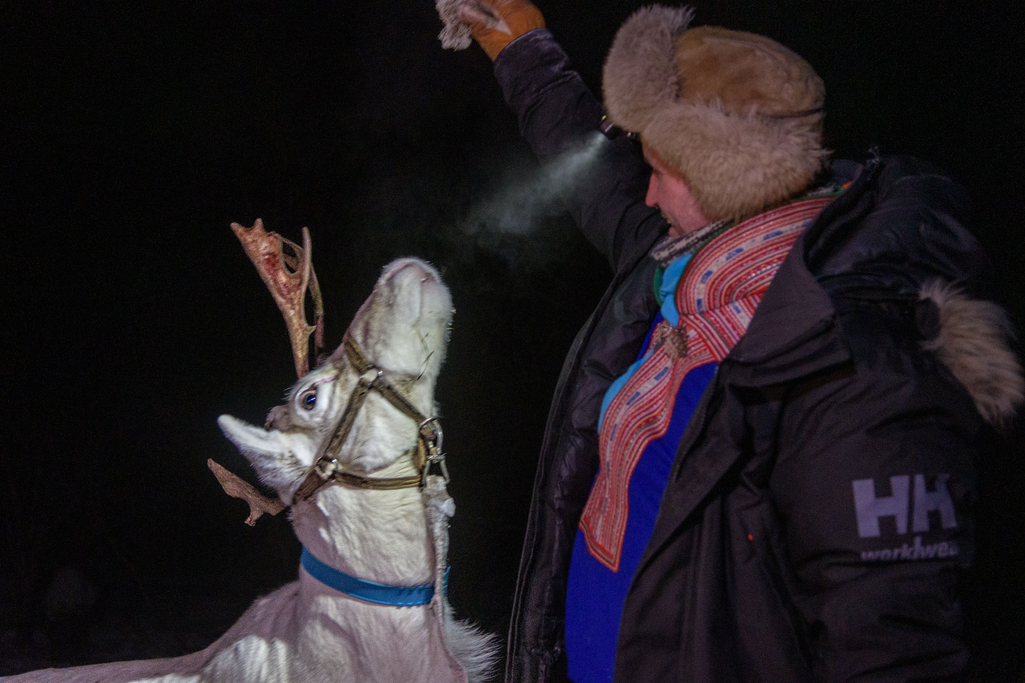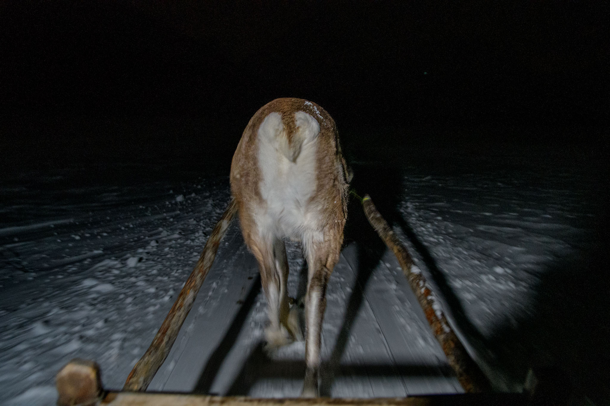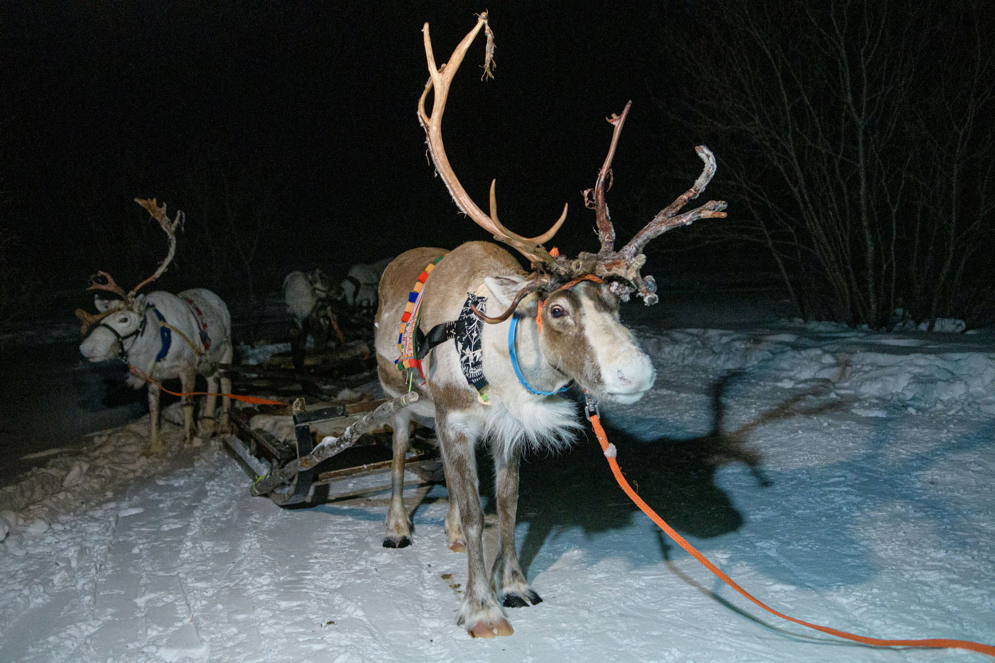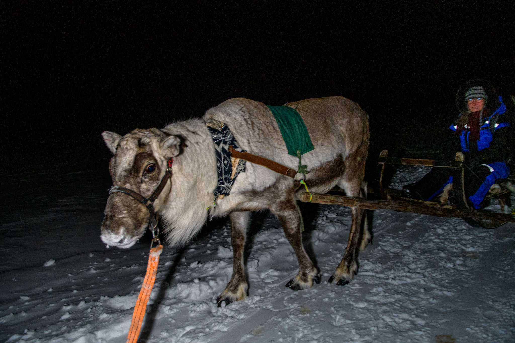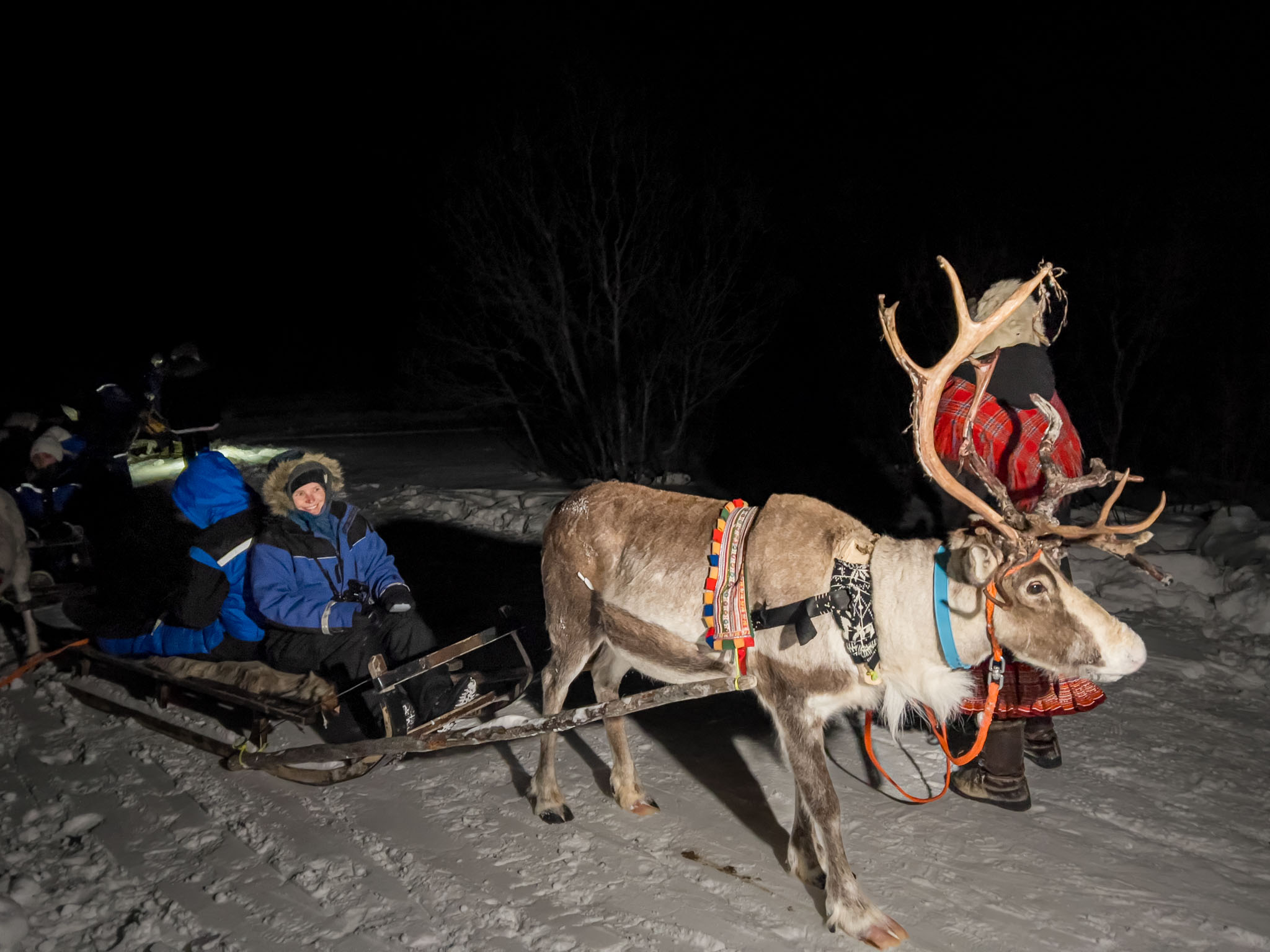 Am Abend stand ein nächster der Höhepunkte des Urlaubs auf dem Programm: Rentierschlittenfahren.