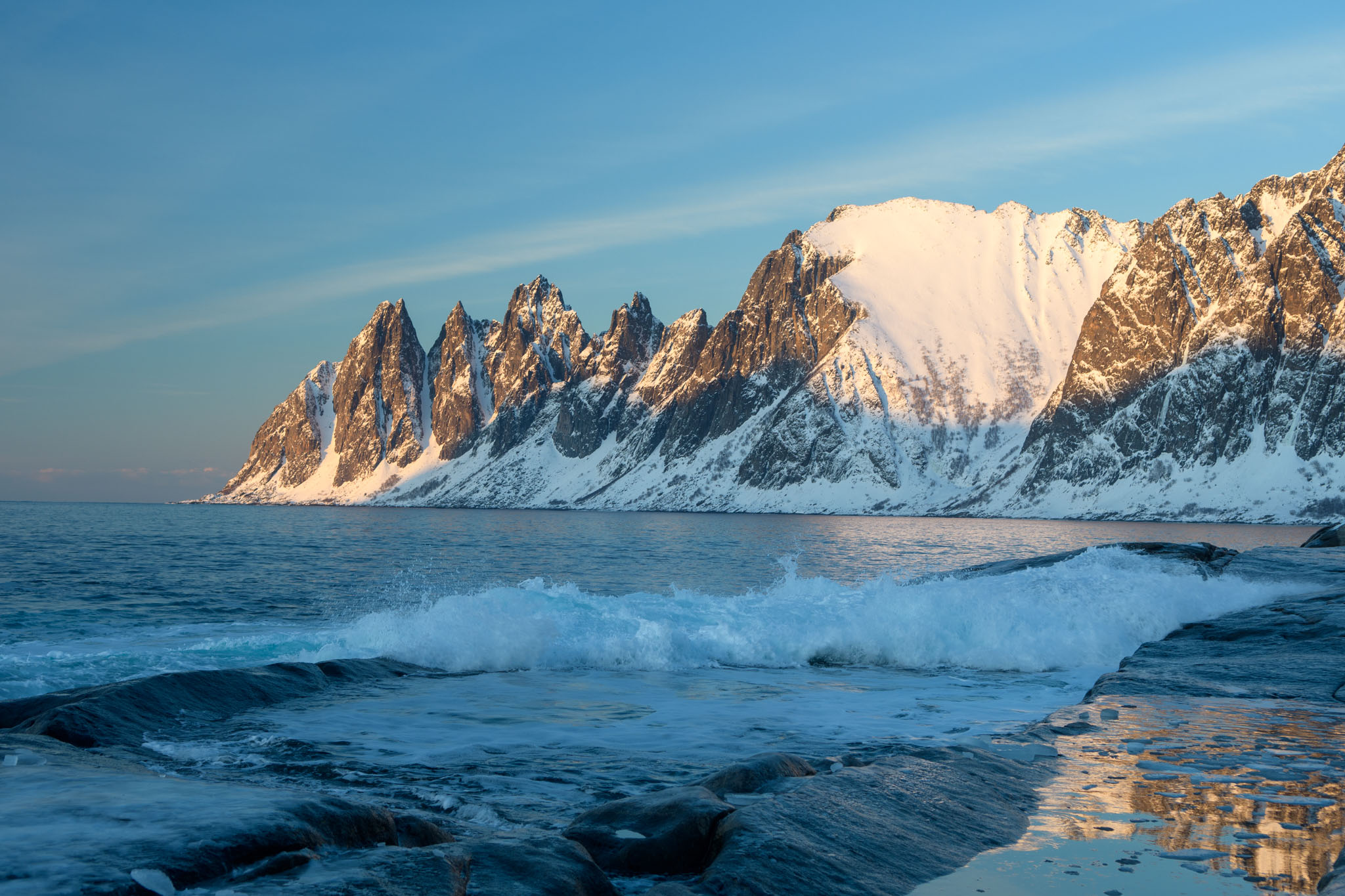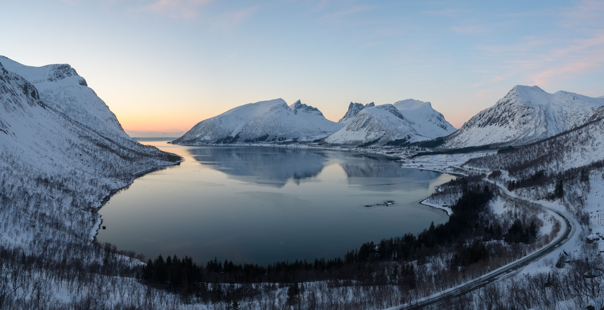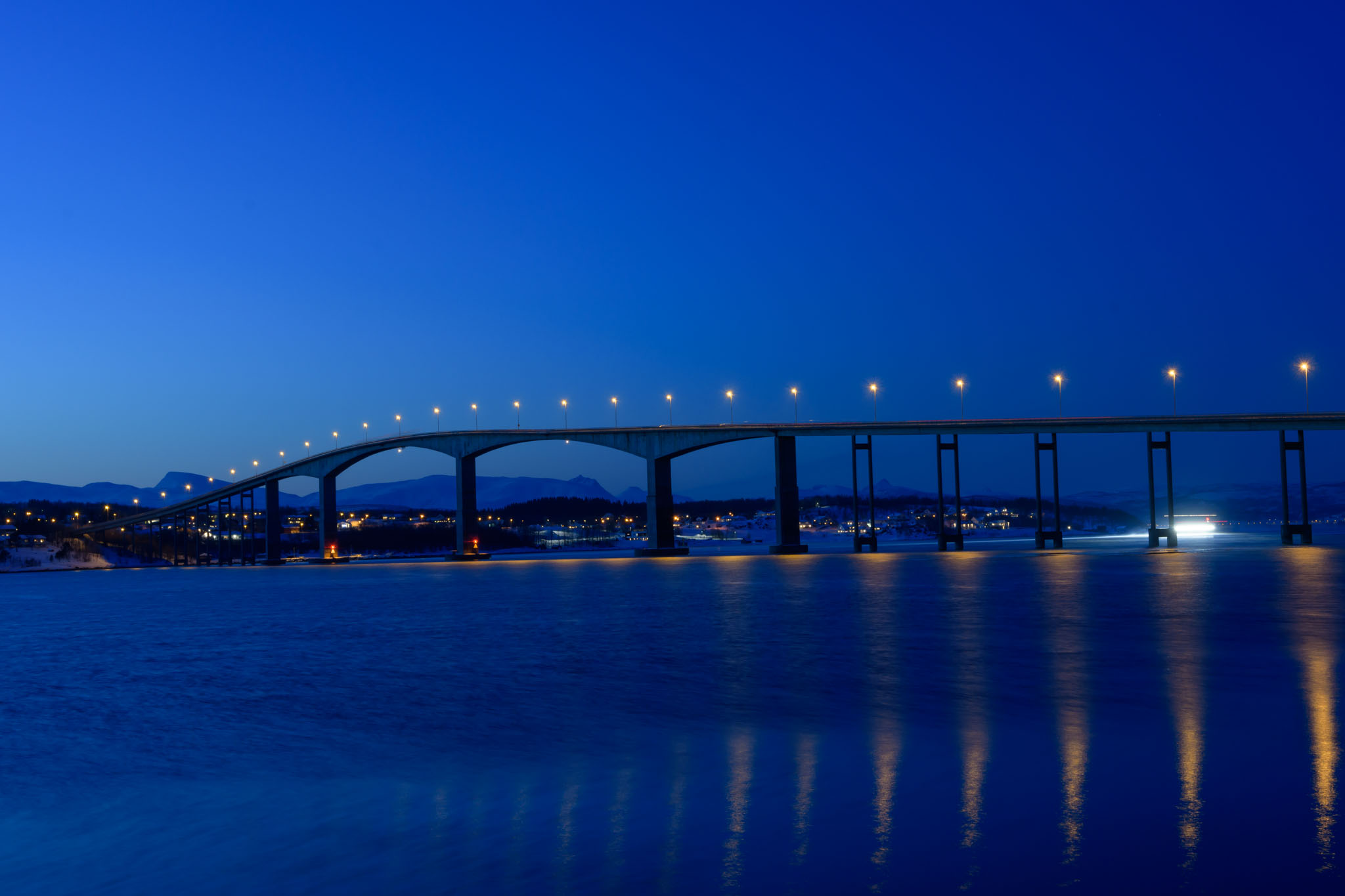 Los ging es gegen halb 12. Das erste Foto unten ist noch vom Weg dorthin, die anderen zeigen alle die Landschaft auf der Insel. Zwischendrin sind wir auch einmal in ein nettes kleines Café eingekehrt, um Samir mit Kaffee zu versorgen. Die letzten beiden Fotos sind dann – schon bei Nacht – ein Blick zurück auf Senja bzw. die Brücke, die Senja mit dem norwegischen Festland verbindet.