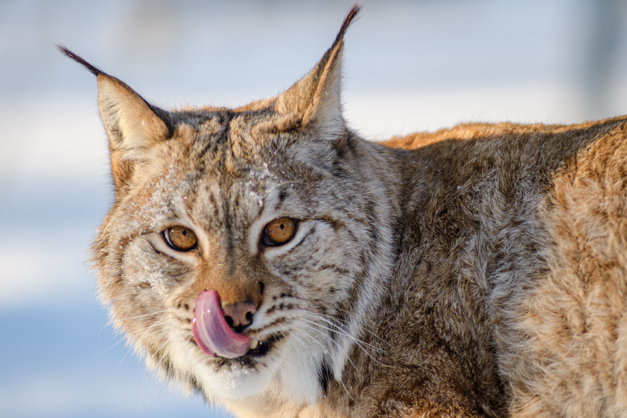 Heute ging es in den Polar Park bei Bardu. Während Maria, Julia und Samir "nur" diverse arktische Tiere von außerhalb ihrer Gehege anschauten, hatte Thomas zusätzlich eine Fototour im Luchsgehege gebucht und war damit den beiden Luchsen so nah, dass er teilweise vom Tele- aufs Normalobjektiv wechseln musste.