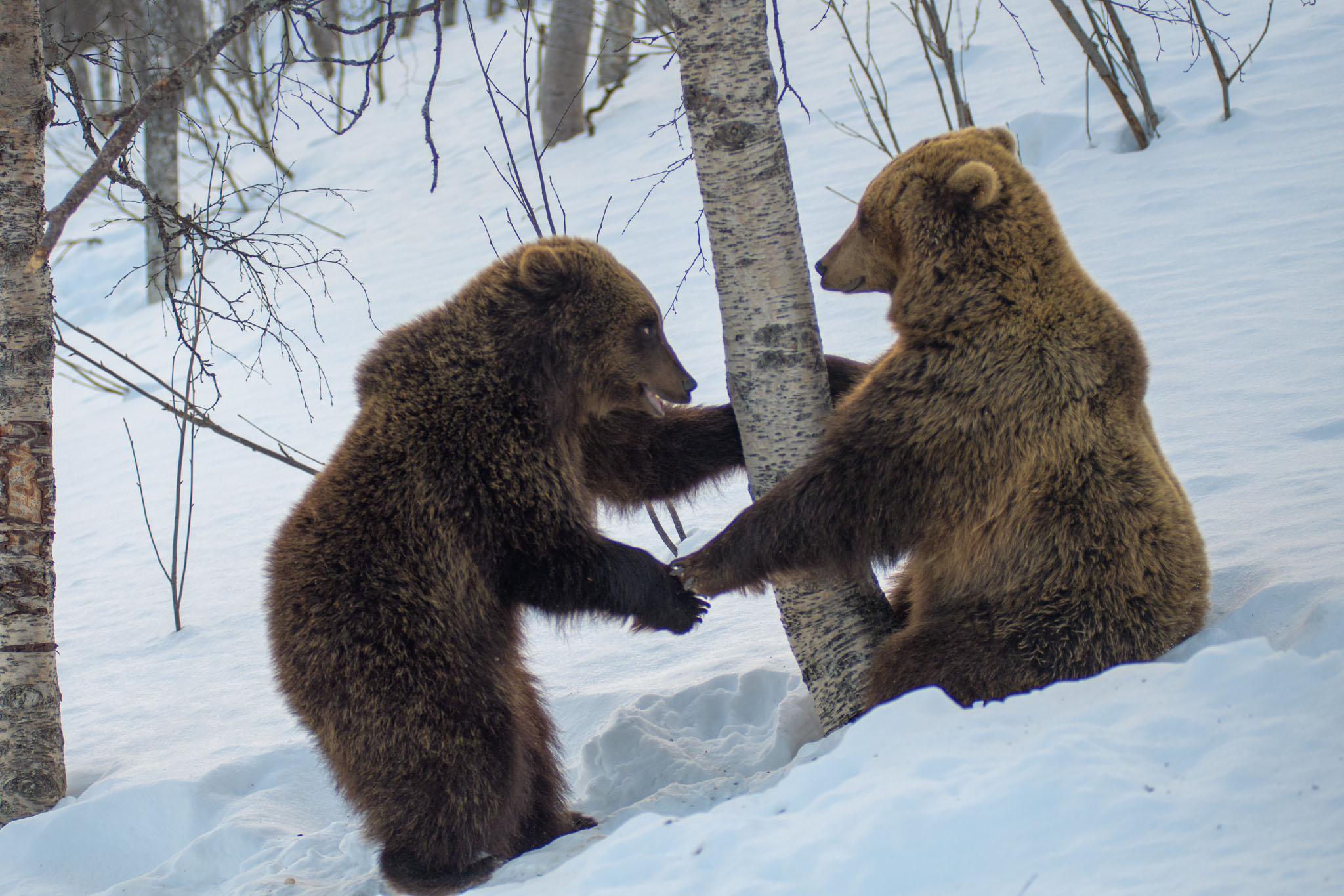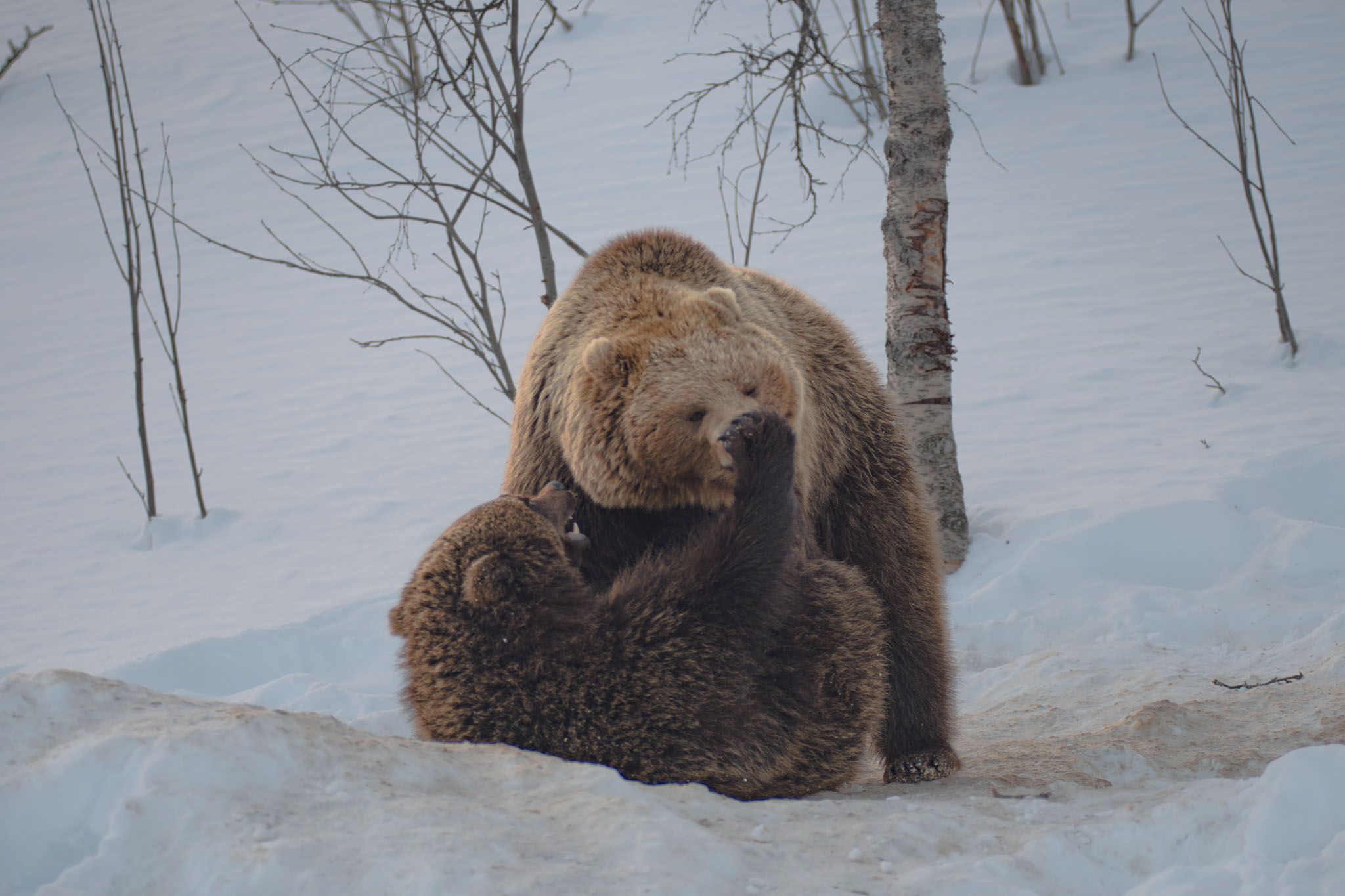 Die Bären waren trotz der Jahreszeit äußerst aktiv. Zwei von ihnen rauften lange Zeit miteinander und kletterten anschließend auf Bäume.