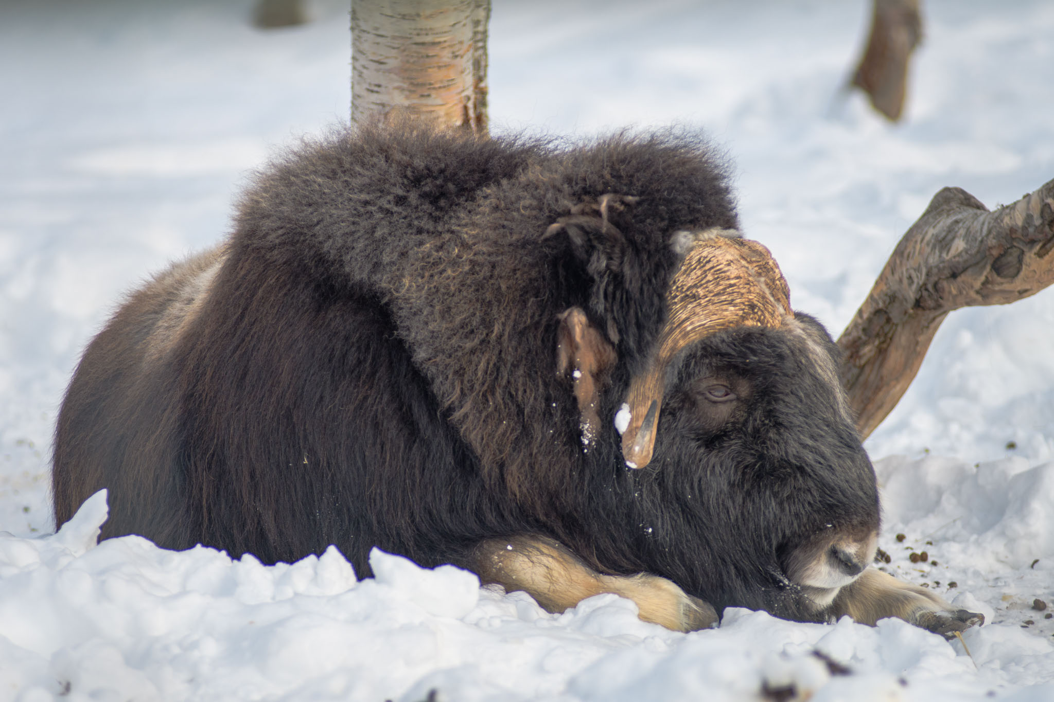 Schmerzhaft war später das Fotografieren der Moschusochsen. Beim Herabspringen vom Balken eines Holzgatters, schnellte Thomas' Kamera in sein Gesicht. Glücklicherweise ist nichts Schlimmeres passiert, als dass die Kamera sichtbare Spuren unter seinem rechten Auge hinterlassen hat.