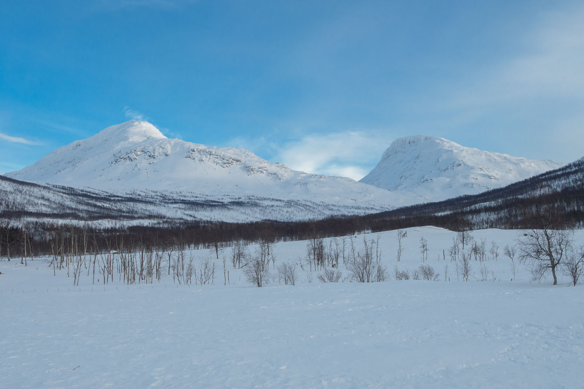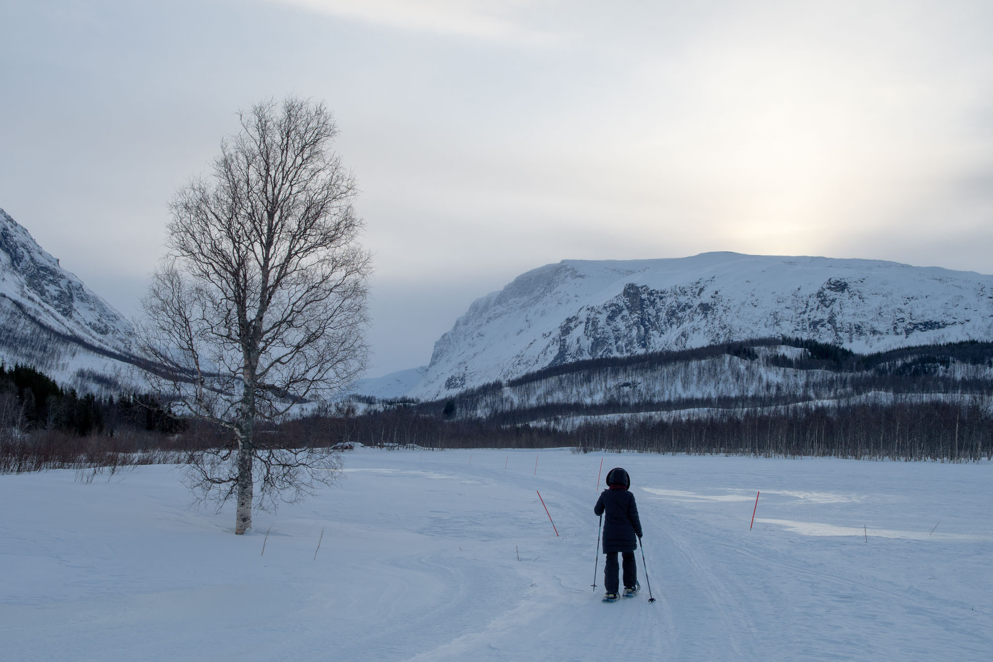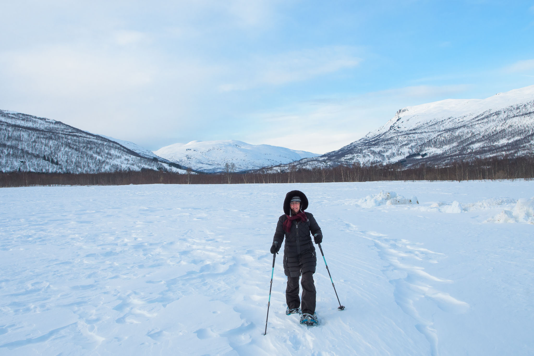 Eine Stunde vor Schließung des Parks sind wir beide noch zu einer kleinen Schneeschuhwanderung am Ende des Tals aufgebrochen.
