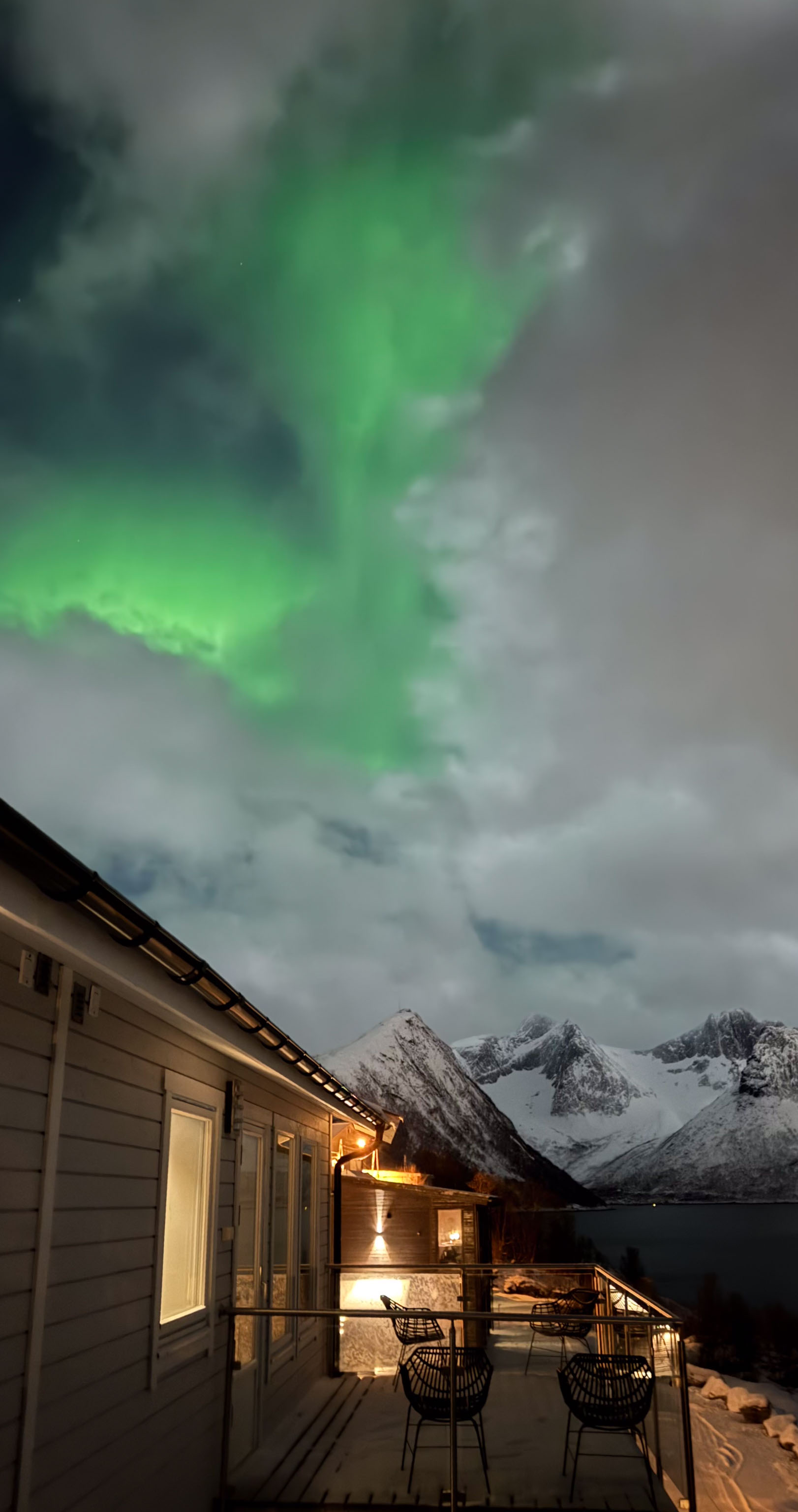 Kurz vor zwanzig Uhr waren die ersten zu sehen. Zwischendurch zog die Wolkendecke immer mal wieder komplett zu, aber gegen vier Uhr früh sollte die Aktivität am höchsten und die Wolken am geringsten sein. Also haben wir uns einen Wecker für 3:30 Uhr gestellt – und wurden enttäuscht. Bis halb fünf hat Maria den Himmel weiter beobachtet, dann war klar, dass da keine Polarlichter mehr kommen und es ging zurück ins Bett.