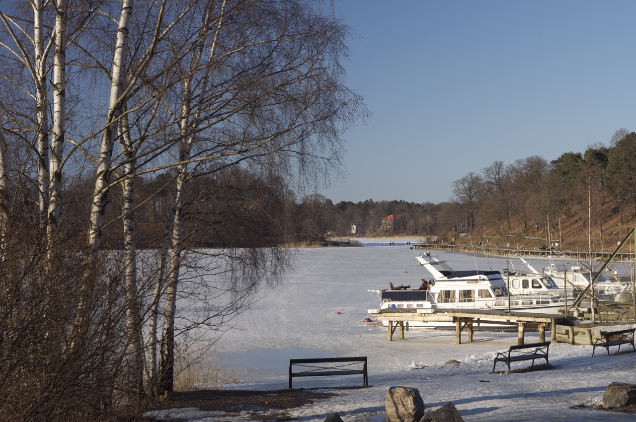 Da die Ostsee noch zugefroren ist, war es gar nicht nötig, eines der Boote zu nehmen, die die Inseln miteinander verbinden (und die eh noch nicht fahren können). Stattdessen konnten wir einfach über das Wasser laufen. ;-)