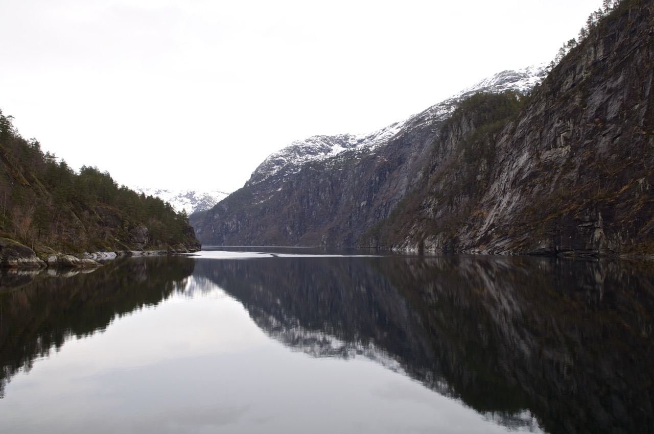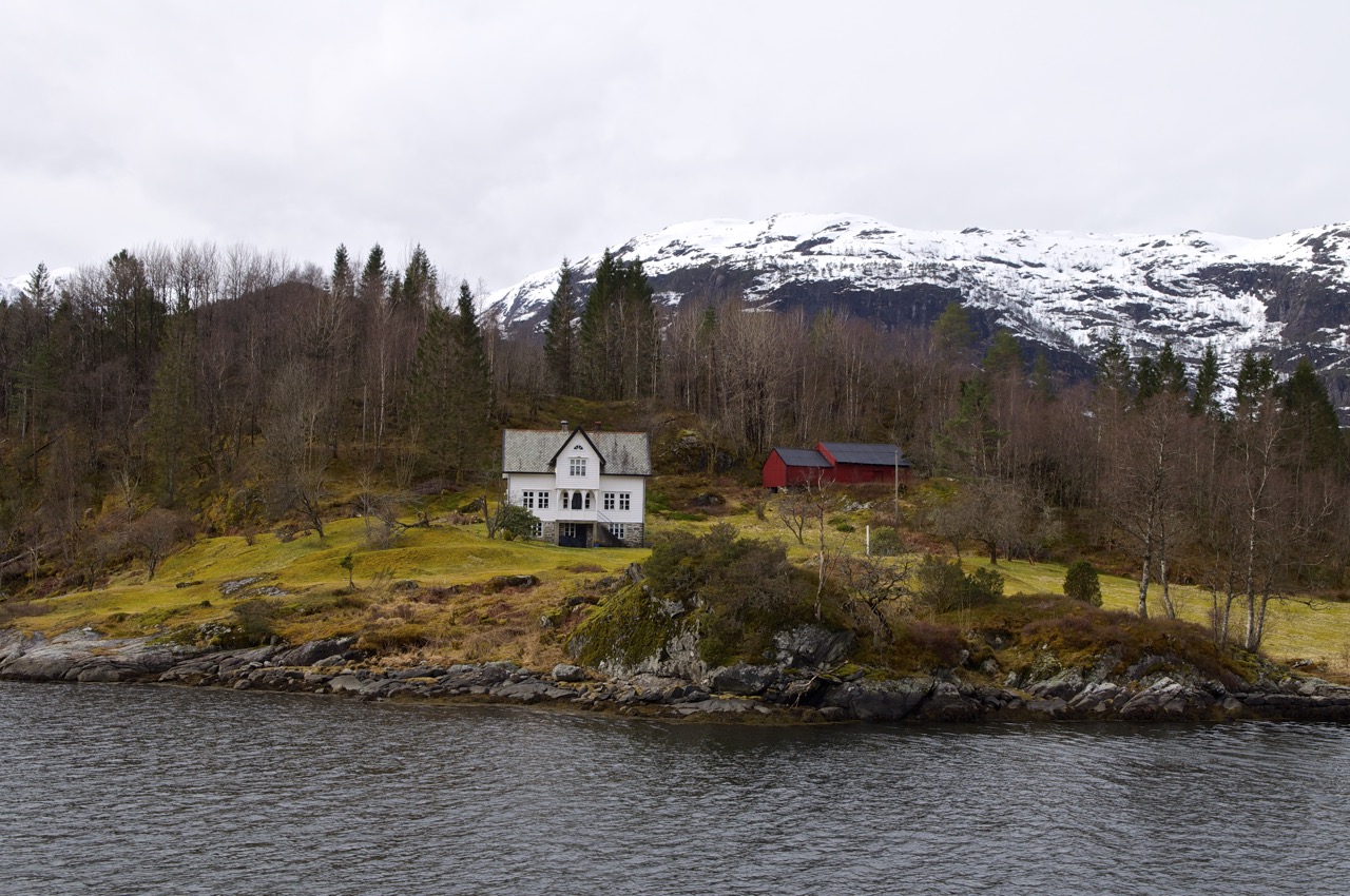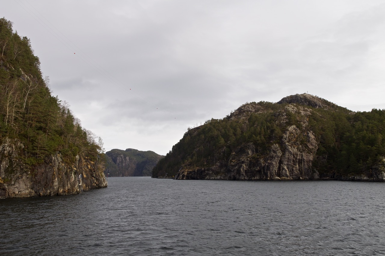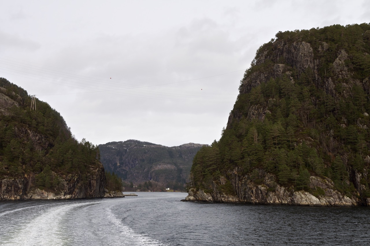 Heute ging es von Bergen aus mit dem Schiff durch den Osterfjord bis zum Sund (Engstelle) Kostraumen mit seiner starken Strömung, wo das Schiff es gerade so durch den Fjord schafft.