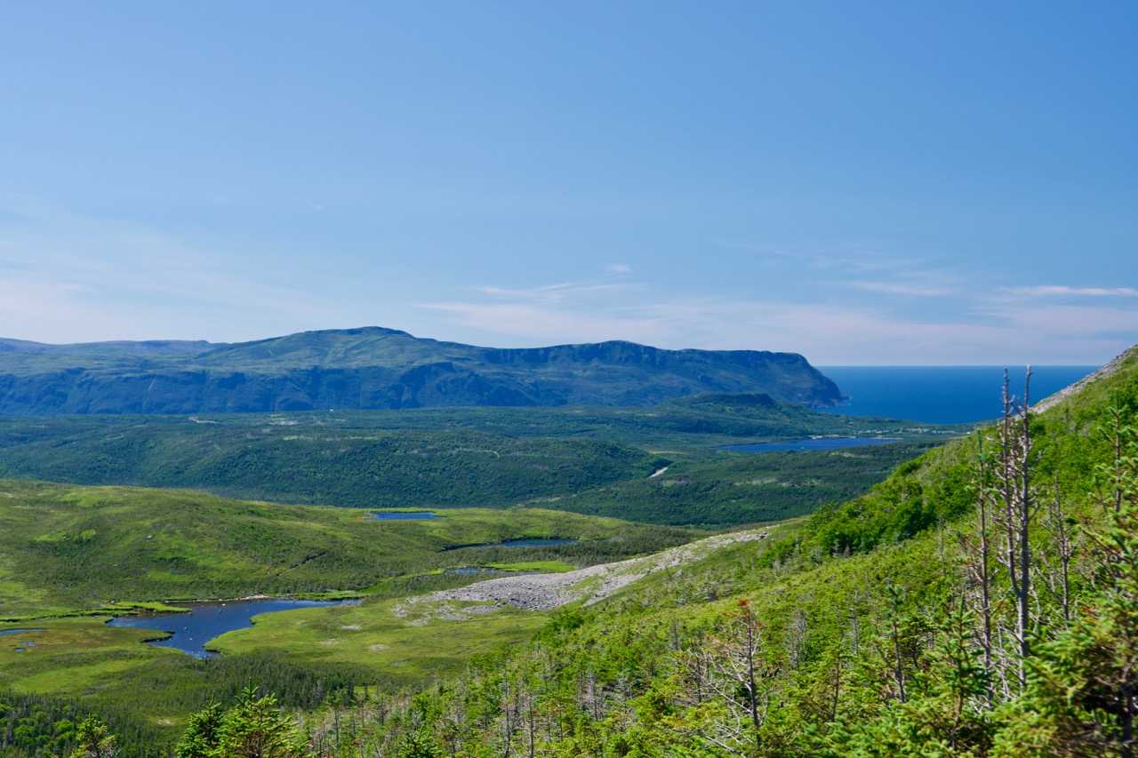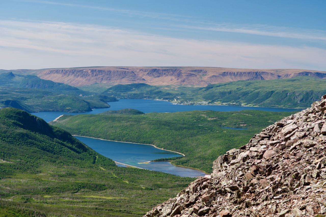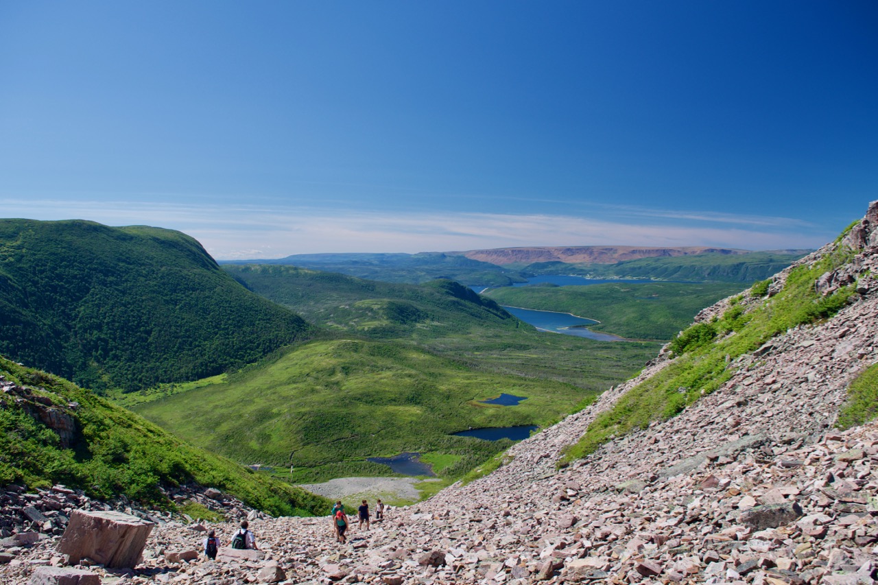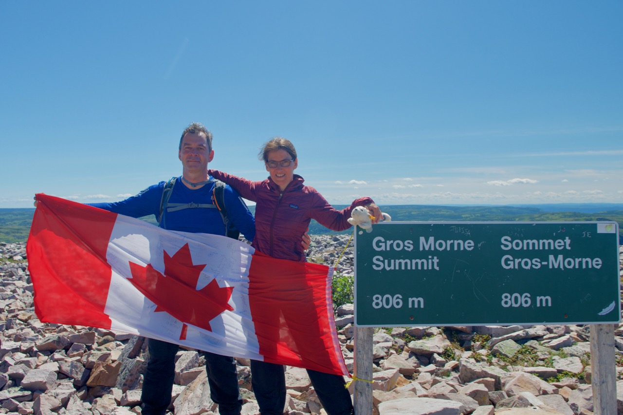 Der Gros Morne Mountain (s. erstes Foto unten) ist mit 806 m der höchste Berg des Gros-Morne-Nationalparks und der zweithöchste Neufundlands. Die Höhe ist aber nicht die Herausforderung der 16 km/6-8 Stunden-Tour, sondern vielmehr die Tatsache, dass es ewig lang extrem steil eine Geröllrinne hinauf ging. Dazu brannte die Sonne, aber wir haben wieder großartige Aussichten genießen können.