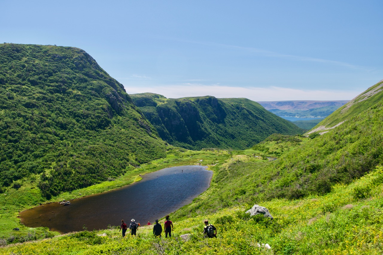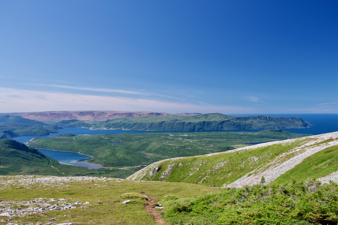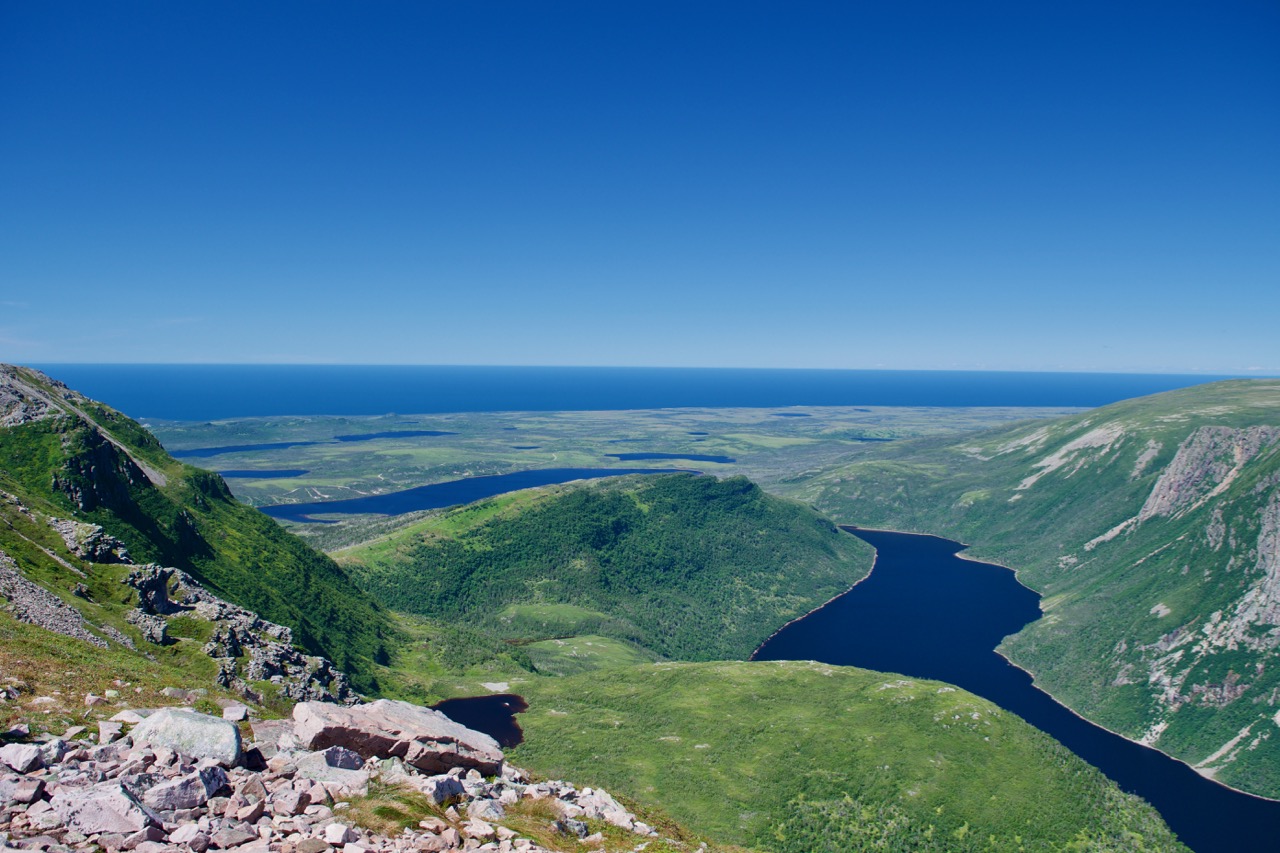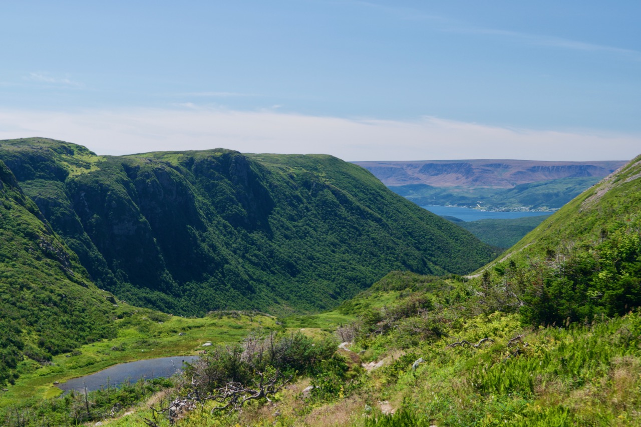 Der Gros Morne Mountain (s. erstes Foto unten) ist mit 806 m der höchste Berg des Gros-Morne-Nationalparks und der zweithöchste Neufundlands. Die Höhe ist aber nicht die Herausforderung der 16 km/6-8 Stunden-Tour, sondern vielmehr die Tatsache, dass es ewig lang extrem steil eine Geröllrinne hinauf ging. Dazu brannte die Sonne, aber wir haben wieder großartige Aussichten genießen können.