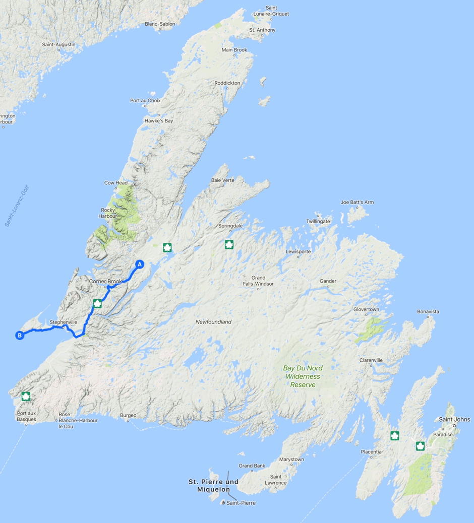 Weiter ging es in den Südwesten Neufundlands auf eine Halbinsel mit imposanten Kliffs. Auf dem Weg dorthin stand zunächst der Deer Lake auf dem Programm, an dem wir vergangene Nacht übernachteten, und unterwegs gab es eine kleinere mehrstündige Bergwanderung.