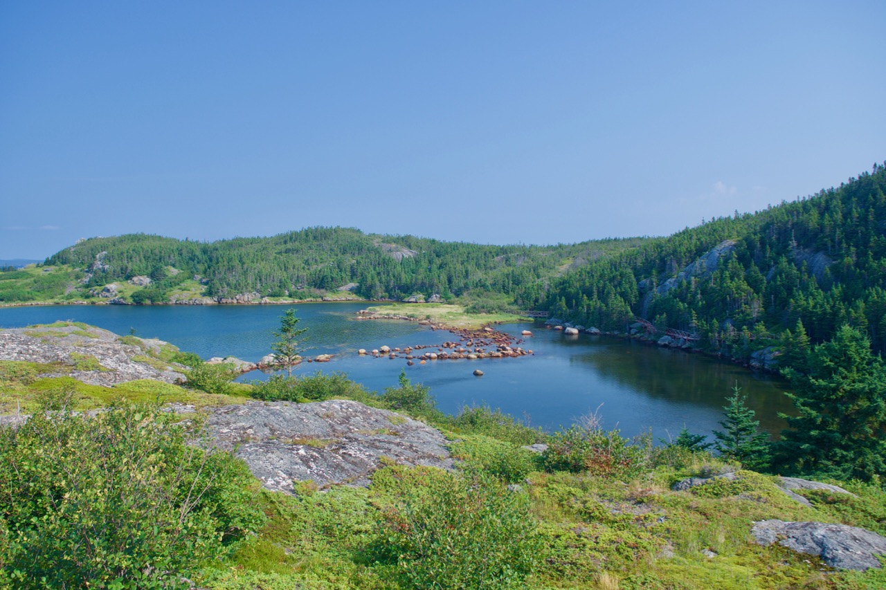 Für den heutigen Tag standen diverse Wanderungen im und am Terra-Nova-Nationalpark an. Dabei hatten wir richtig Glück, denn wir hatten einen schönen sonnigen (wenn auch ziemlich schwülen und schweißtreibenden) Tag, als wir am Nachmittag auf einem der Gipfel unser Picknick hielten und es plötzlich zu donnern begann. Als wir uns umdrehten, sahen wir dunkle Wolken hinter uns und machten uns schleunigst auf den Weg ans Meer zurück. Wir sind gerade am Auto angekommen, als es zu regnen begann und ein richtig heftiges Sommergewitter über uns niederging. Das war aber recht bald vorbei gezogen, so dass auch der späte Nachmittag und Abend wieder sehr schön wurden.