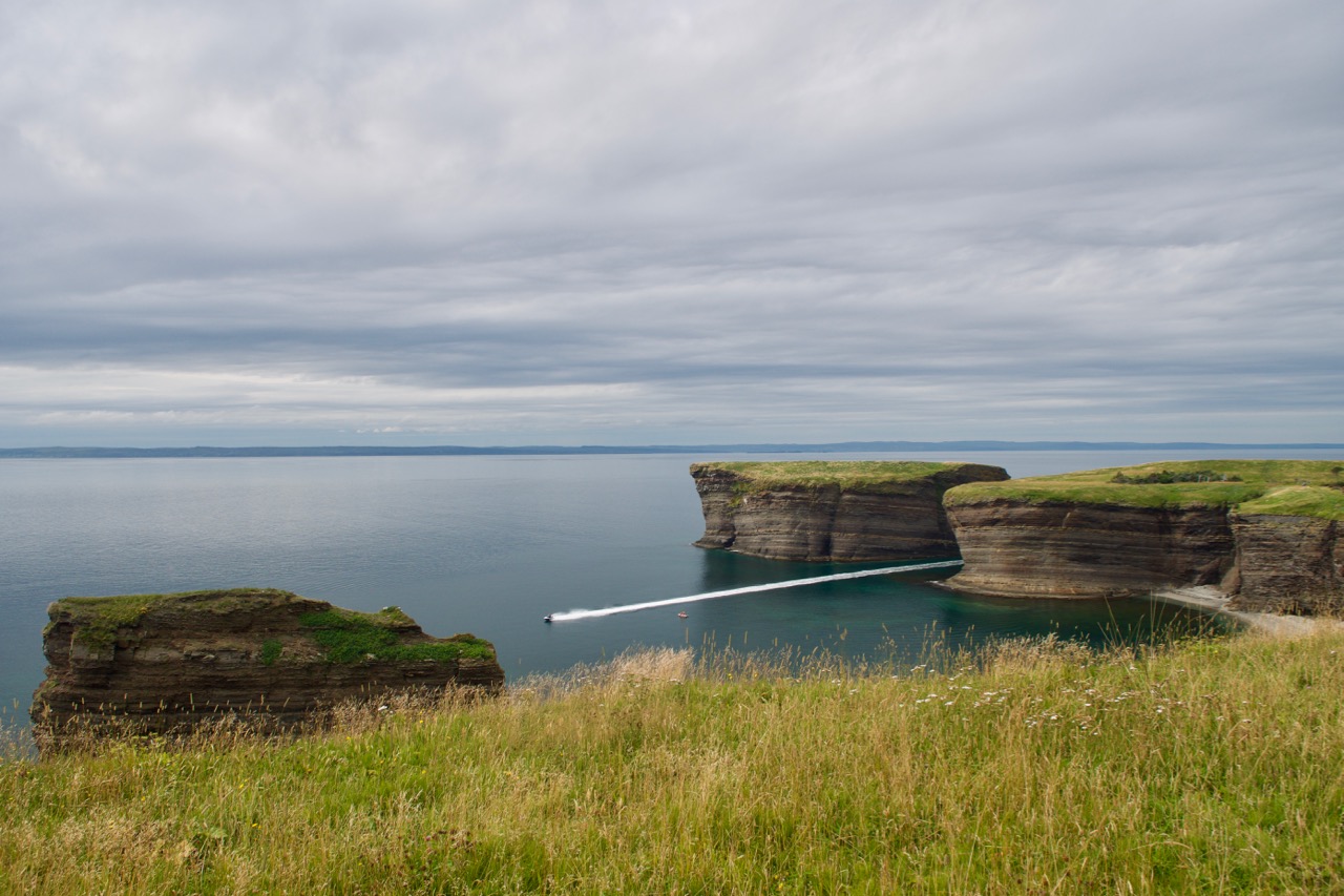 Wir haben uns dann für Bell Island entschieden, eine ca. 9,5 x 3 km große Insel westlich von St. John's. Bell Island fällt zunächst einmal durch seine besondere Form auf – es hat rundherum eine Steilküste (s. Foto 1). Neben einigen wirklich imposanten Kliff-Abschnitten und Felsformationen gibt es auf Bell Island außerdem eine ganze Reihe von Wandgemälden.