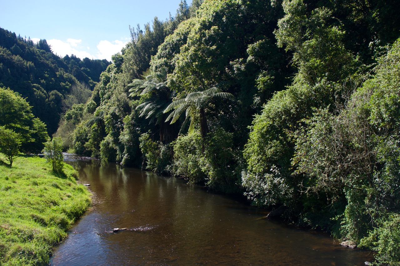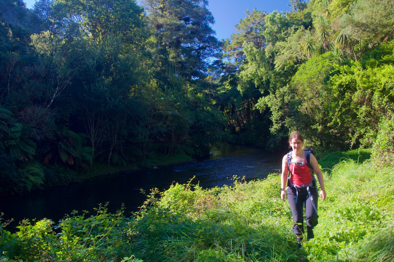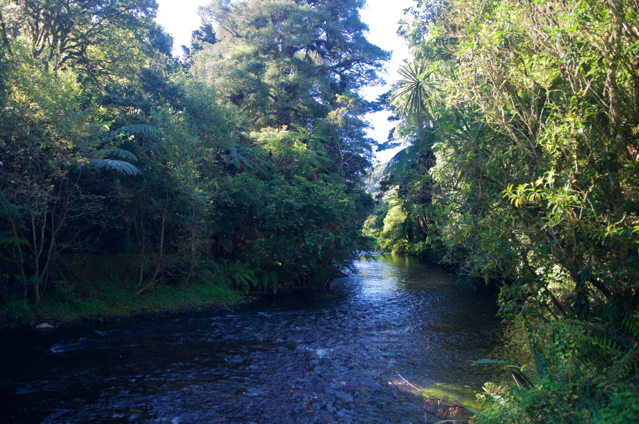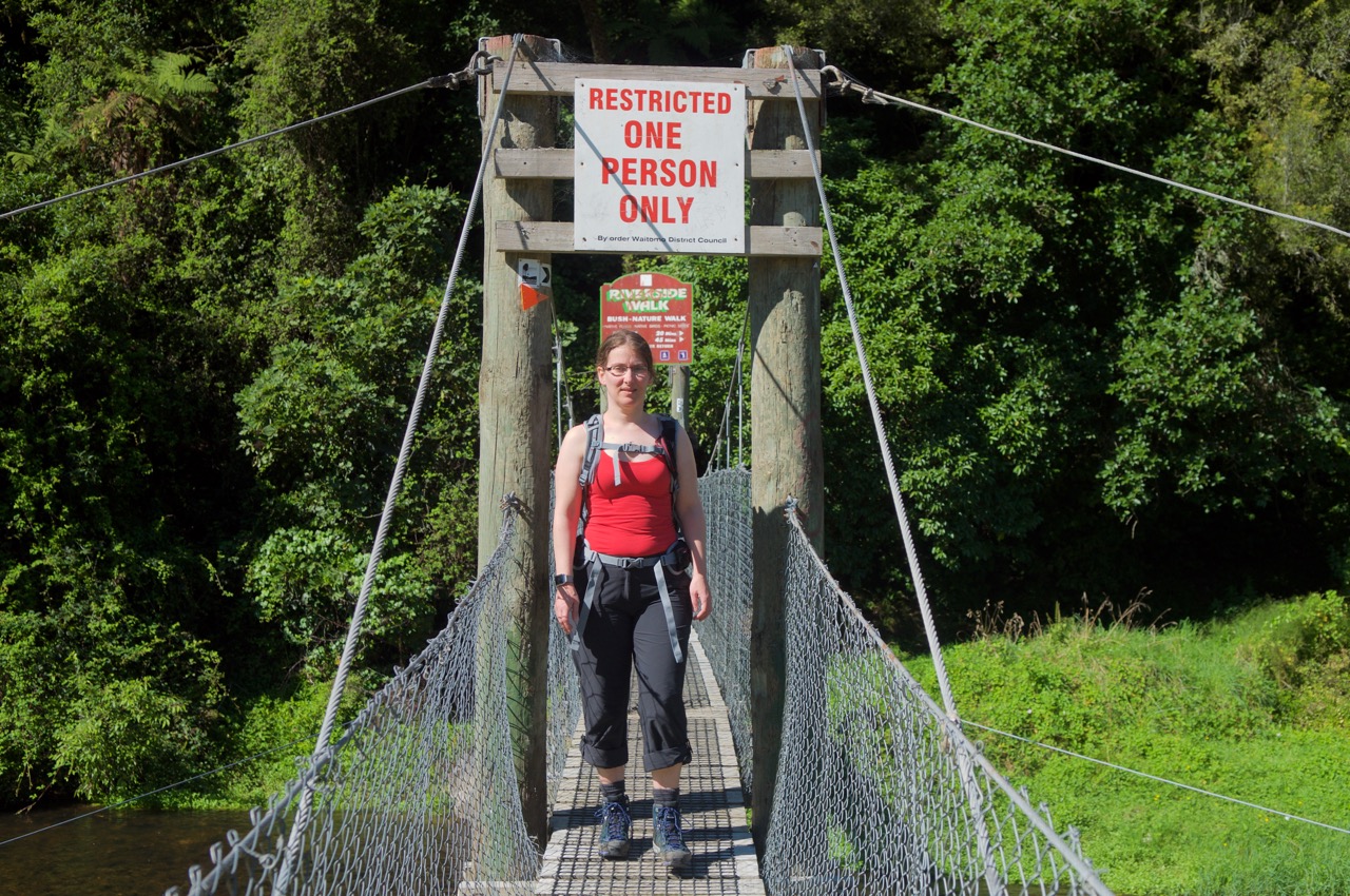 Am heutigen Abend gab es auf unserer Fahrt von Waitomo nach Taumarunui noch einen kleinen Abstecher ins Mangaokewa Reserve, wo zum Abschluss des Tages noch eine eineinhalbstündige Wanderung mit einem Wasserfall am Ende des Pfades auf dem Programm stand.