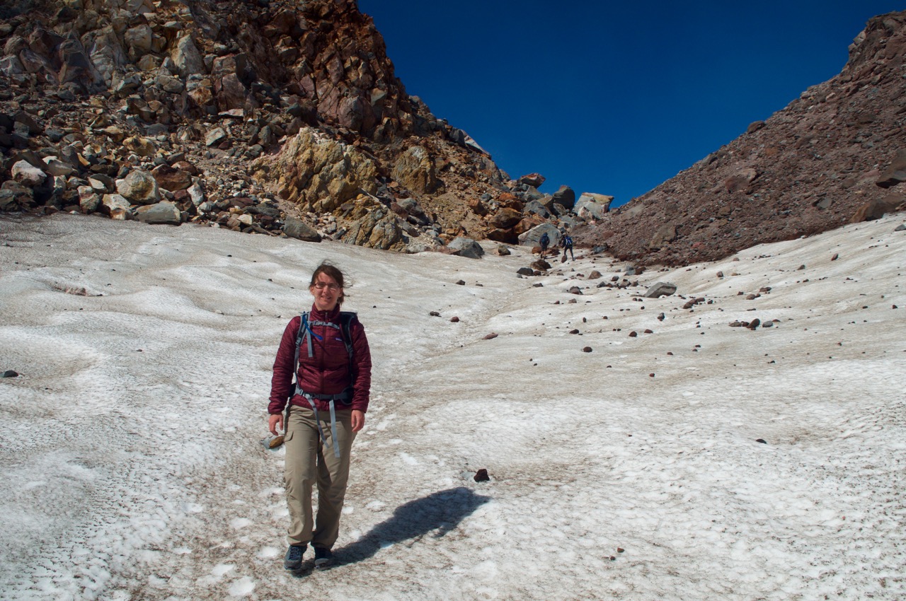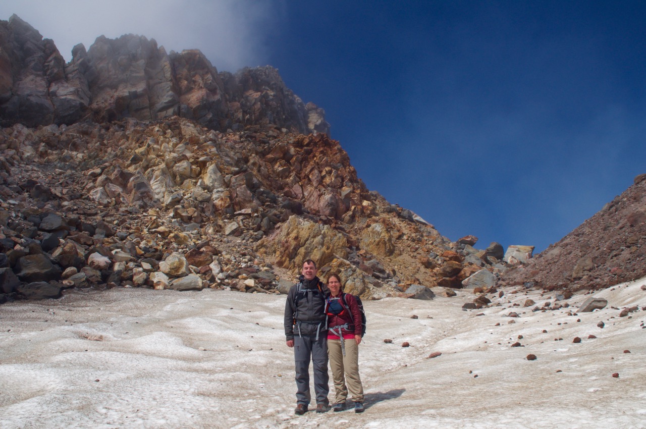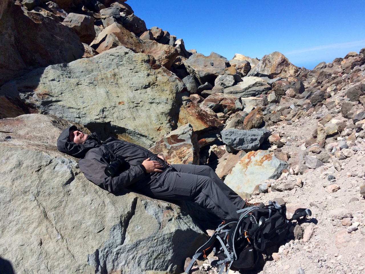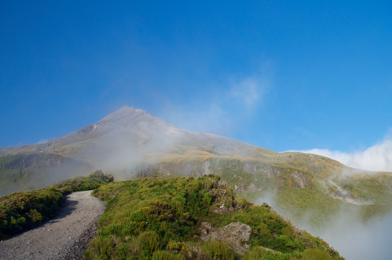 5.30 Uhr Aufstehen stand heute auf dem Programm, denn wir wollten auf den Mount Taranaki. Der Berg ist zwar nur 2.518 m hoch, doch da er nicht irgendwo oben in den Alpen steht, sondern auf Meereshöhe, muss man ziemlich viele Höhenmeter überwinden. Und was viel anstrengender ist: Es gibt keinen Weg, wie man ihn aus den österreichischen Alpen gewohnt ist, sondern man muss zuerst stundenlang Lavafelder hinauf (zwei Schritte hoch quälen, einen zurückrutschen) und dann noch einmal so lange über Lavafelsen klettern. 8-10 Stunden werden für die Tour veranschlagt. Wir haben sie in 8 Stunden geschafft und waren danach so fertig (und so dreckig) wie schon lange nicht mehr. Aber der Spaziergang über das Eisfeld im Krater und der Ausblick vom Gipfel haben für die Strapazen entschädigt. Und unsere Wäsche wird auch gerade gewaschen. ;-)