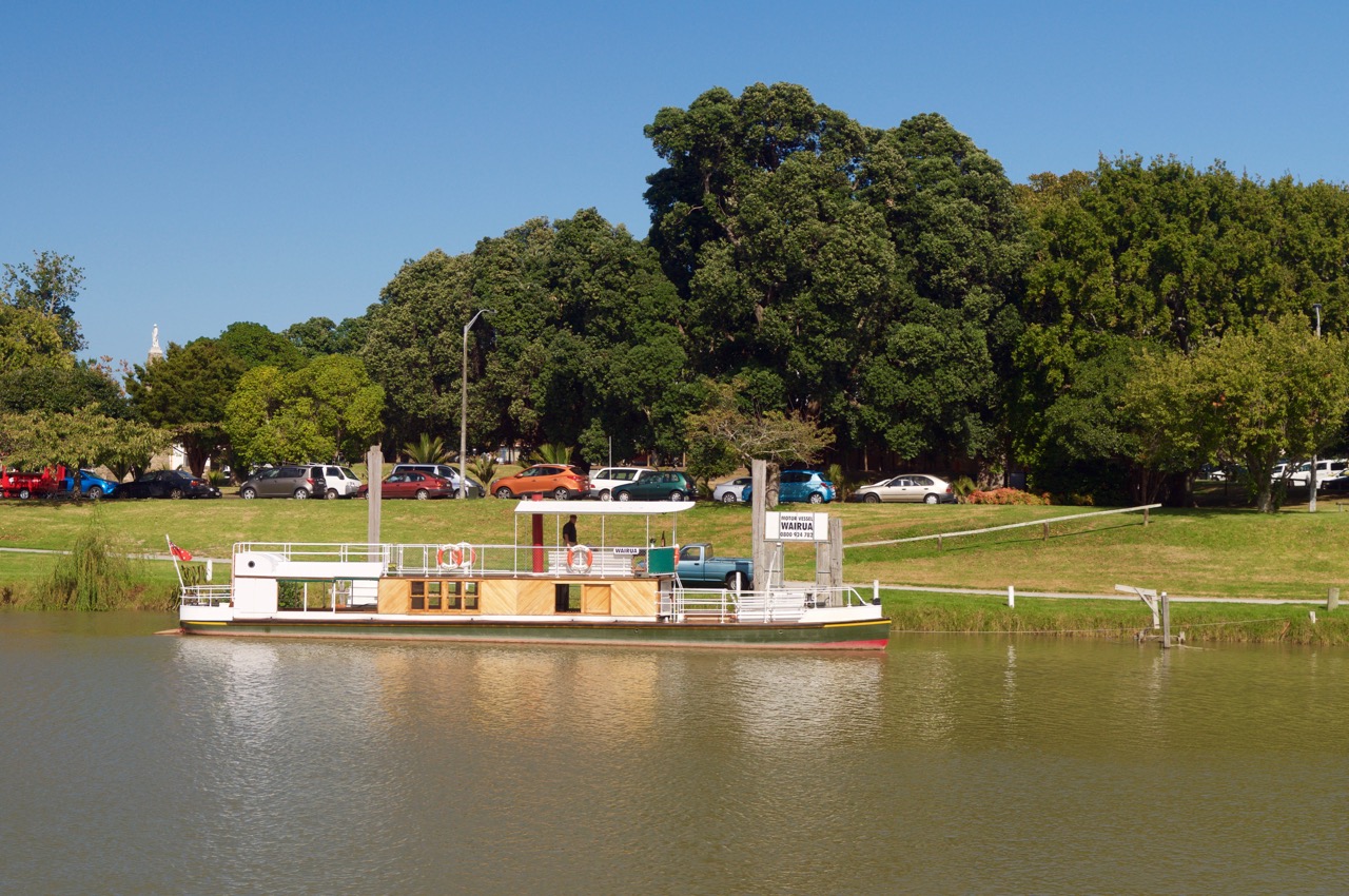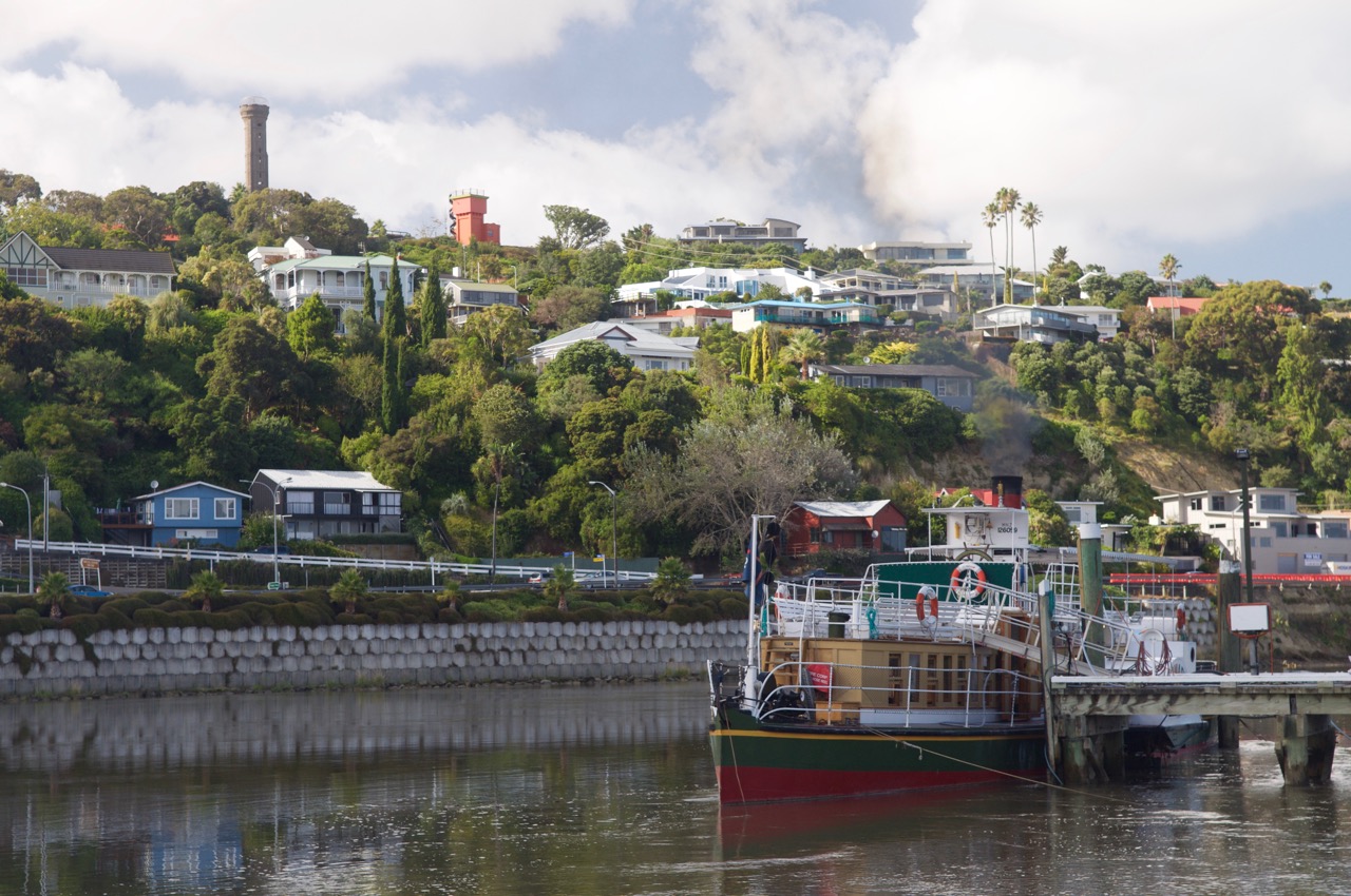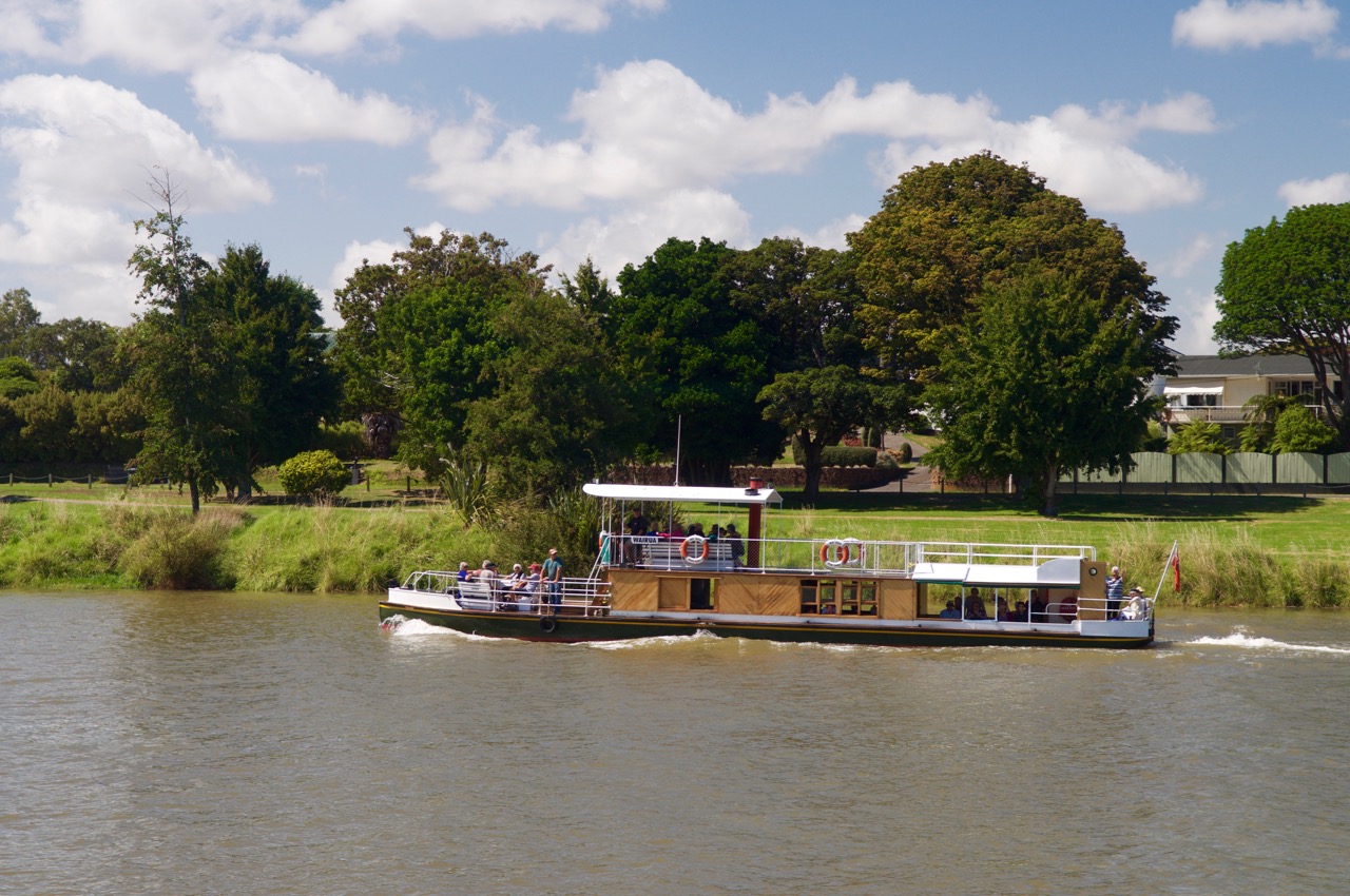 Nach all den Rafting-, Jetboat- und Kletter-Touren gab es heute eine gemütliche Fahrt mit dem einzigen erhaltenen Schaufelraddampfer, der 106 Jahre alten Waimarie, auf dem Whanganui River. Vor Fertigstellung der Straßenverbindung zwischen Auckland und Wellington war der Whanganui ein Teil dieser wichtigen Handelsroute, verlor diese Bedeutung dann aber schlagartig und wird heute hauptsächlich von Kajakfahrern geschätzt.