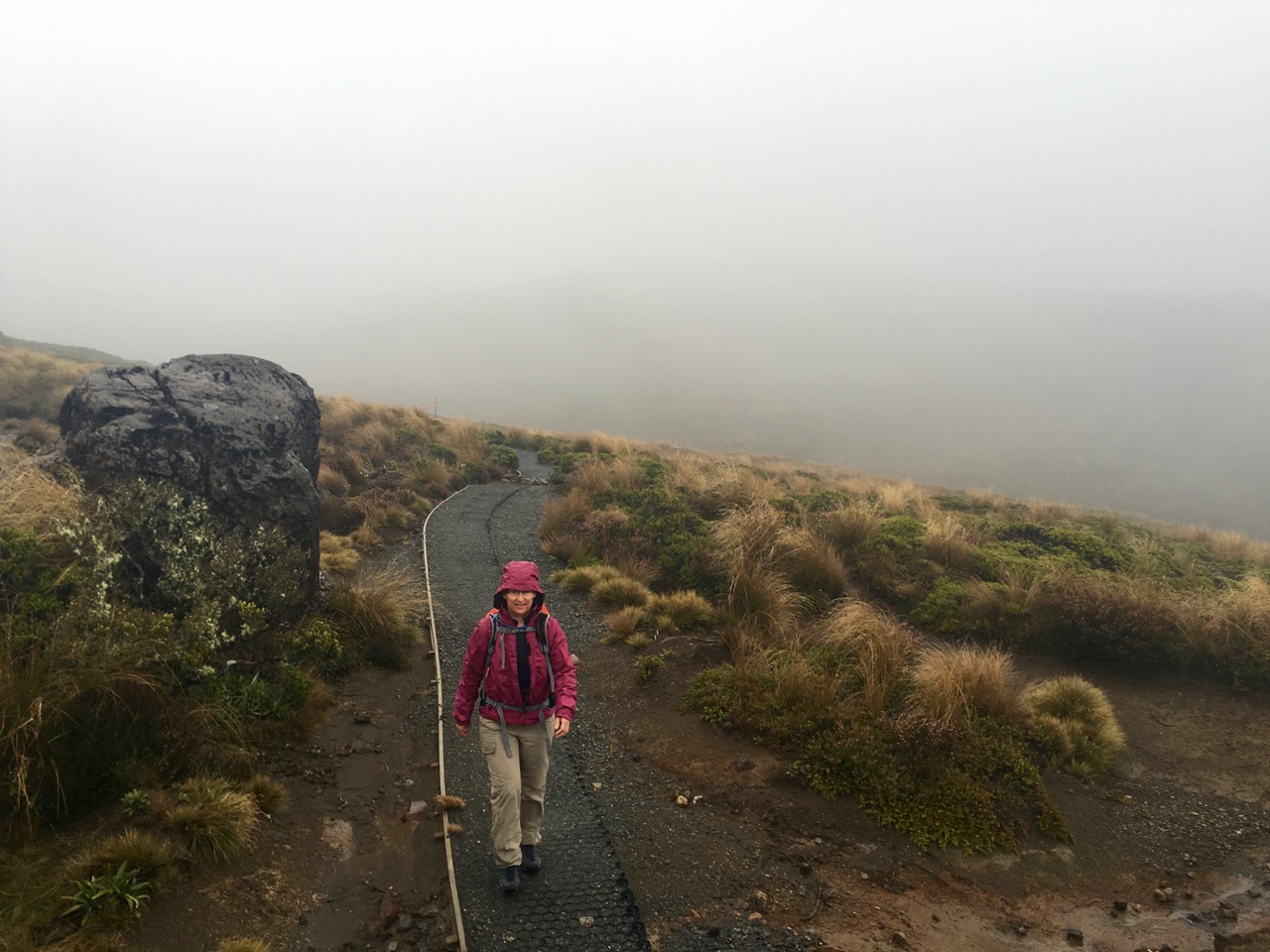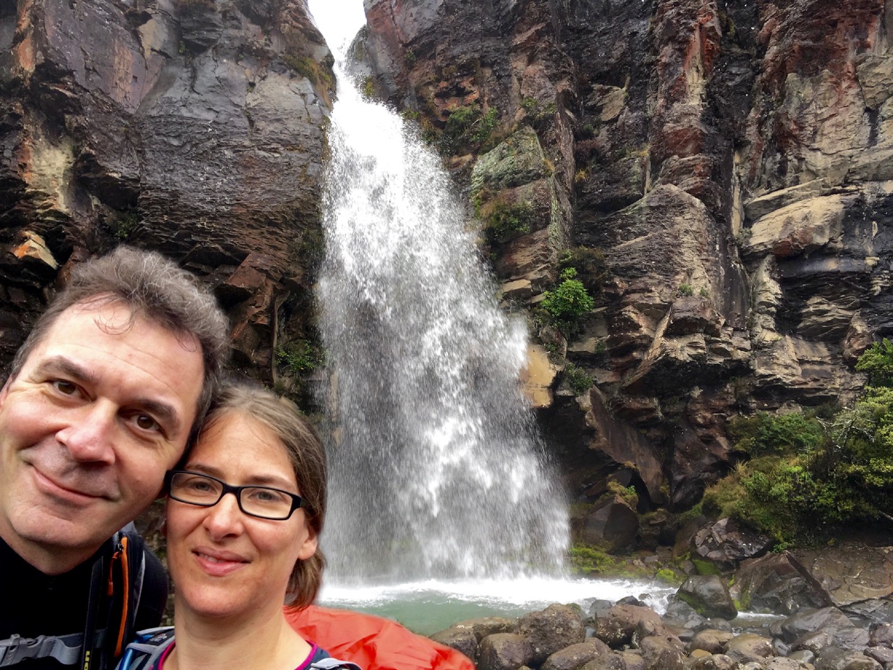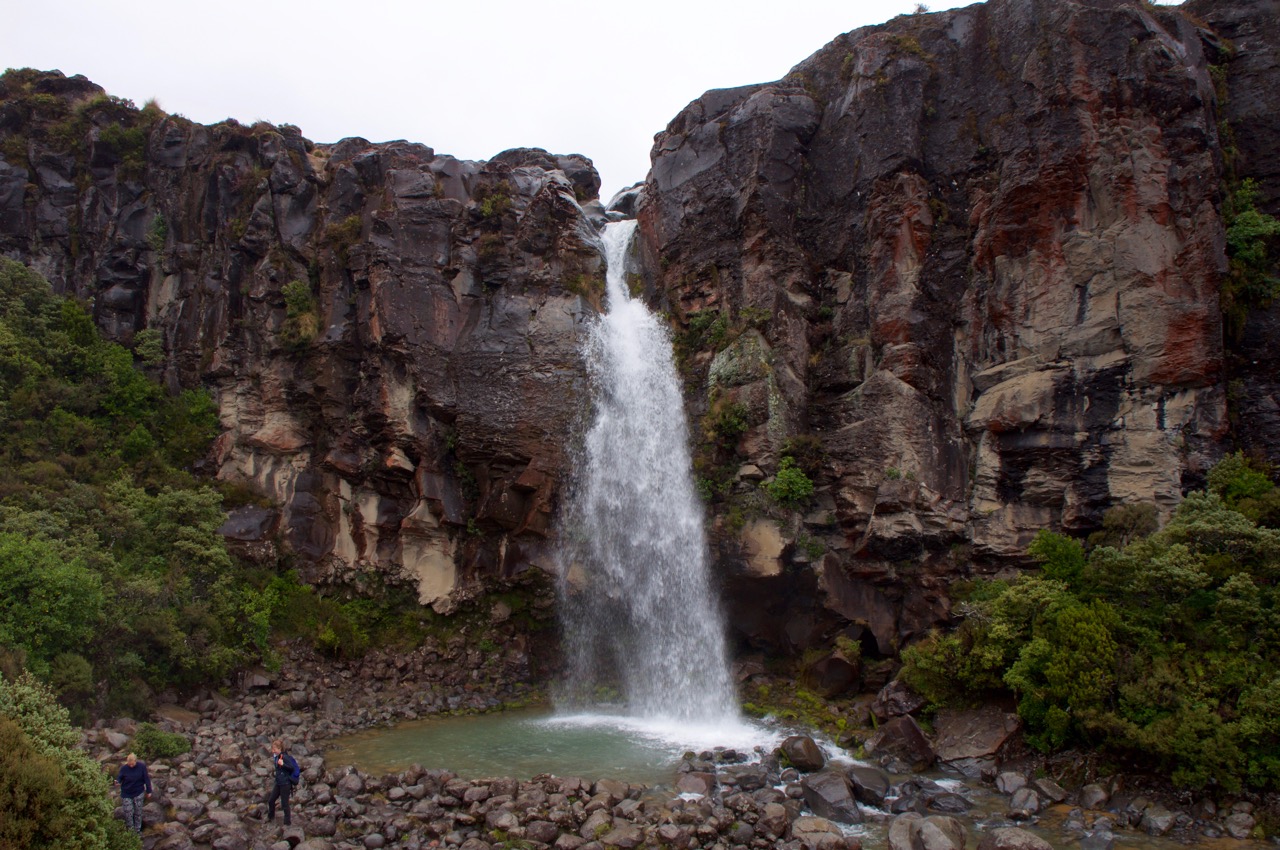 Stattdessen entschieden wir uns für eine weniger alpine und damit weniger gefährliche Tour zu einem Wasserfall und einem See hier bei Whakapapa. Die Wanderung war dann auch schon 16 km lang war, allerdings nicht so hoch wie das Tongariro Crossing, so dass wir nur ganz selten in den Wolken wanderten. Nass waren wir am Schluss trotzdem, so dass wir am Nachmittag noch den Spa-Bereich unseres Hotels nutzten, um uns wieder aufzuwärmen.