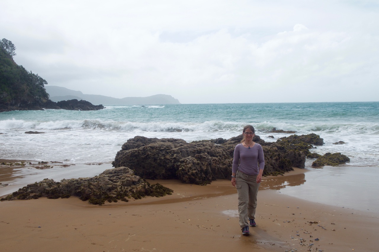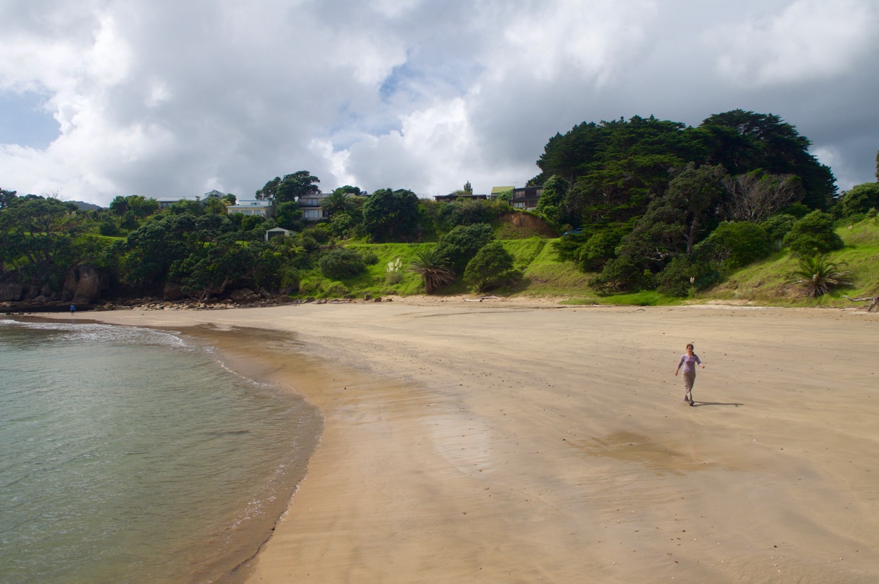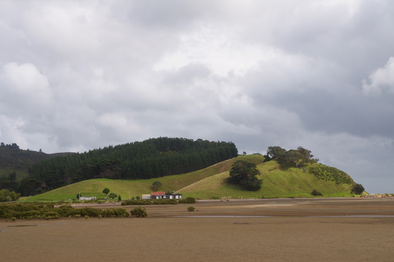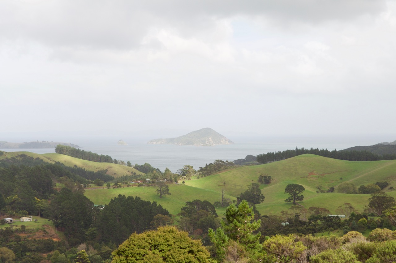Die zweite Tageshälfte fuhren wir dann die schönsten Strände der nördlichen Coromandel ab. Gestartet sind wir von Coromandel Town an der Westküste nach Norden, dann rüber an die Ostküste und dort nach Süden und zurück zu unserem Quartier in Coromandel Town. Man darf dazu wissen, dass die Coromandel-Halbinsel maximal 40 km breit ist und dabei auf 900 m ansteigt. Bei Coromandel Town ist sie sogar nur weniger als 10 km breit. Und auch wenn die Straße natürlich nicht über den höchsten Gipfel führt, sondern der Pass an dieser schmalen Stelle "nur" auf 420 m Höhe liegt, könnt Ihr Euch vorstellen, dass die Straße und auch die fahrerischen Anforderungen (steile, geschotterte, häufig einspurige Serpentinen-Straße am Hang entlang – wie in Neuseeland üblich, häufig nicht oder kaum gegen Abstürzen gesichert) ziemlich anspruchsvoll sind. Die letzten beiden Fotos zeigen dann auch keine Strände mehr, sondern die Aussicht von der höchsten Stelle in entgegengesetzte Richtungen mit dem Meer auf beiden Seiten.