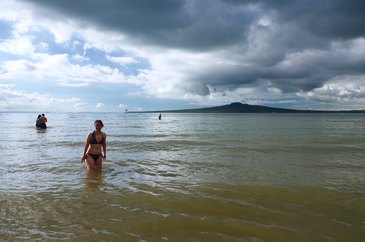Auf unseren bisherigen Fotos habt Ihr kaum einmal fremde Menschen gesehen, denn falls es einmal vorgekommen sein sollte, dass an einem Strand oder in einer Bucht schon jemand war, dann sind wir einfach zur nächsten weitergezogen. Mitten in Auckland sieht das natürlich anders aus, speziell an einem spätsommerlichen Herbsttag (25°C) an einem verlängerten Wochenende (Ostern).