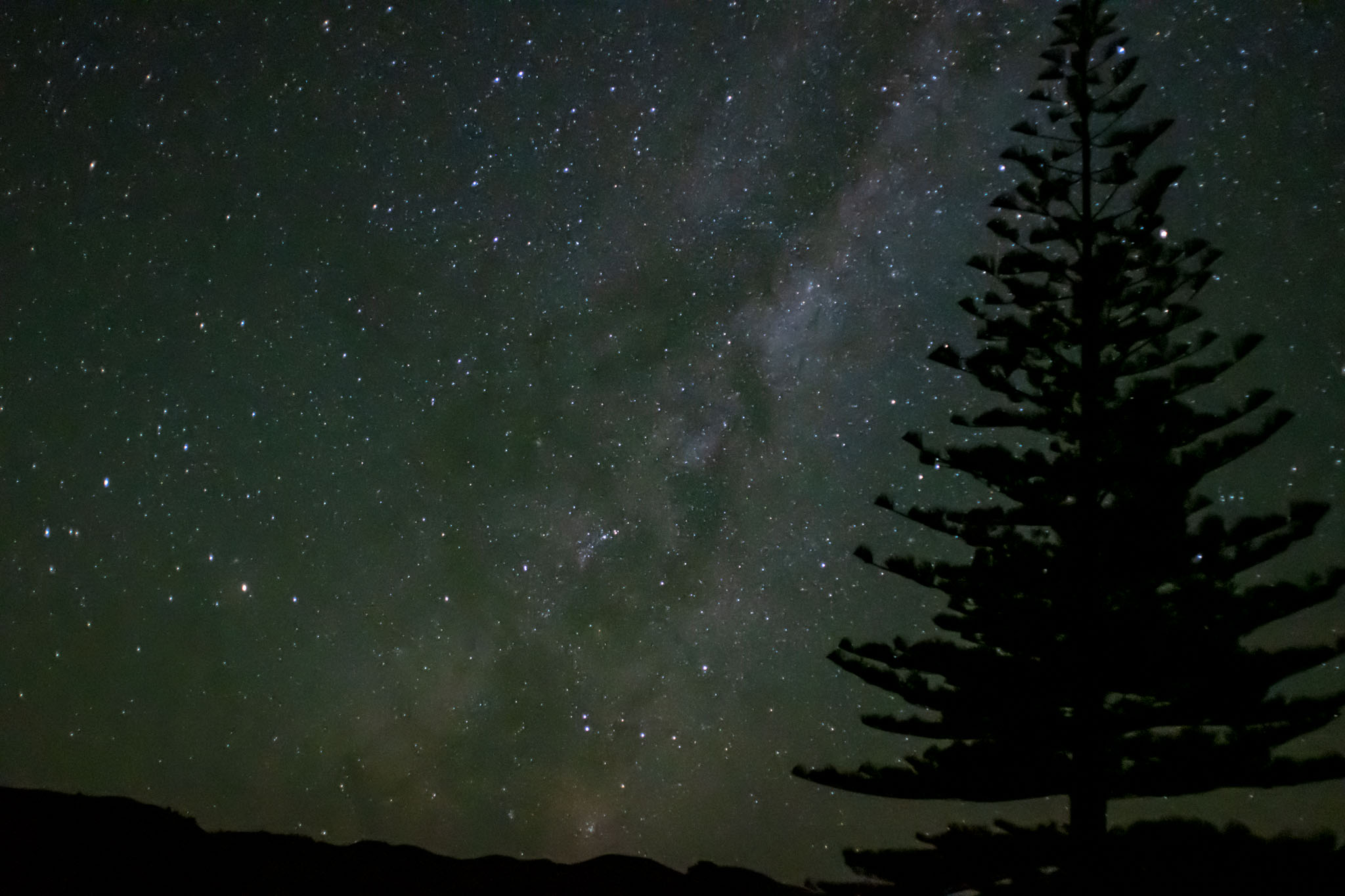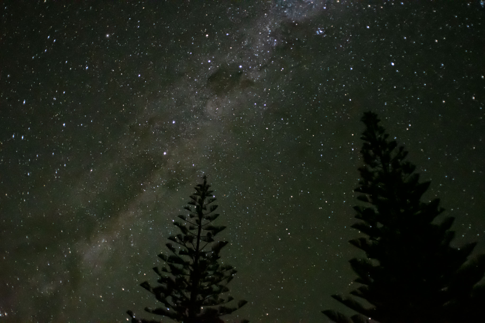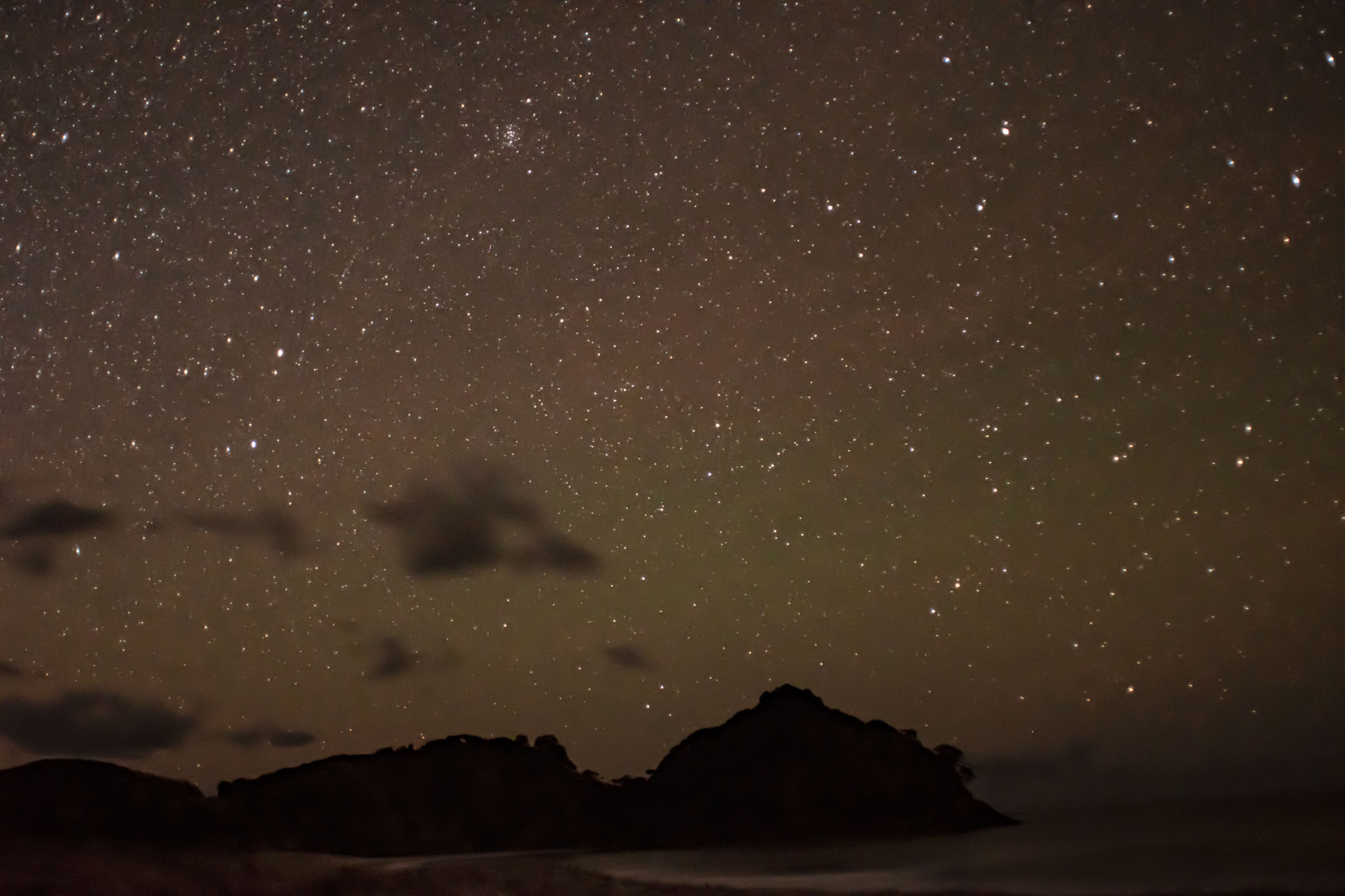 Das Great Barrier Island ist eine der bewohnten Gegenden der Erde mit der geringsten Lichtverschmutzung. Auckland ist ca. 90 km entfernt und der Lichtkegel Aucklands reicht nur etwa 50 km weit und auf der sehr dünn besiedelten Insel gibt es keine Straßenbeleuchtung und auch die wenigen Gebäude sind nur spärlich beleuchtet. Obwohl wir all das wussten, war es vorher für uns nicht vorstellbar, wie dunkel es bei Nacht sein kann. Ohne Stirn- oder Taschenlampe ist man ziemlich schnell völlig aufgeschmissen.