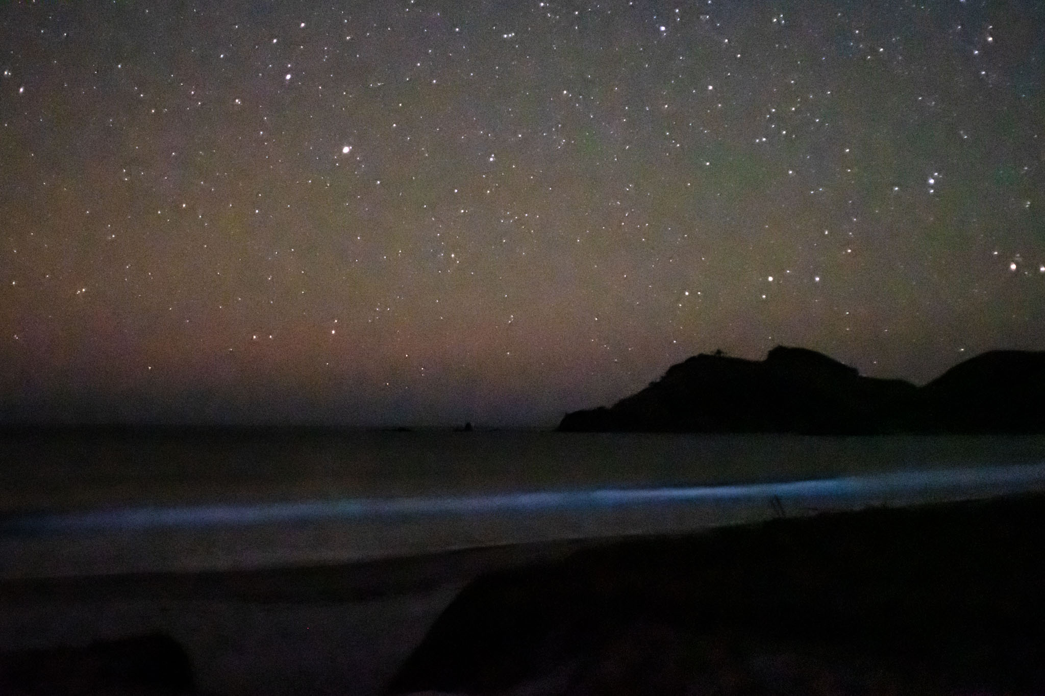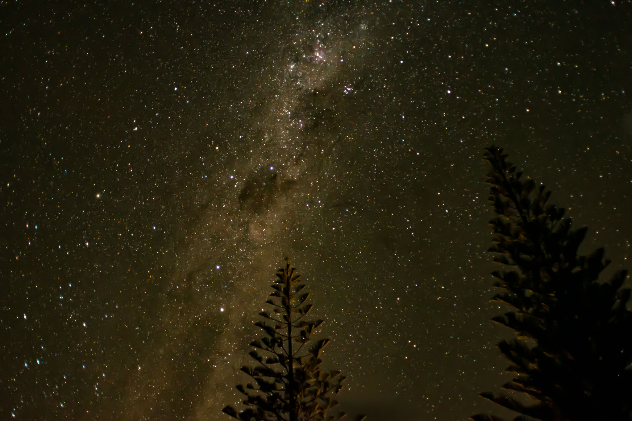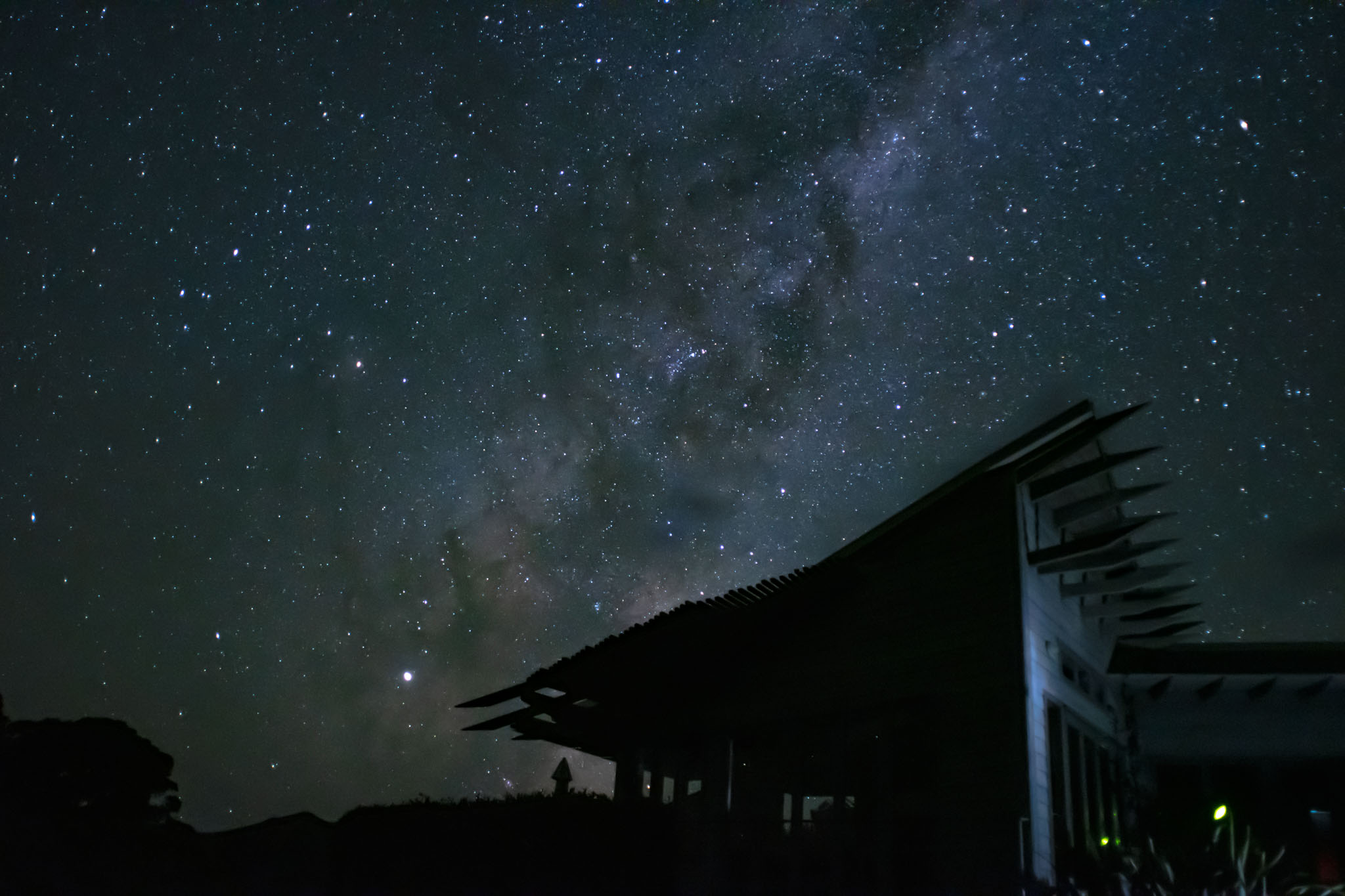 Das Great Barrier Island ist eine der bewohnten Gegenden der Erde mit der geringsten Lichtverschmutzung. Auckland ist ca. 90 km entfernt und der Lichtkegel Aucklands reicht nur etwa 50 km weit und auf der sehr dünn besiedelten Insel gibt es keine Straßenbeleuchtung und auch die wenigen Gebäude sind nur spärlich beleuchtet. Obwohl wir all das wussten, war es vorher für uns nicht vorstellbar, wie dunkel es bei Nacht sein kann. Ohne Stirn- oder Taschenlampe ist man ziemlich schnell völlig aufgeschmissen.