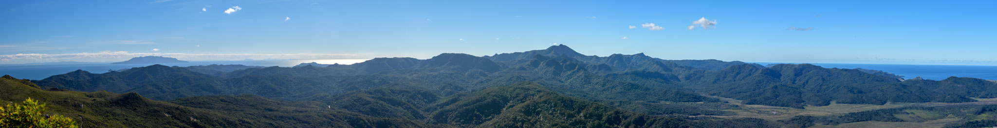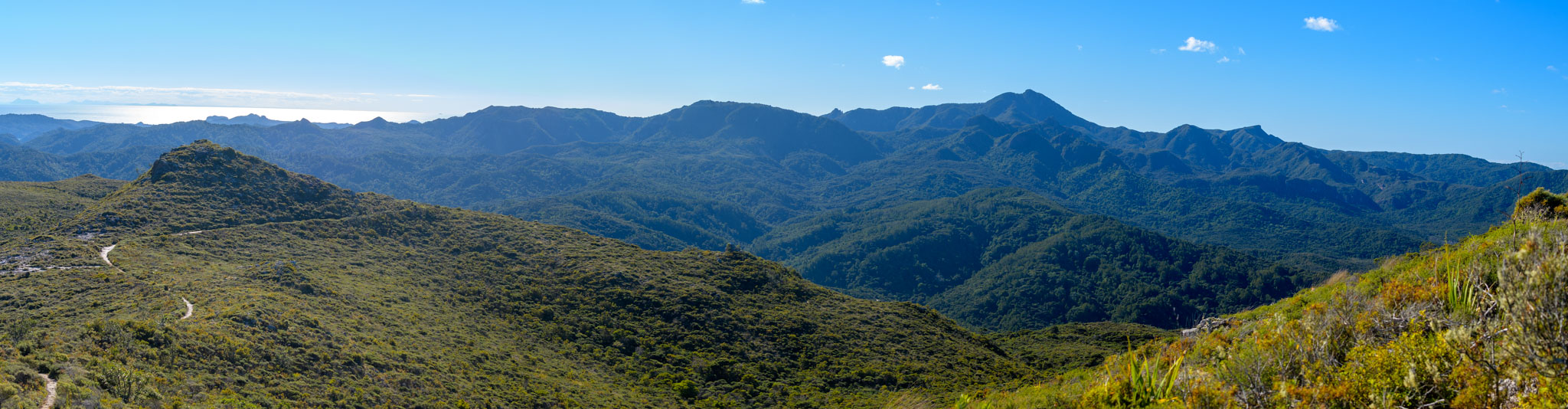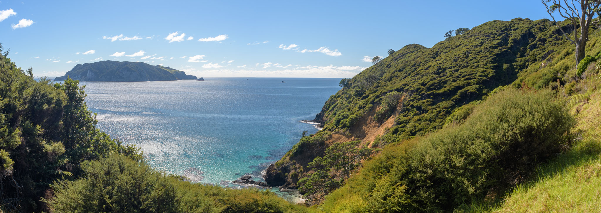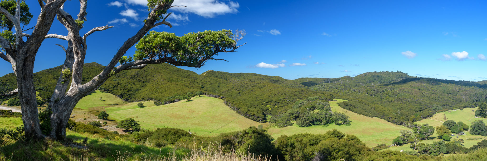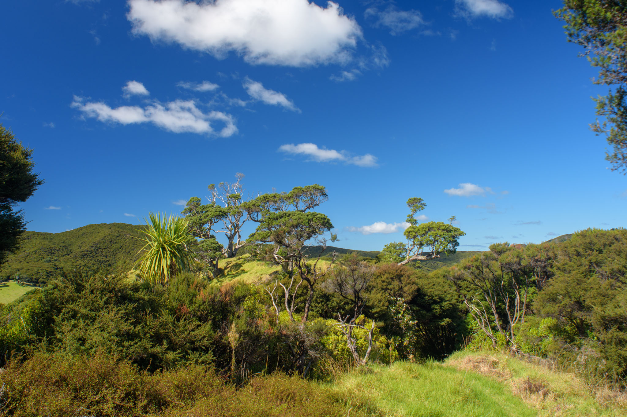 Das Great Barrier Island ist gerade einmal 18 km breit und 35 km lang. Die höchste Erhebung ist 621 m hoch, die Insel ist also sehr hügelig und lädt damit herrlich zum Wandern ein und bietet dabei wunderschöne Aussichten. Vorgestern haben wir eine ganztägige Wanderung absolviert, den Aotea Track (s. eigenen Blogeintrag), doch auch an den anderen Tagen gab es kleinere Wanderungen und heute haben wir gleich mehrere etwa 2-stündige Wanderungen absolviert.