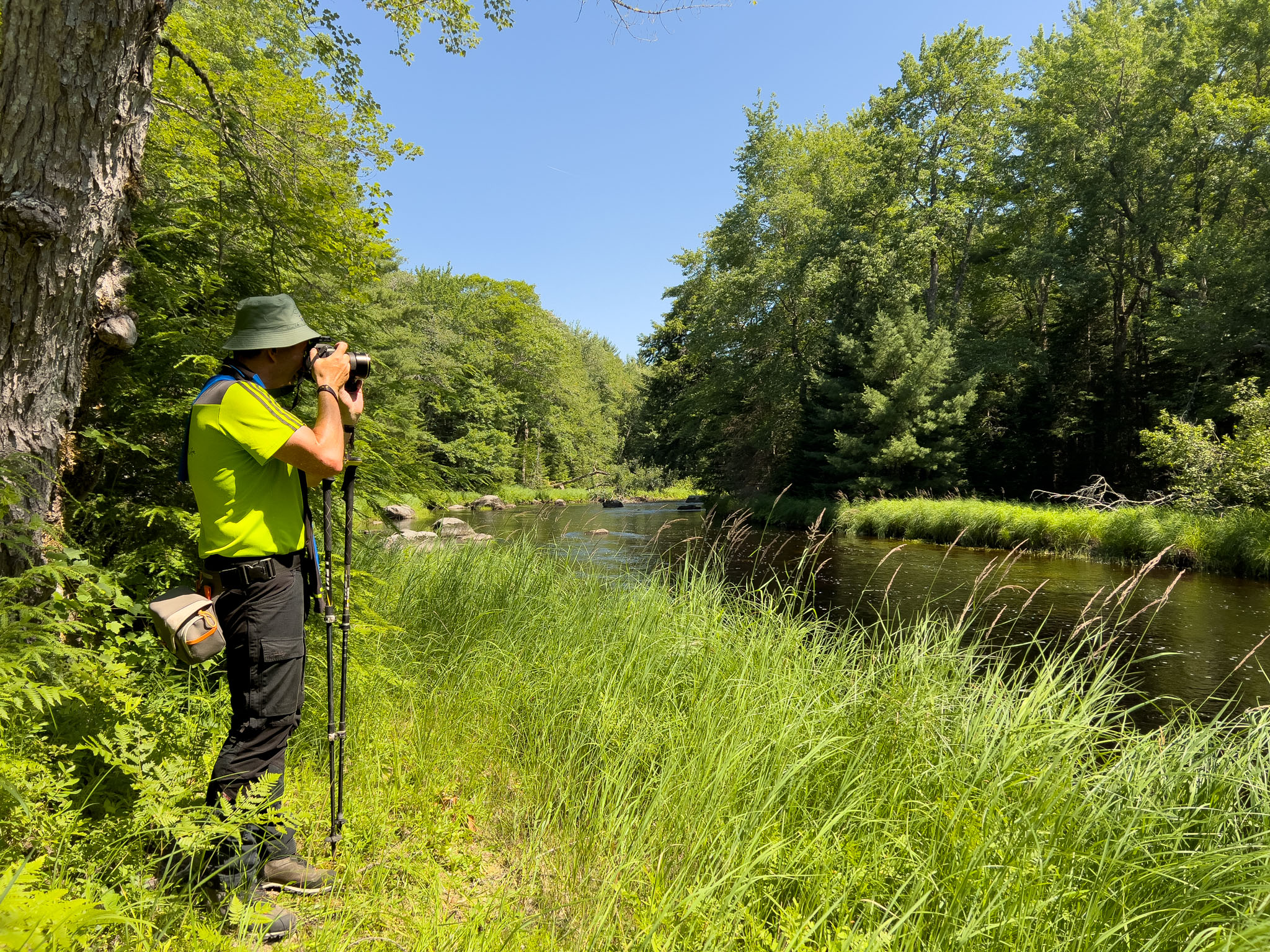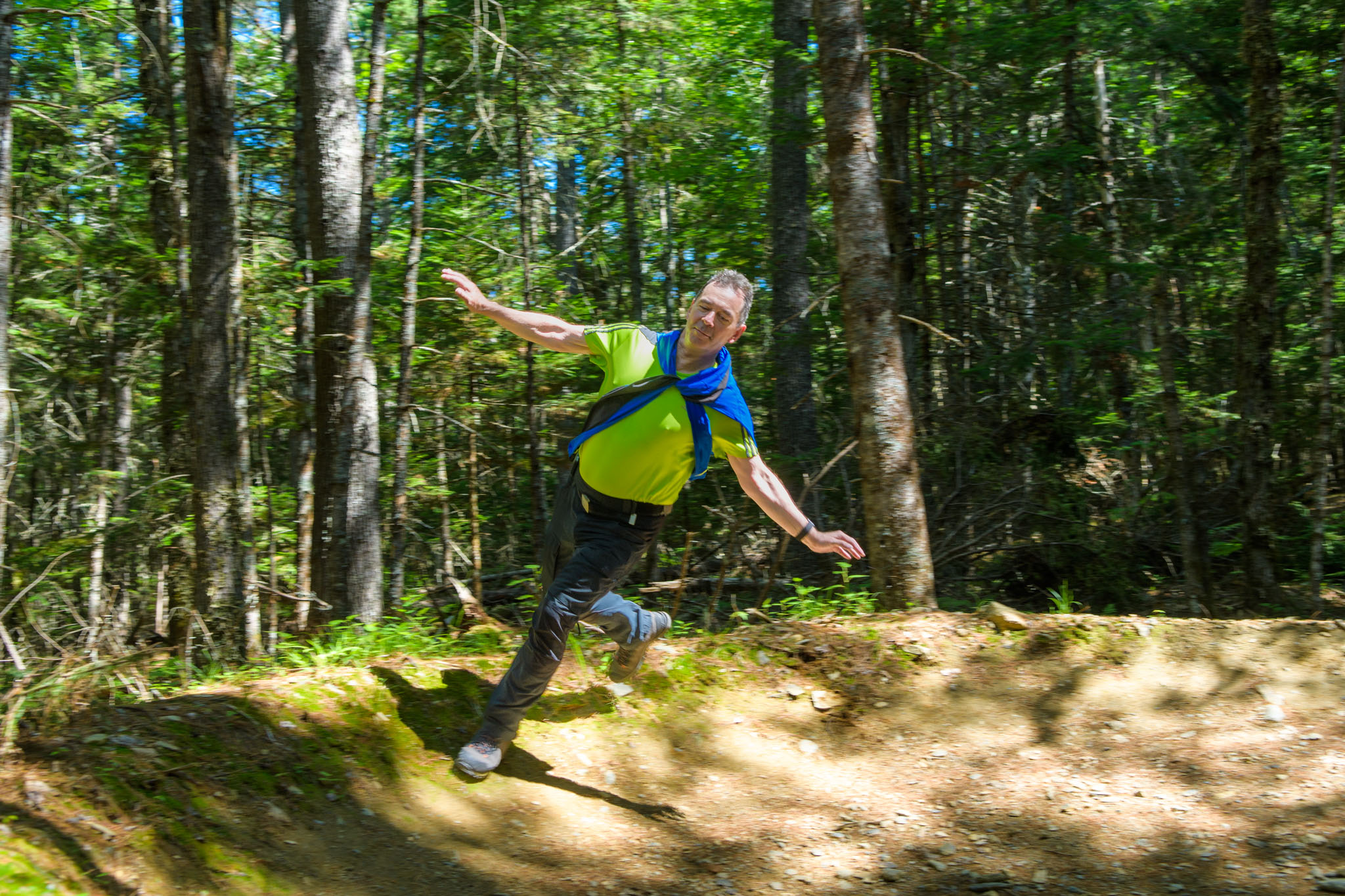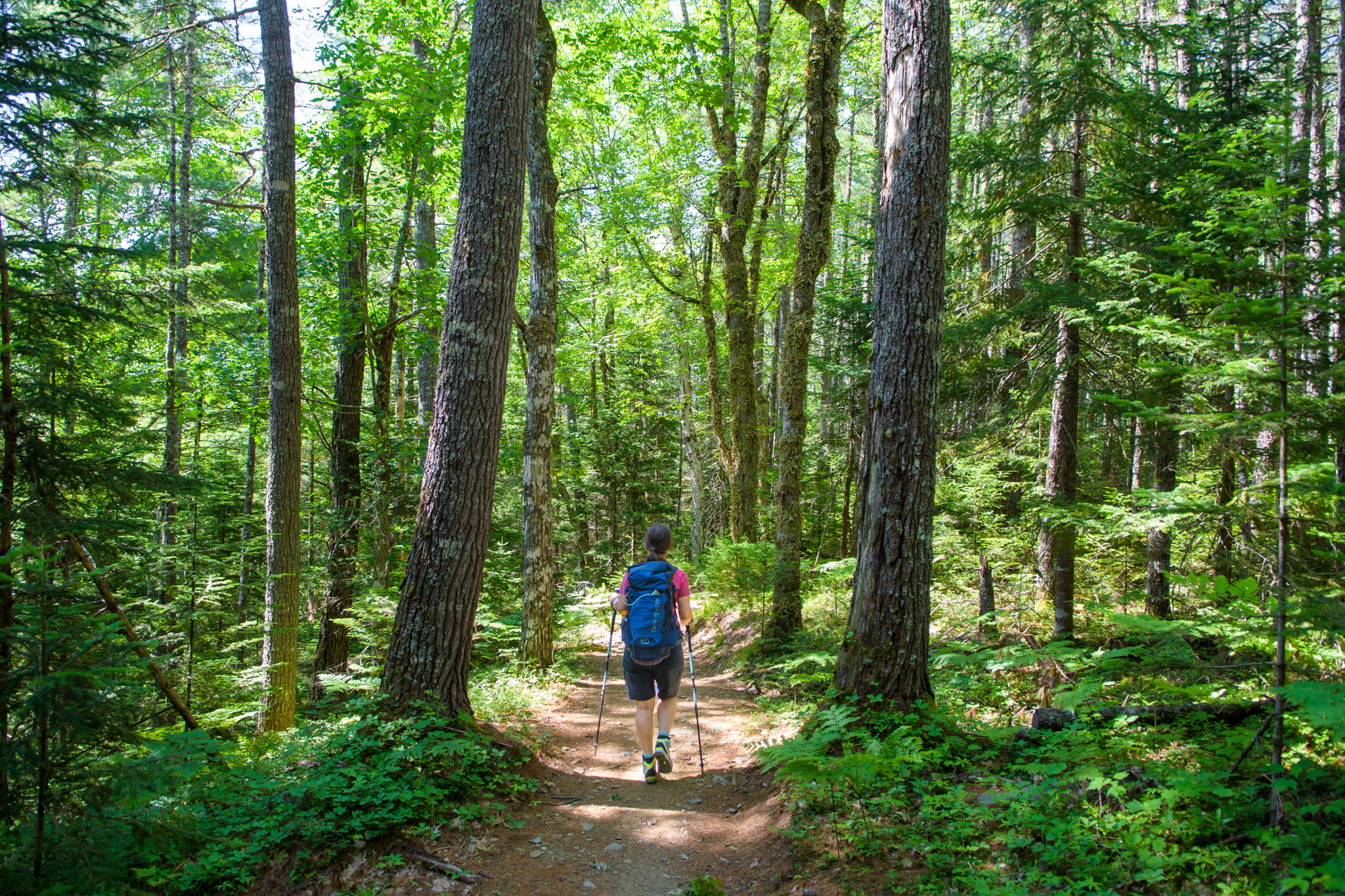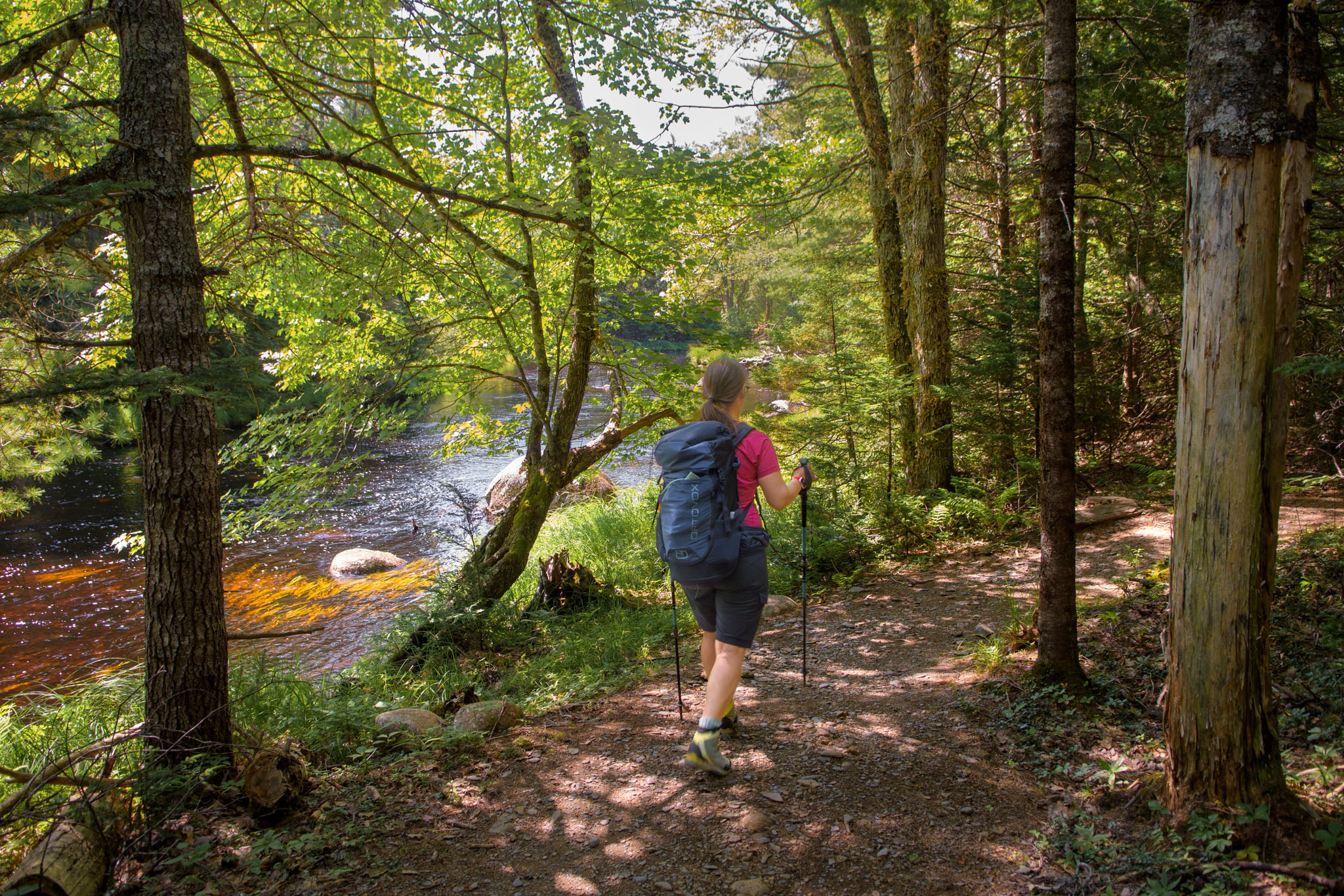 Wir haben den heutigen Tag aber nicht nur mit Jammern über das Bett verbracht, sondern sind nach dem Frühstück in den Kejimkujik-Nationalpark aufgebrochen, um den Ukme‘k Trail zu wandern, eine wirklich schöne, knapp 15 km und gut viereinviertel Stunden lange Wanderung (inkl. div. Fotostopps und Rast). Der Trail ist sowohl für Wanderer als auch für Mountainbiker angelegt. Daher sind viele Kurven überhöht, was sich natürlich auch auf unsere Wandertechnik ausgewirkt hat. 😉
