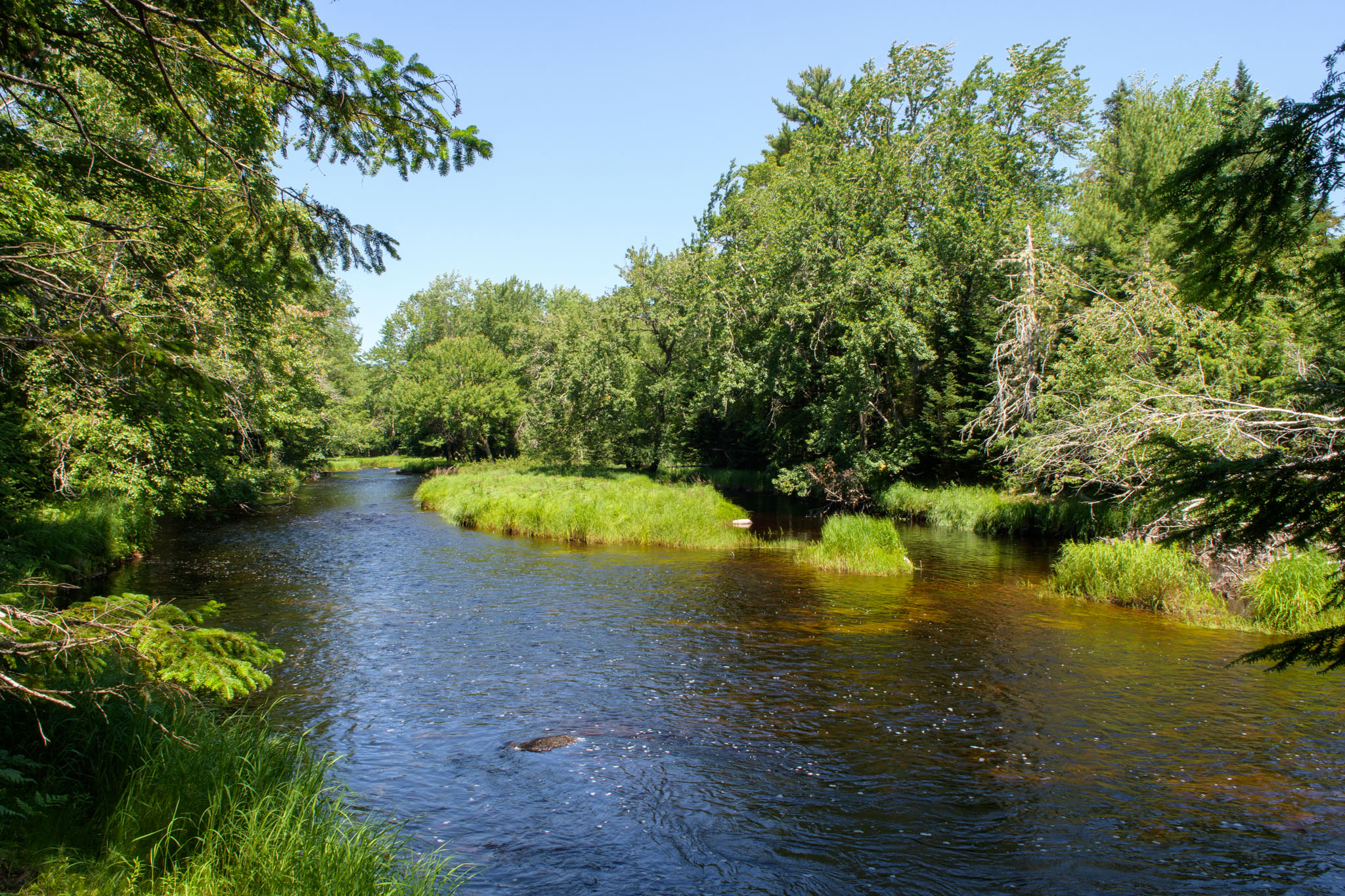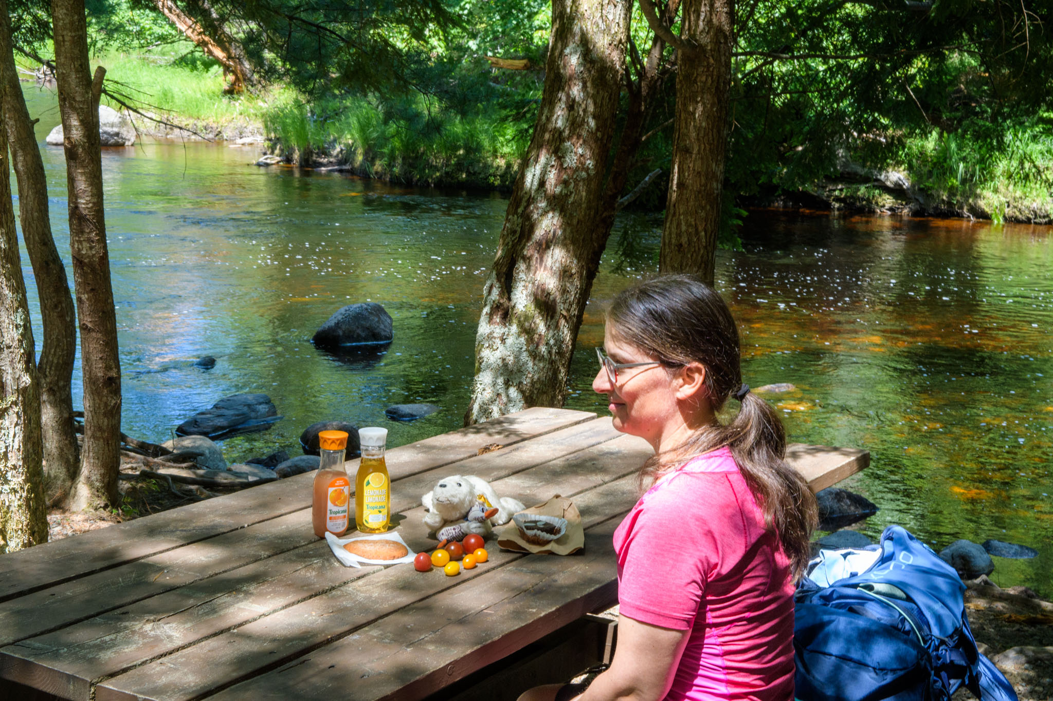 Da es hier in der Pampa kein Restaurant gibt, das Dienstagabend offen hat, haben wir im Laden nebenan noch ein bisschen eingekauft, um heute Abend genug zu Essen zu haben, und sind dann wieder zurück in den Nationalpark ans Merrymakedge am Kejimkujik Lake. Dort haben wir einfach den Blick auf den See und die Zeit genossen.
