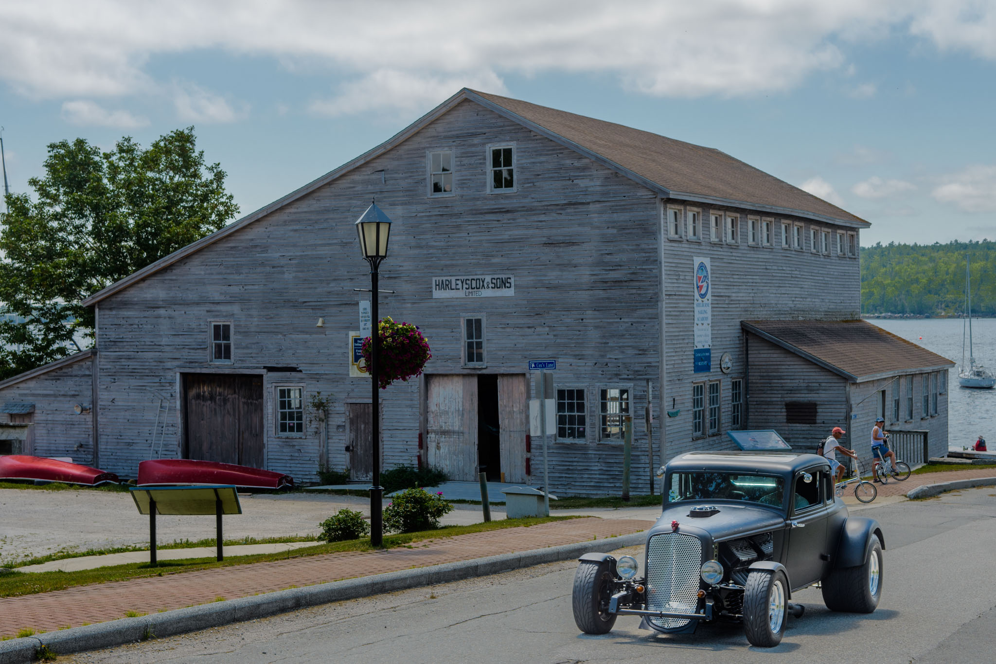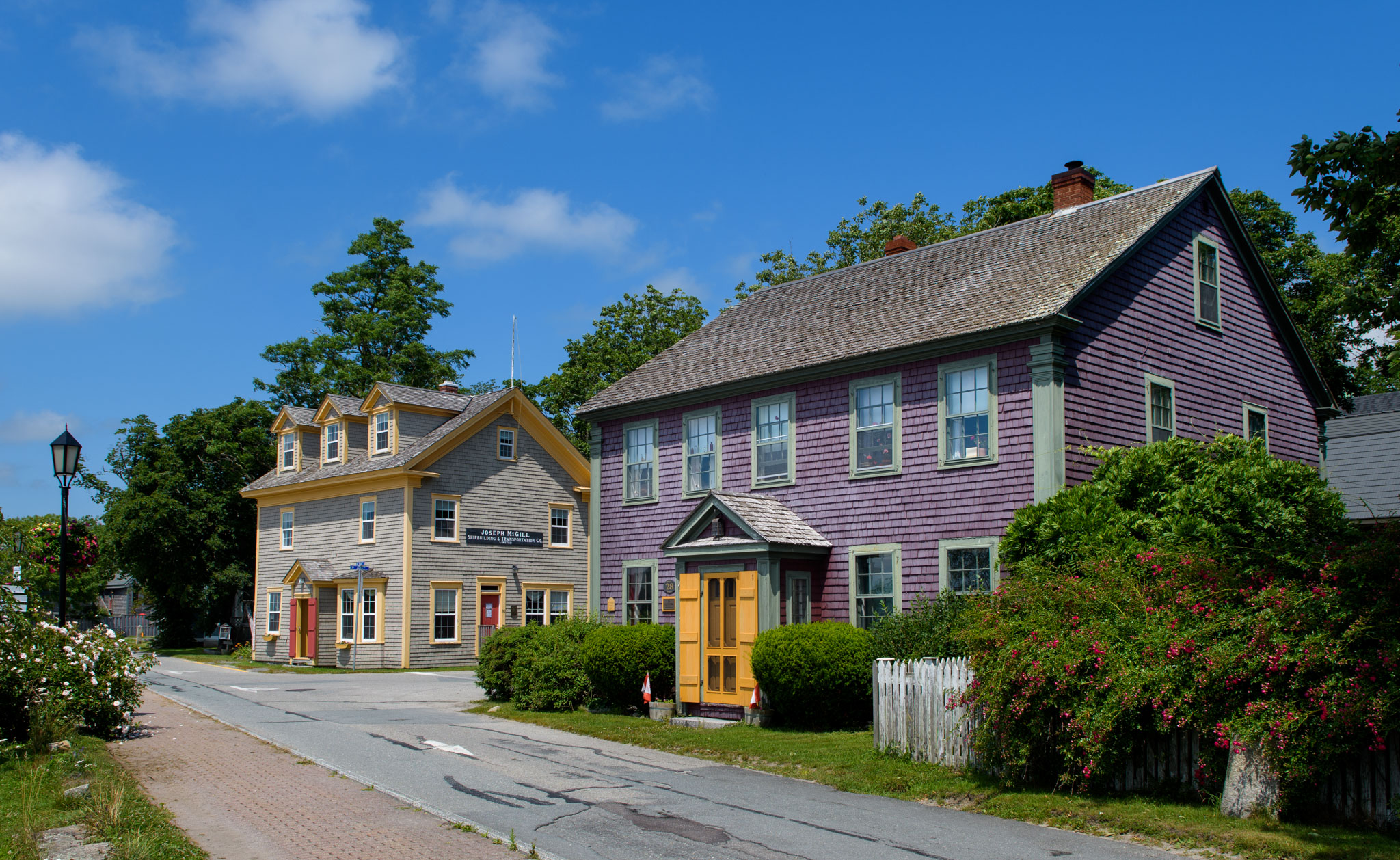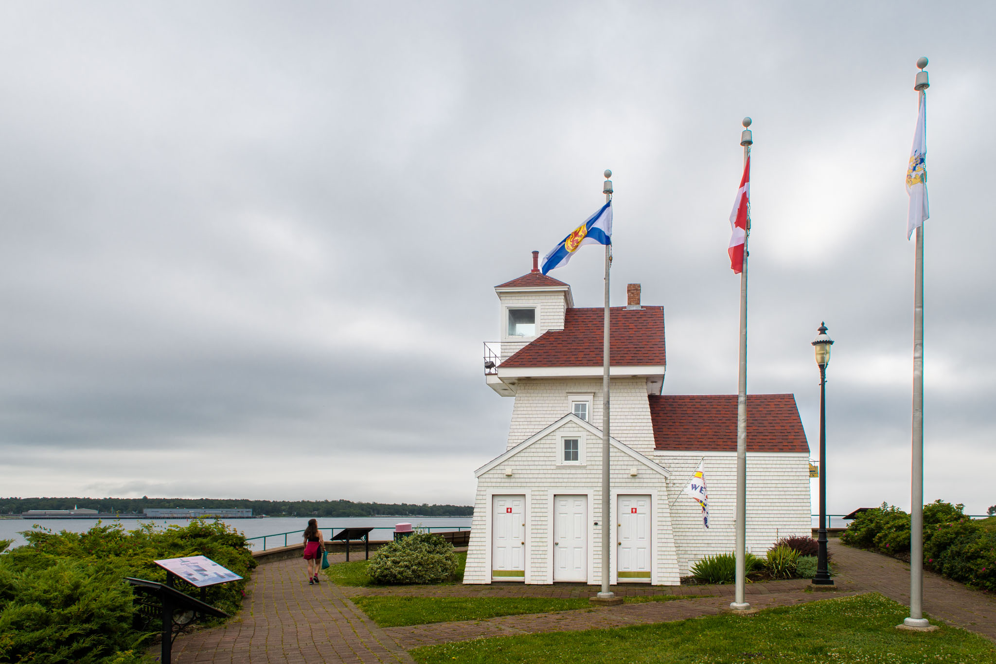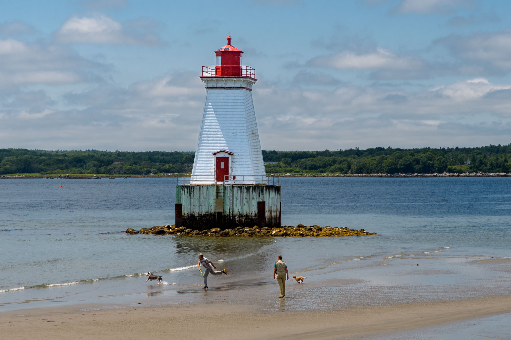 Während es heute Vormittag ziemlich bewölkt war, kam ab etwa 13 Uhr die Sonne raus. Auf unserem Weg nach Shelburne hielten wir noch an einem hübschen Strand, der Privatgrund ist, bei dem die Mieter aber so freundlich waren, dass wir dort ein bisschen fotografieren durften, sowie am Sandy Point-Leuchtturm, auf den der Begriff "Turm" besser zutrifft. Shelburne ist ein kleines Städtchen mit Holzhäusern aus dem 18. Jahrhundert. Anders als Lunenburg ist es aber offensichtlich weit genug von Halifax entfernt, so dass es keine Unmengen an Tagestouristen gibt und man sogar nachmittags um Zwei einen Parkplatz mitten im Zentrum bekommt. Dafür gibt es aber auch keine Eisdiele.