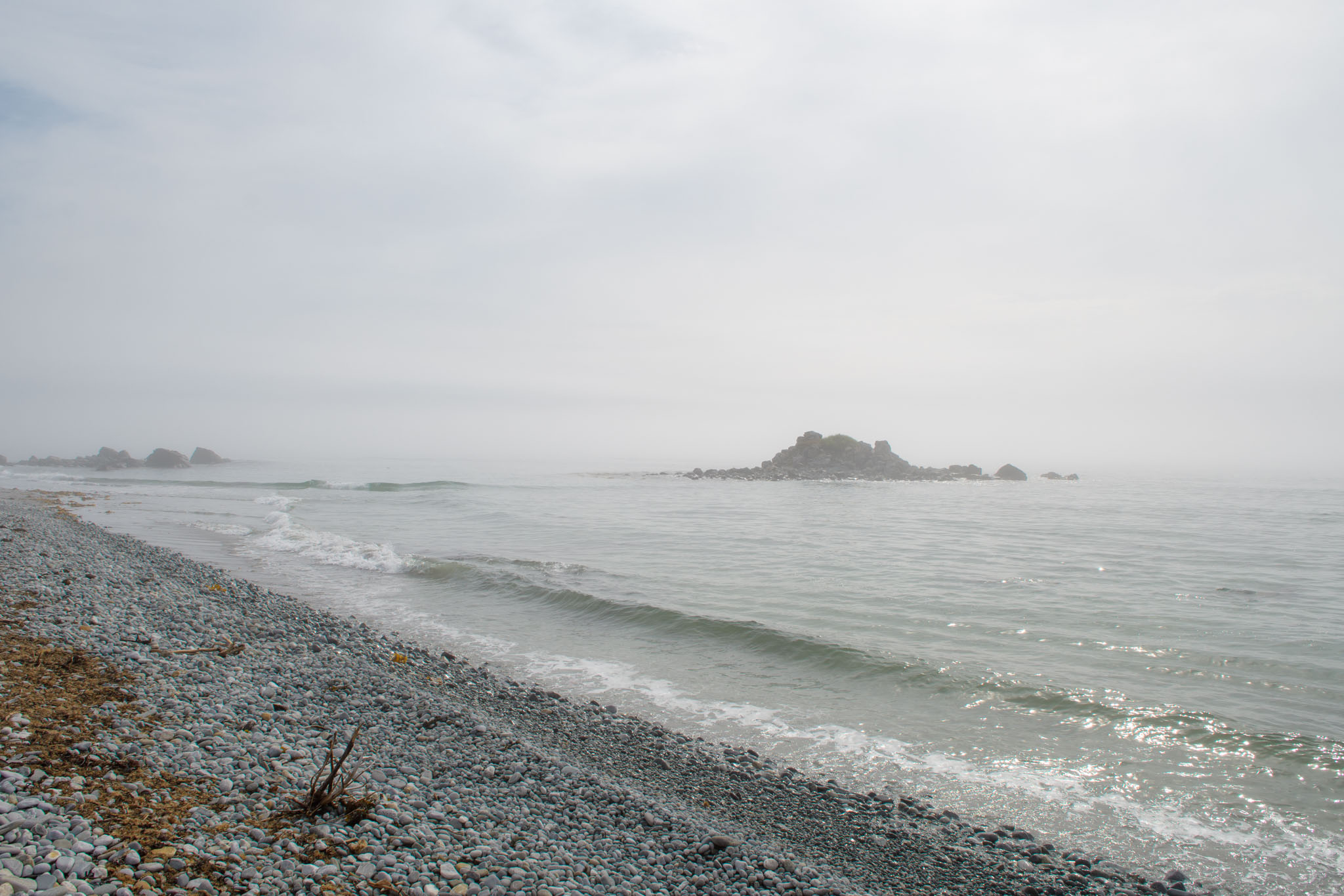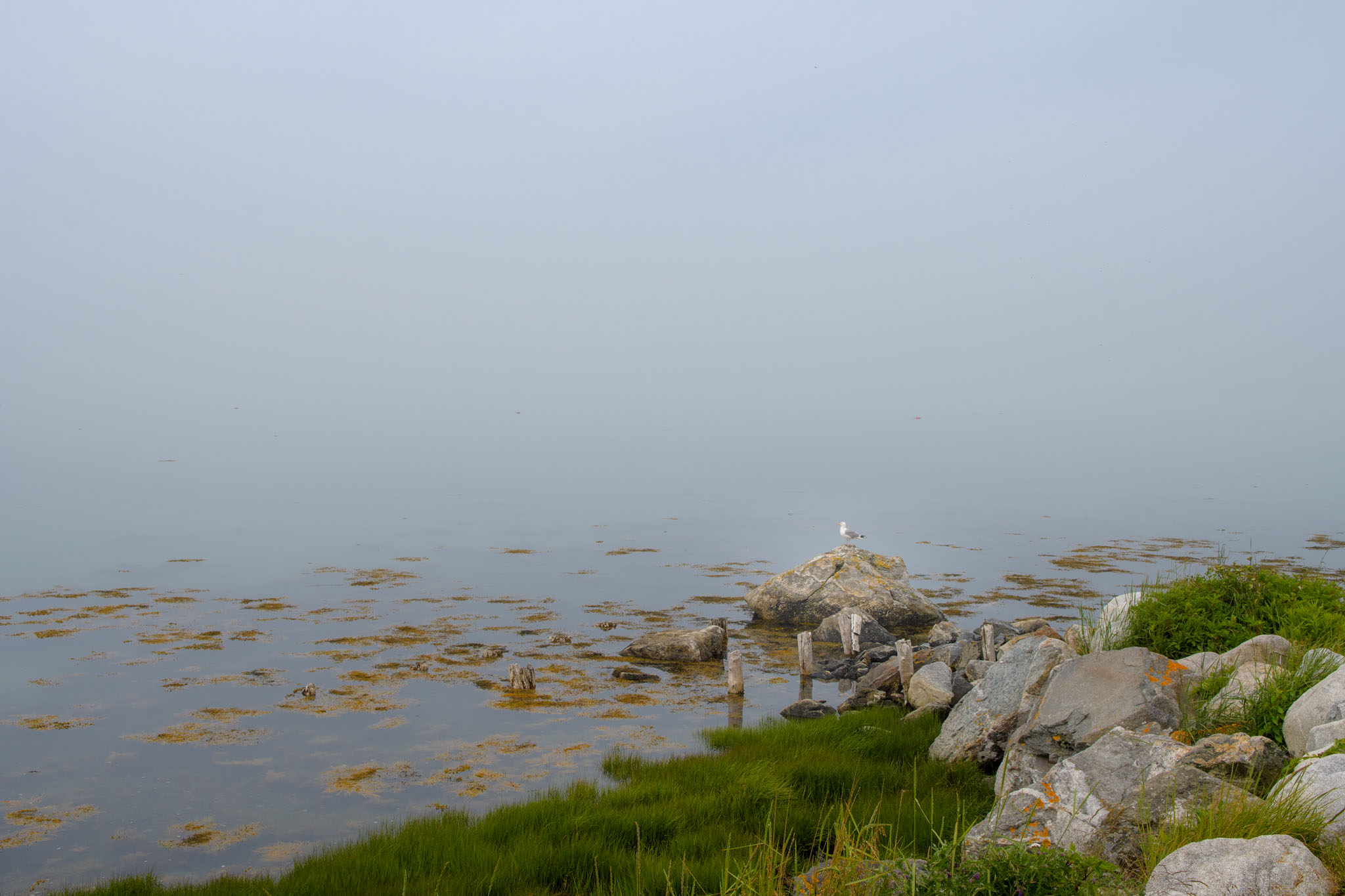 Heute früh haben wir von unserer B&B-Host erfahren, wo der Leuchtturm liegt, den wir gestern Abend nicht gefunden haben. Er befindet sich nämlich auf einer vorgelagerten Insel und kann nur per Boot erreicht werden. Vom Strand aus kann man ihn bei klarer Sicht aber sehen. Dummerweise war es mit der klaren Sicht nicht weit her. Wie schon gestern Abend schien zwar die Sonne, aber der Bodennebel sorgte teilweise für nur wenige Meter Sicht. Also hieß es warten, bis die Sonne stark genug wurde, um den Dunst über dem Meer wenigstens halbwegs zu vertreiben. Kurz nach 11 Uhr hat sich das Ausharren dann gelohnt, und wir sahen zuerst das Licht des Leuchtturms und im Laufe der nächsten Stunde sogar den ganzen Turm.