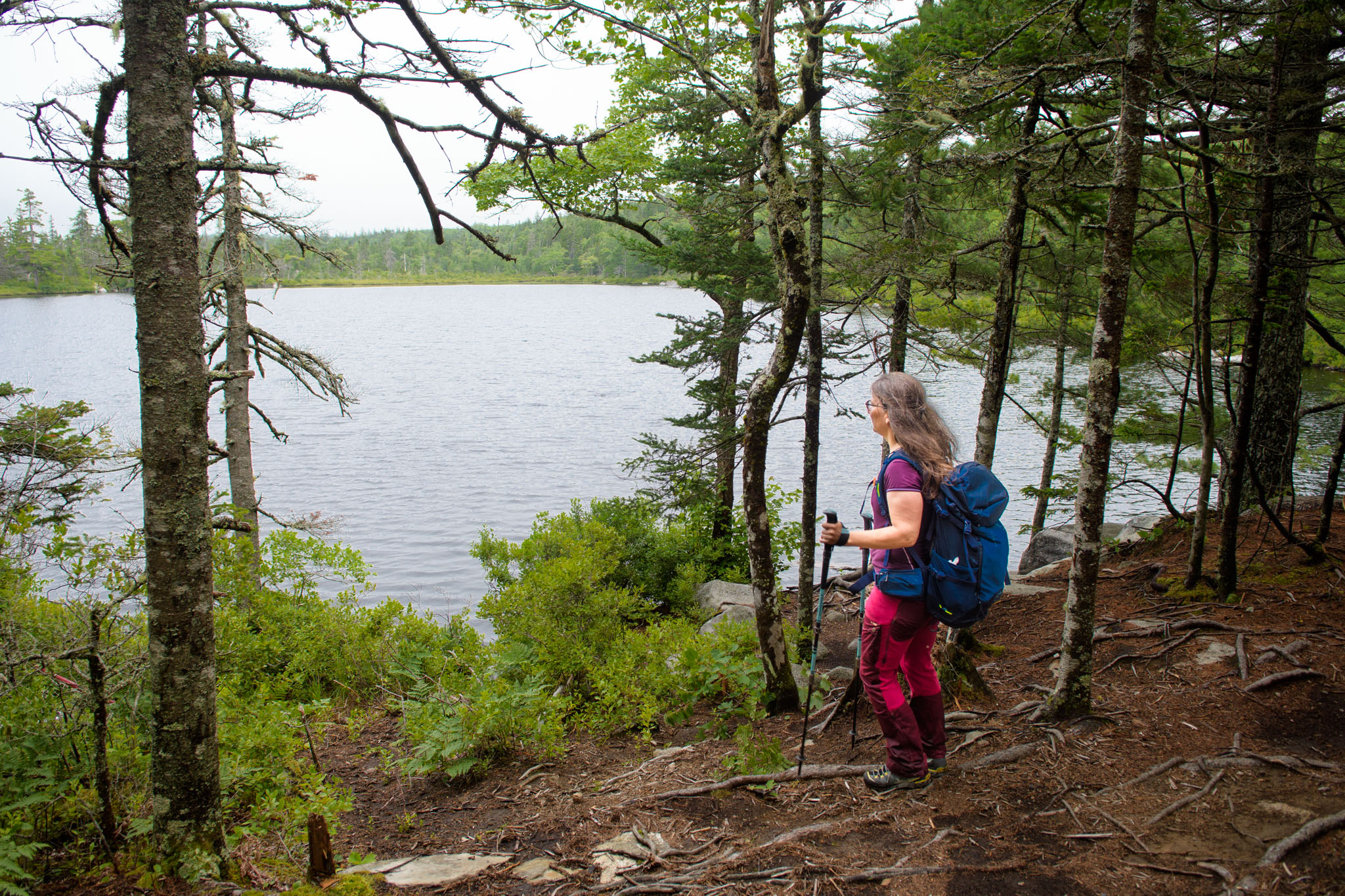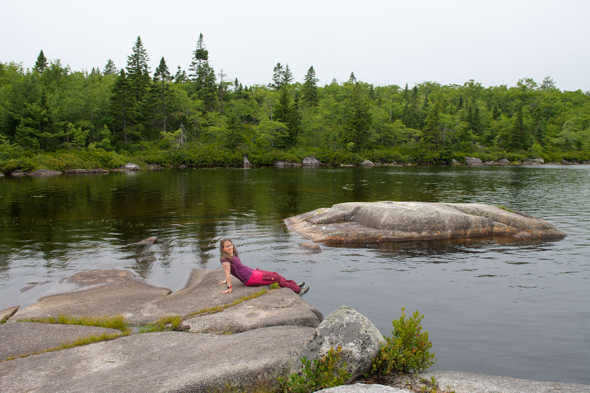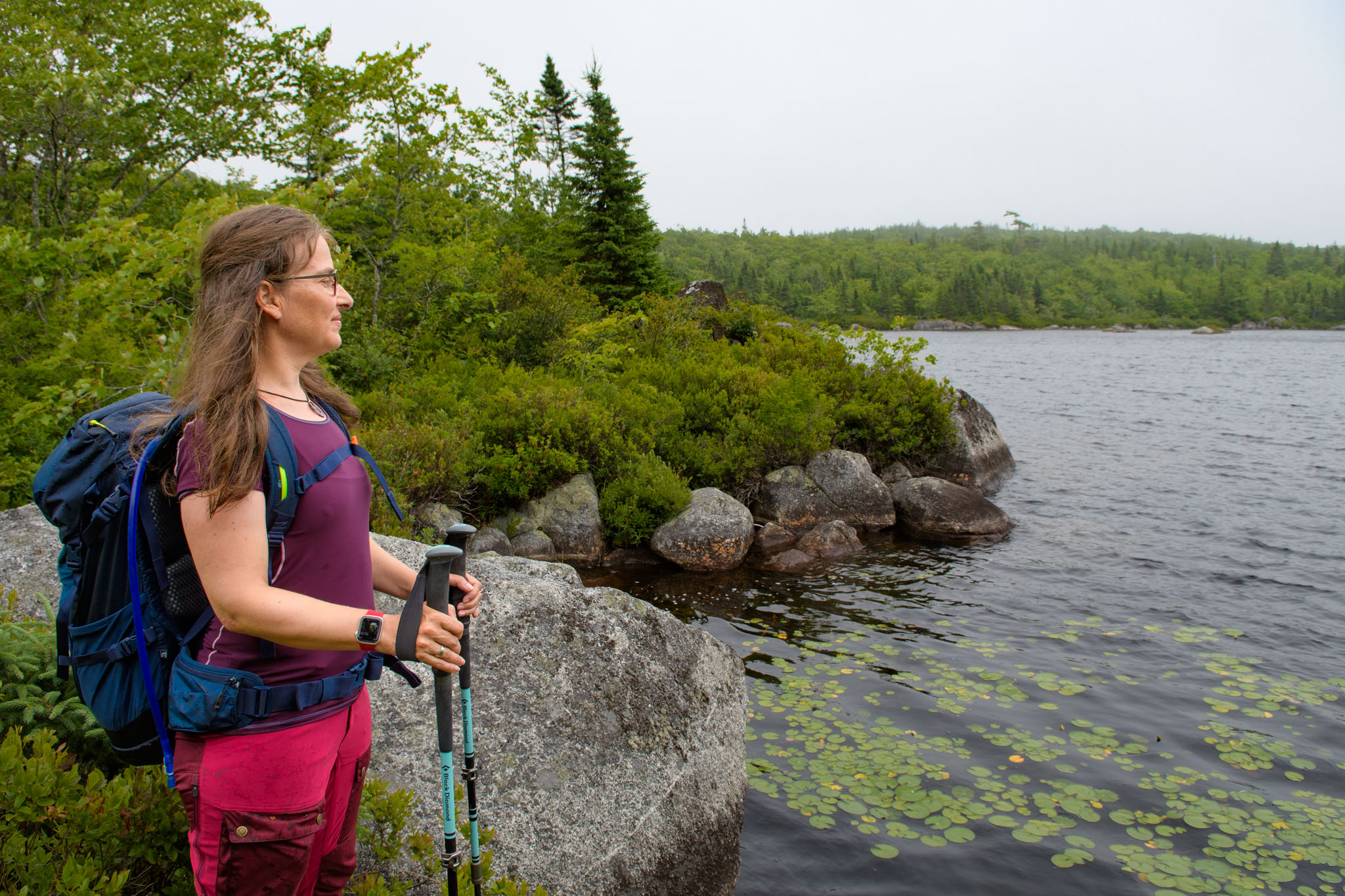 Also hieß es nochmals umzuplanen, so dass wir doch in die Crêperie in Mahone Bay gefahren sind und dort nach alternativen Wanderungen gegoogelt haben. Wir haben dann in der Blue Mountain-Birch Cove Lakes Wilderness Area (nordwestlich von Halifax) eine letztendlich dreieinhalbstündige Wanderung gefunden. Diese war zwar als "schwierig zu navigieren" beschrieben, aber da sie ansonsten sehr schön klang, wollten wir uns davon nicht aufhalten lassen. Es war dann wirklich eine der schönsten Wanderungen bisher, deutlich anstrengender als die letzten beiden, obwohl sie deutlich kürzer war, und ohne GPS hätte man die Route definitiv nicht gehen können.