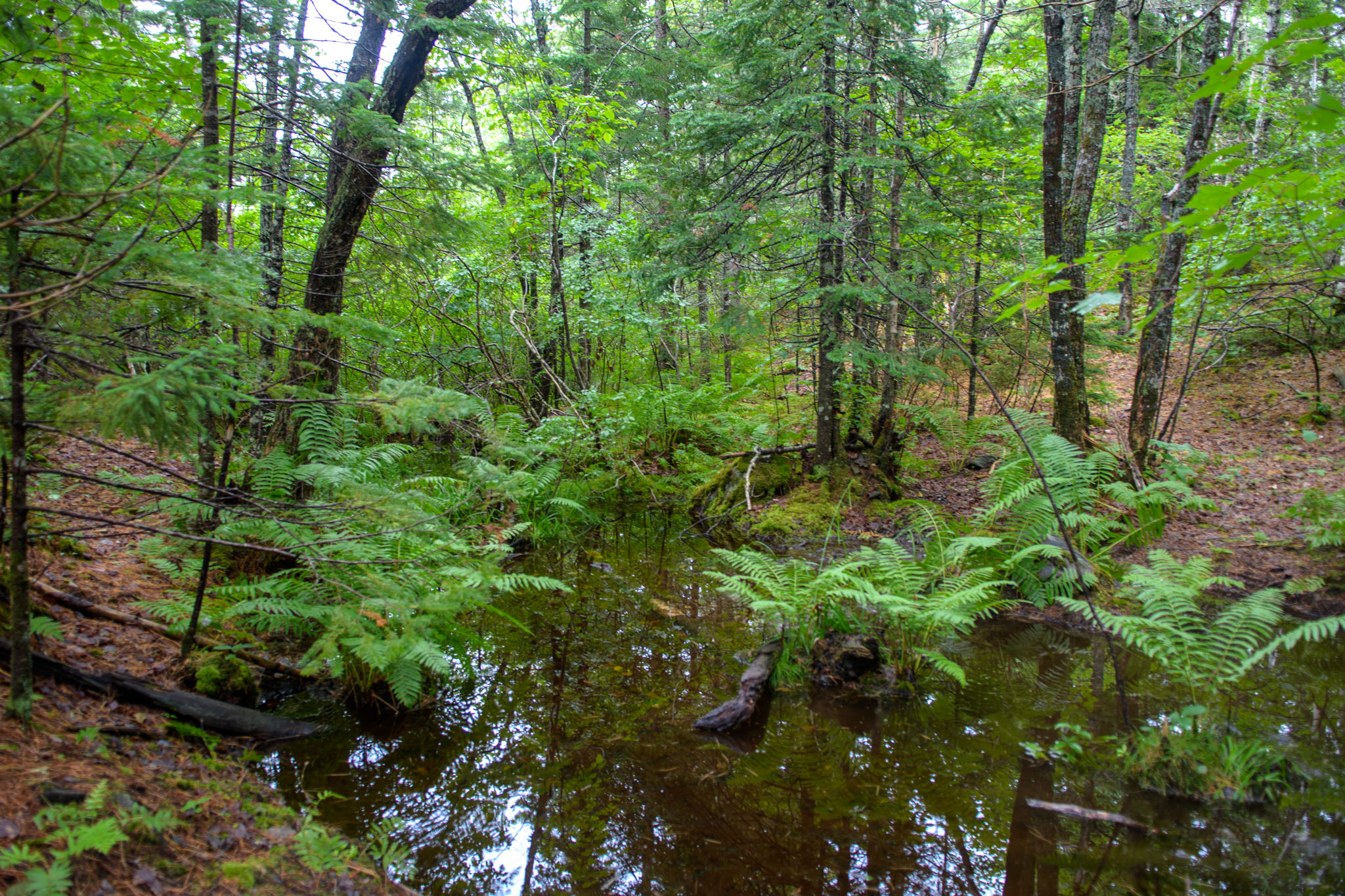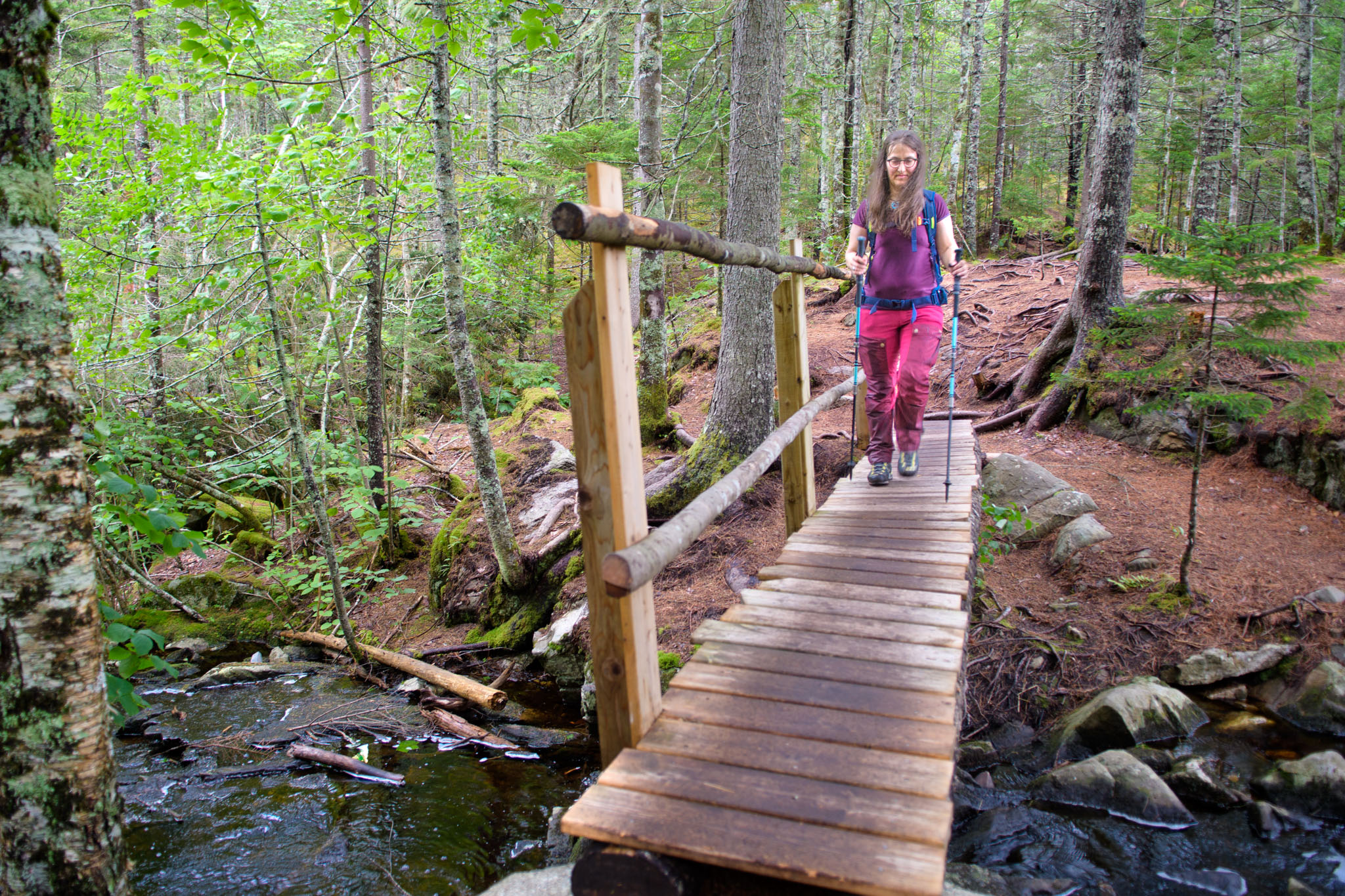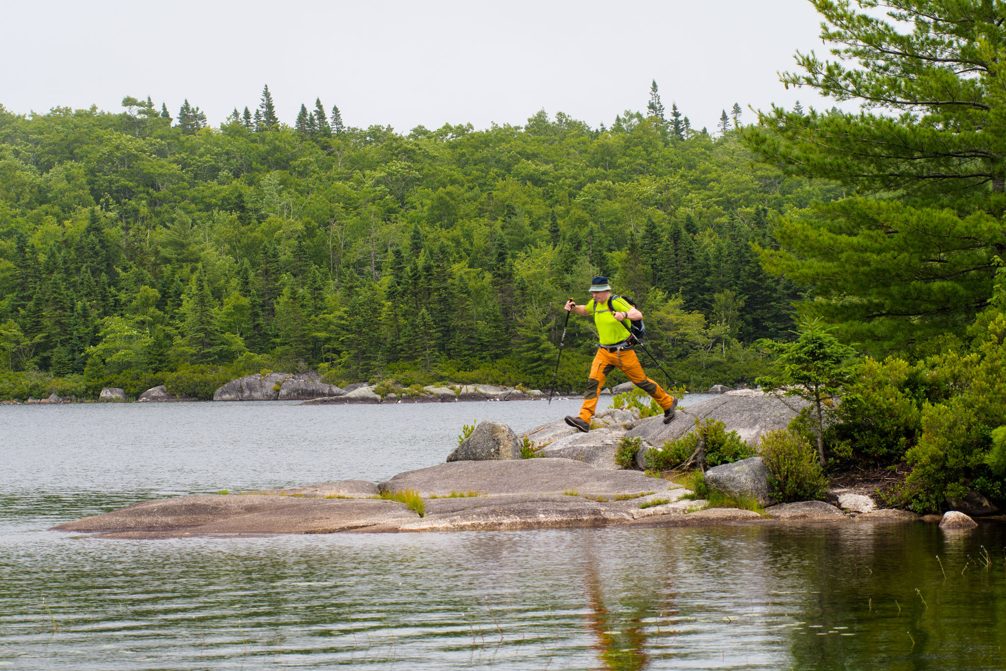 Also hieß es nochmals umzuplanen, so dass wir doch in die Crêperie in Mahone Bay gefahren sind und dort nach alternativen Wanderungen gegoogelt haben. Wir haben dann in der Blue Mountain-Birch Cove Lakes Wilderness Area (nordwestlich von Halifax) eine letztendlich dreieinhalbstündige Wanderung gefunden. Diese war zwar als "schwierig zu navigieren" beschrieben, aber da sie ansonsten sehr schön klang, wollten wir uns davon nicht aufhalten lassen. Es war dann wirklich eine der schönsten Wanderungen bisher, deutlich anstrengender als die letzten beiden, obwohl sie deutlich kürzer war, und ohne GPS hätte man die Route definitiv nicht gehen können.
