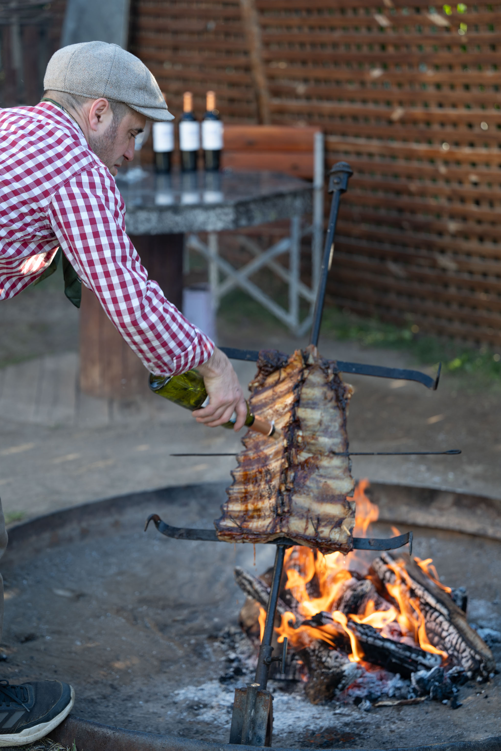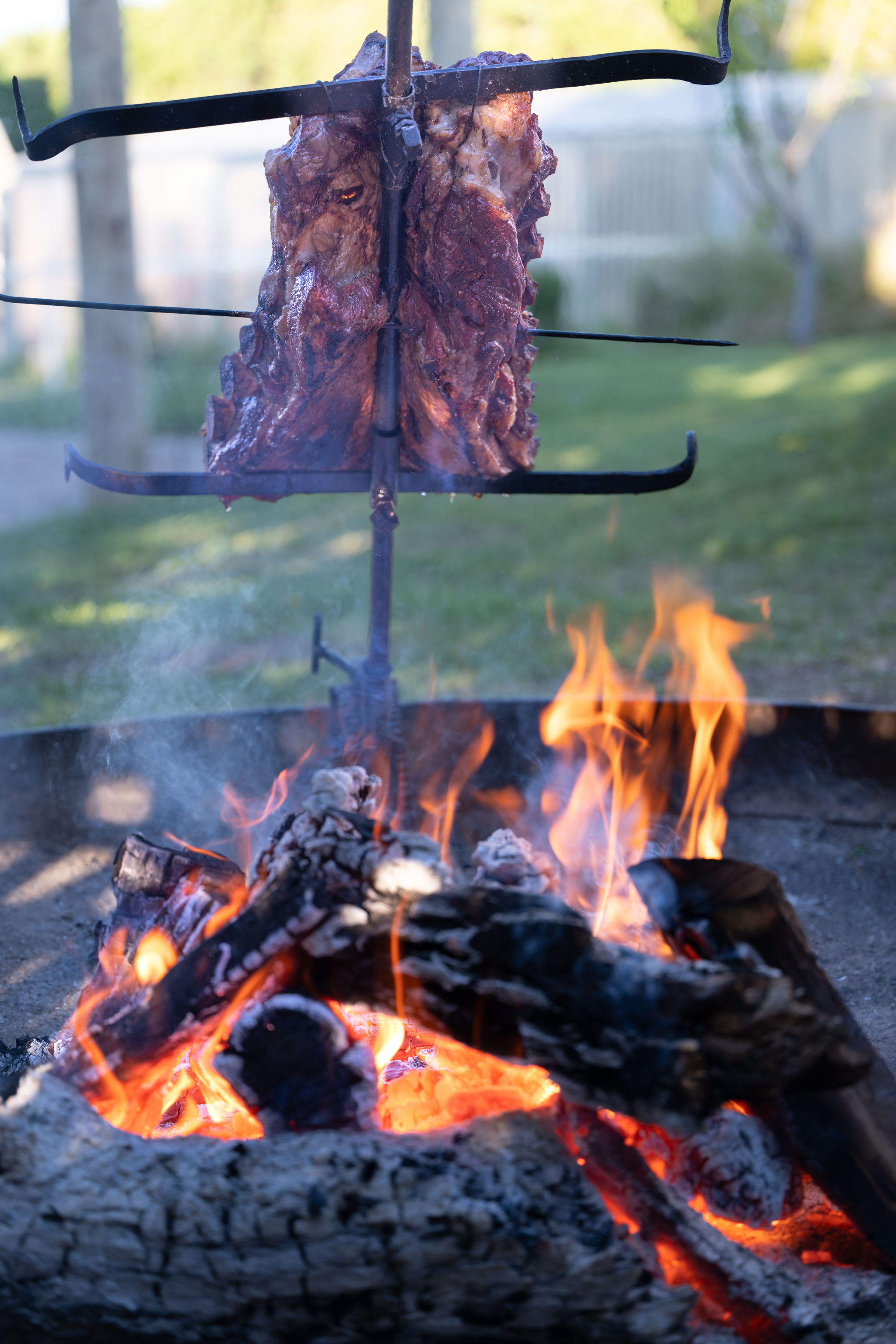 Nach ursprünglichem Plan und wenn die Gruppe deutlich größer gewesen wäre, wäre ein ganzes Lamm auf den Grill gekommen. Aber zu viert ist das natürlich nicht machbar und da einer von uns kein Lamm isst, gab es ein Stück Rind.