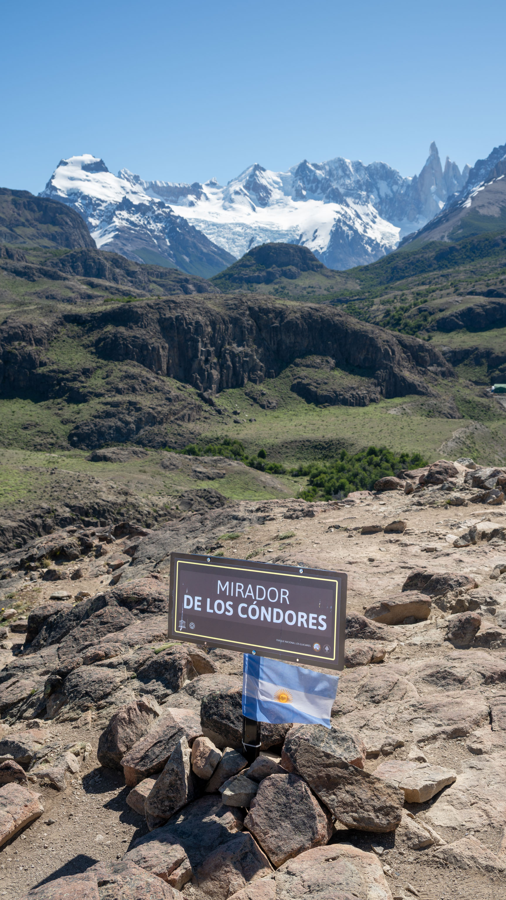 Unser Plan ist es nämlich, übermorgen früh zum Sonnenaufgang hier hoch zu kommen, denn man hat von hier einen sehr schönen Blick in die richtige Richtung auf Fitz Roy und Cerro Torre und es ist natürlich sehr hilfreich, wenn man den Hochweg und den Standort, an dem man in völliger Dunkelheit sein Stativ aufbauen wird, schon einmal bei Tageslicht gesehen hat.