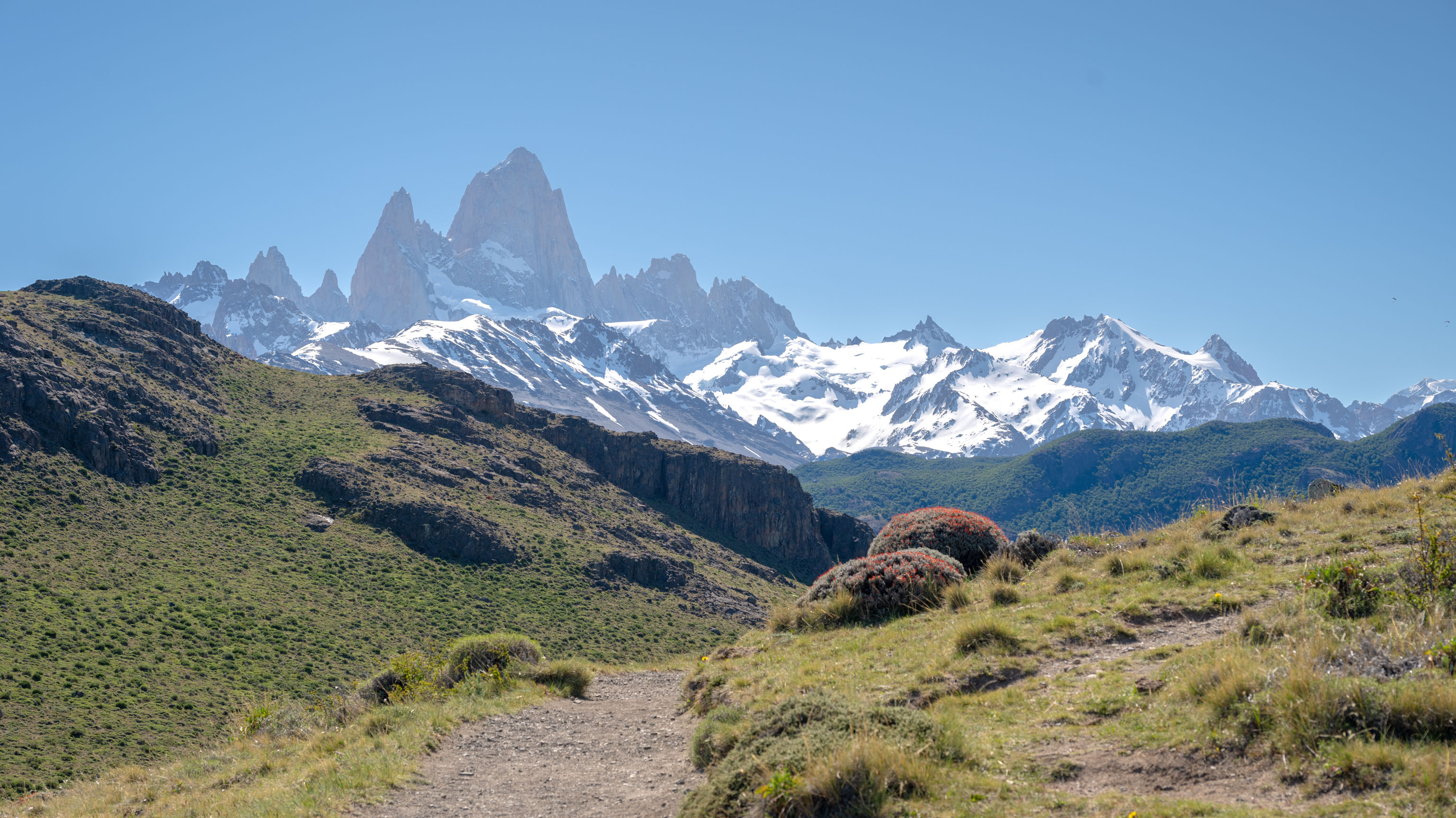 Am Nachmittag nach unserer Fahrt nach El Chaltén hatten wir noch genügend Zeit, um mal schnell 7½ km (hin und zurück) auf den hiesigen Hausberg zu wandern.