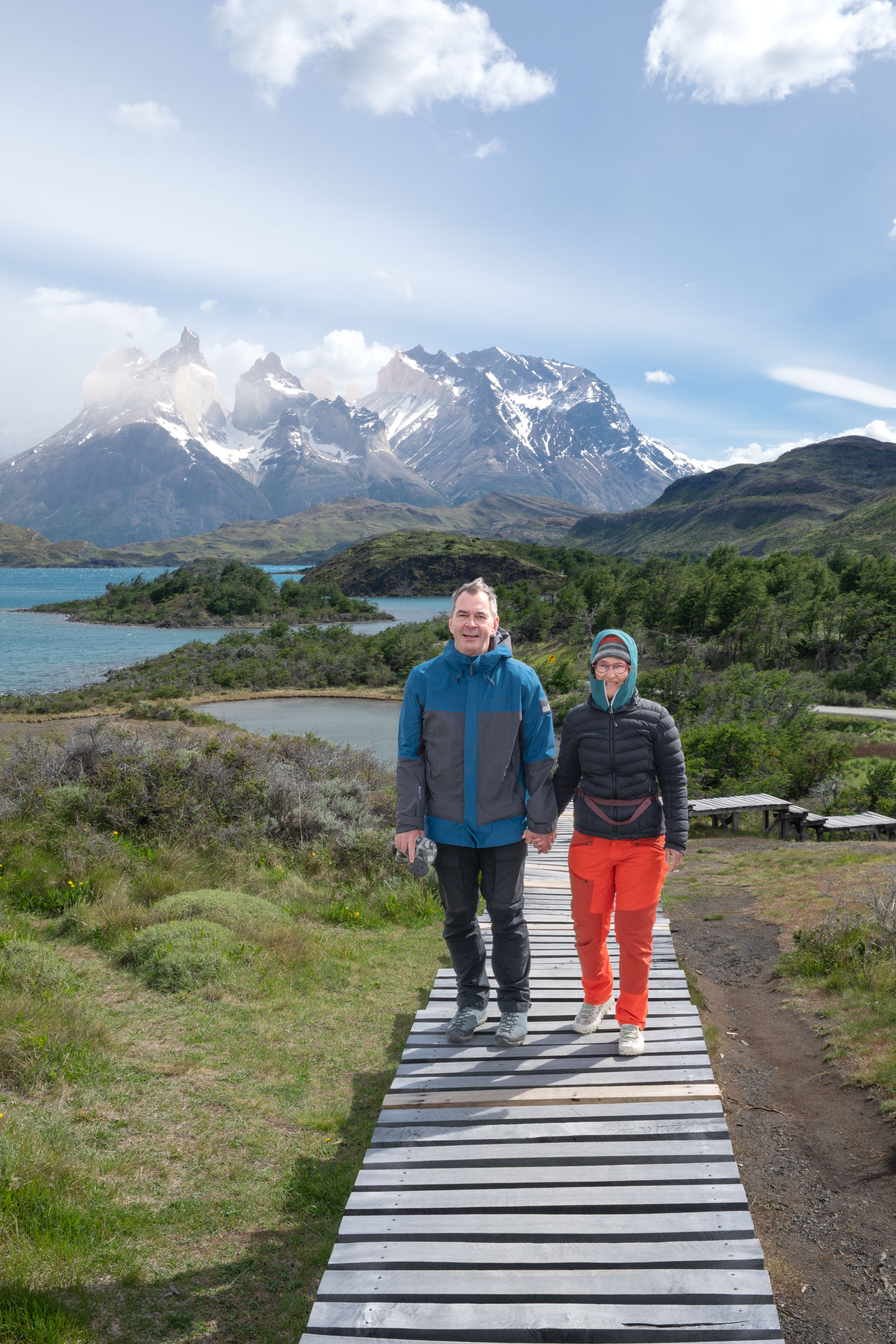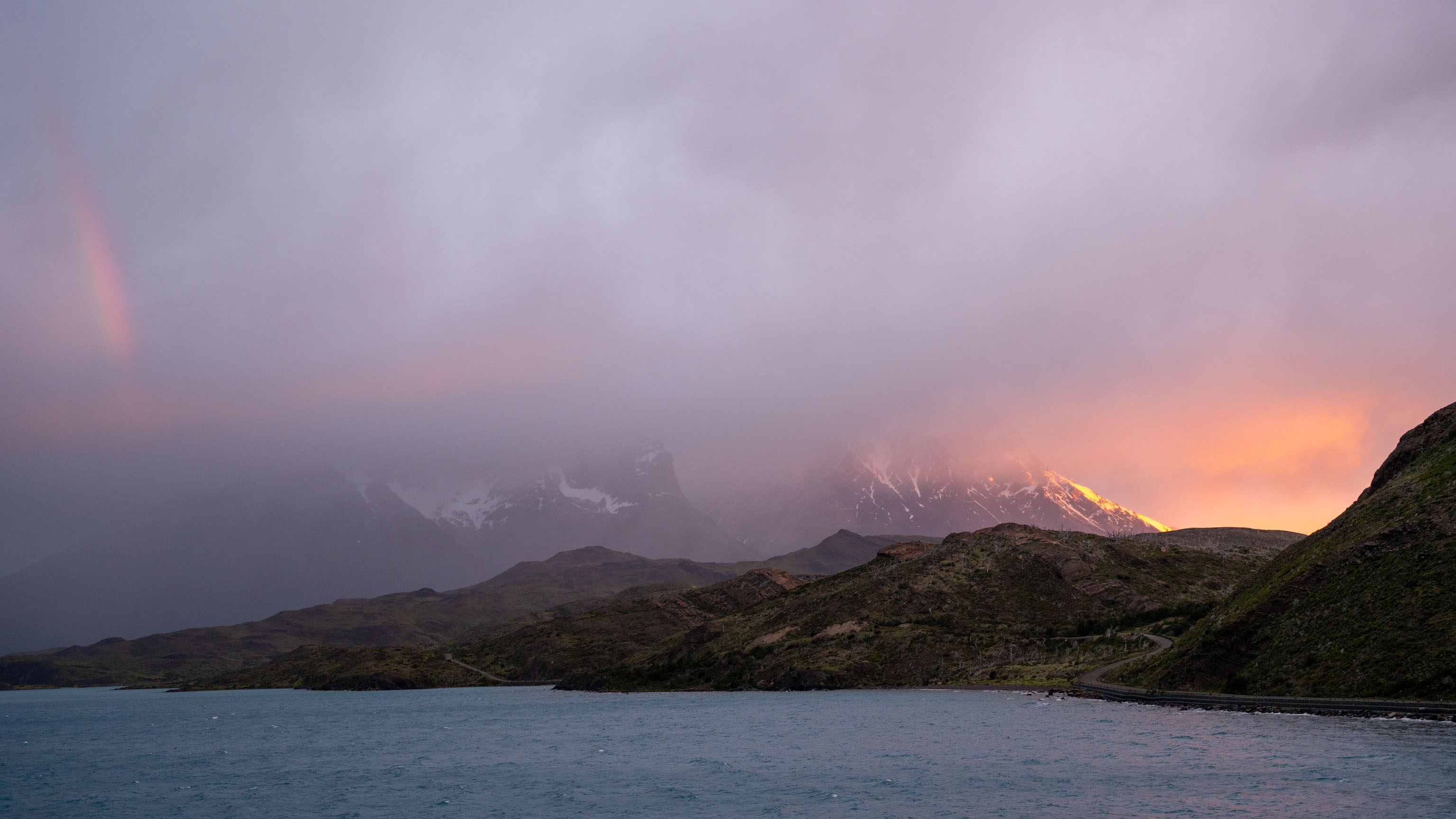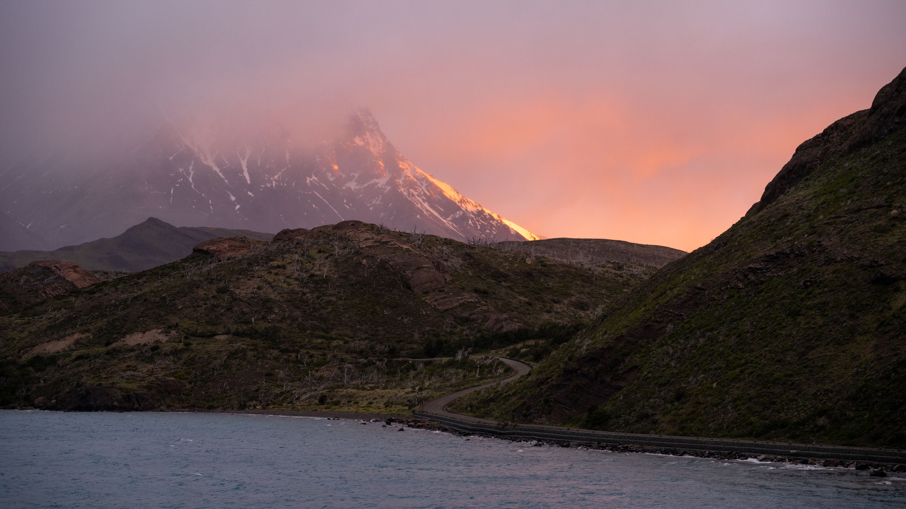 Als wir kurz vor 5:53 Uhr zu unserem Aussichtspunkt marschiert sind, hatten wir keine wirkliche Hoffnung, doch irgendwann schien dann die aufgehende Sonne doch seitlich den Cuernos del Paine an. Es war nicht so toll wie die beiden Sonnenaufgänge in Argentinien, aber gelohnt hat es sich trotzdem – wir mussten ja von unserem Zimmer aus nur ein paar Meter gehen.