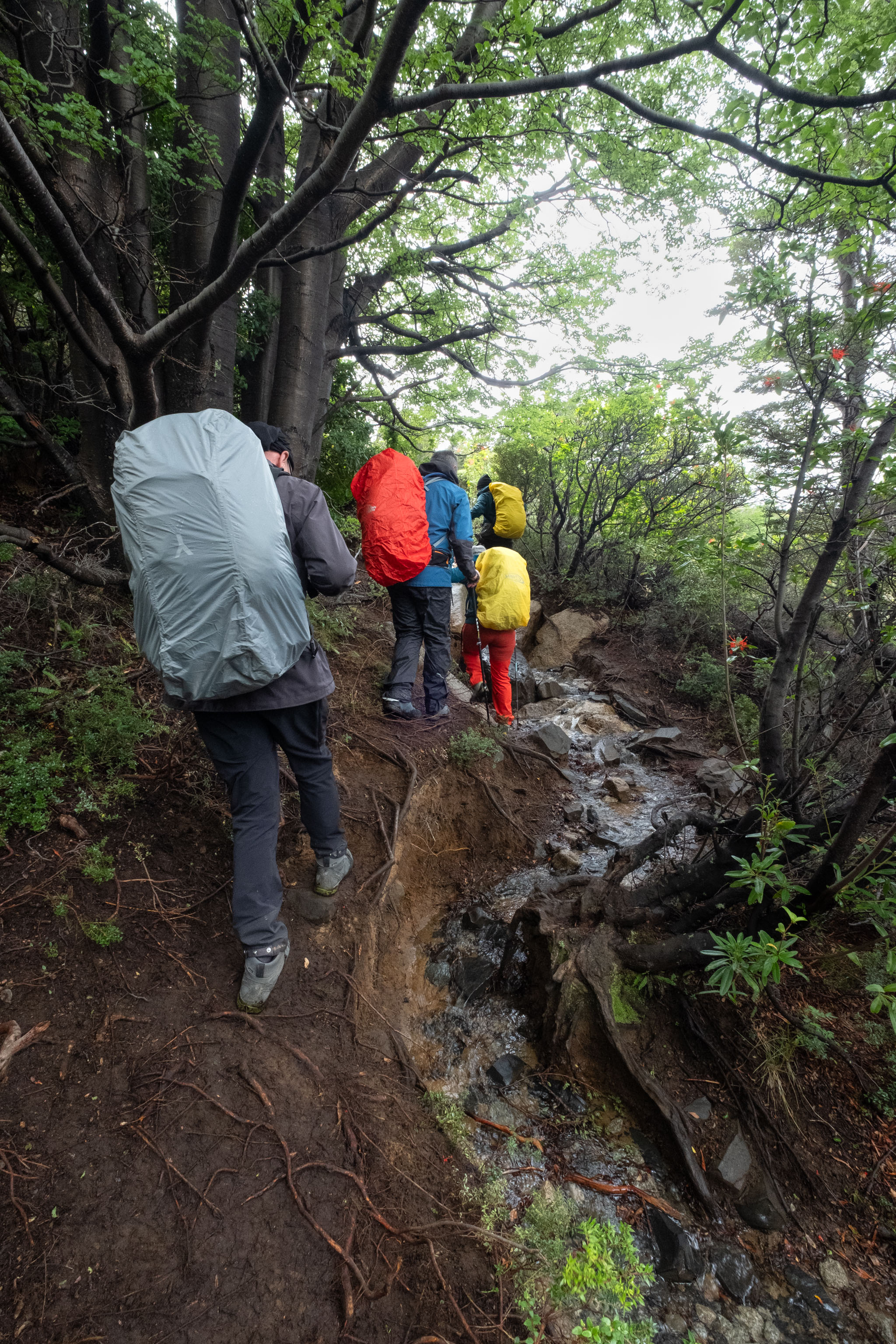 Der viele Regen verwandelte allerdings in der zweiten Hälfte der Tour den Wanderpfad mehrfach in einen veritablen Bach, der an einer Stelle knie- bis hüfttief war und unsere gesamte Anstrengung herausforderte.
