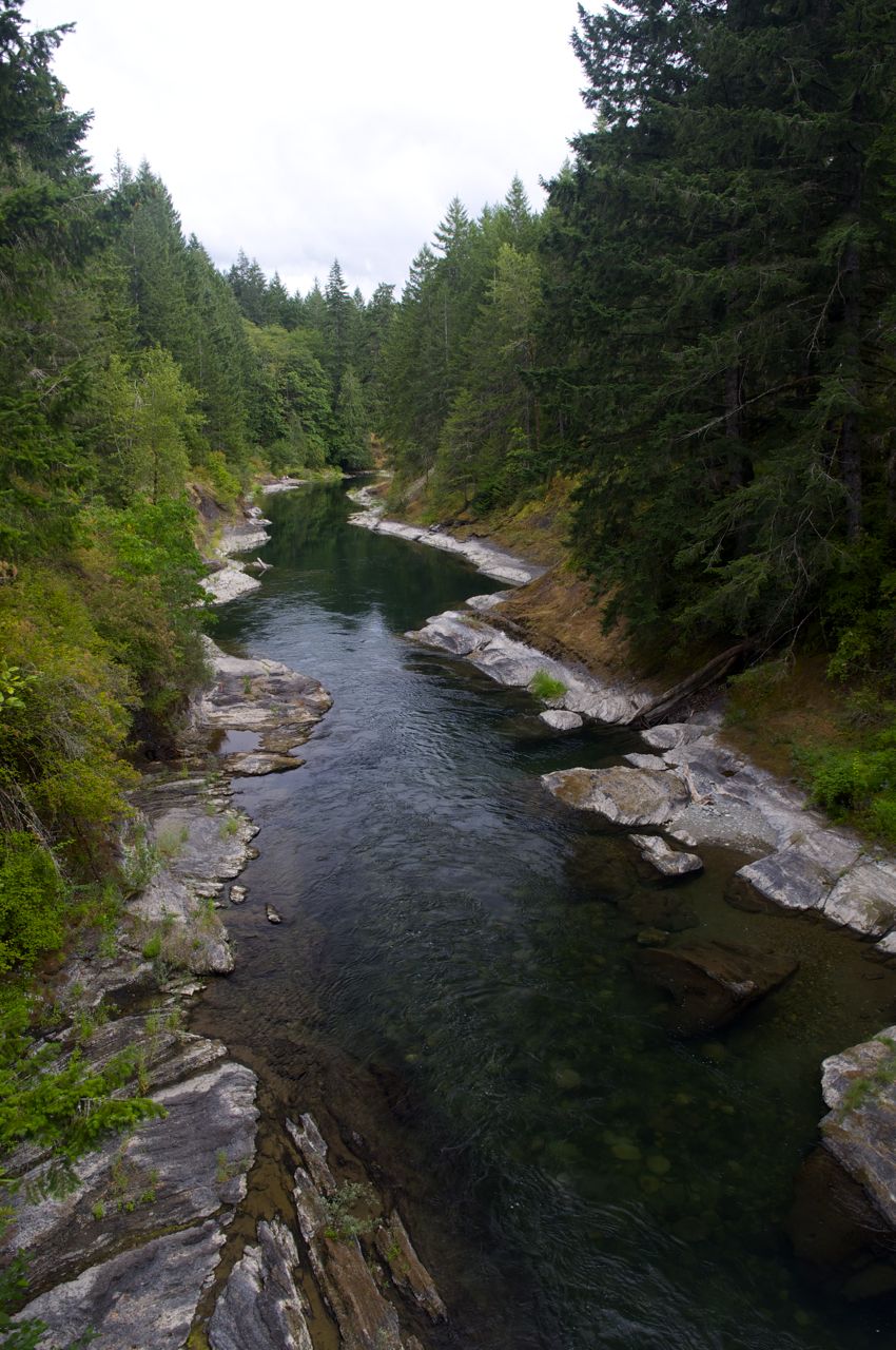 Kaum hat man die Zivilisation der Städte hinter sich gelassen, wird das Leben zur Herausforderung. Aber glücklicherweise gibt es heutzutage ja Navigationsgeräte, um wieder aus dem Wald heraus zu finden und außerdem Kameras, mit denen man all die schönen Stellen zwischen Victoria und Duncan fotografieren kann, zu denen man sich im Wald verirrt hat.