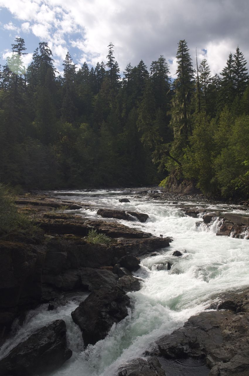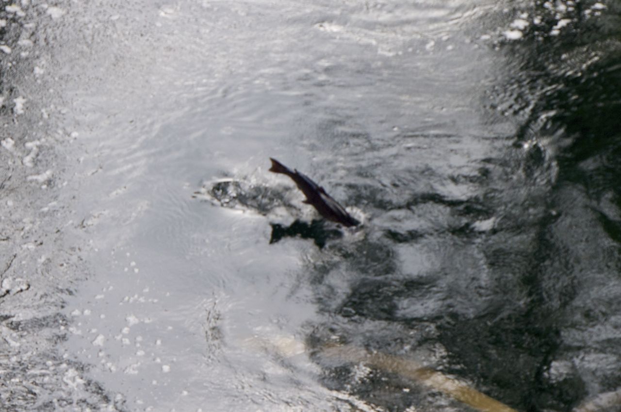 Auf einem Ausflug in der Nähe von Port Alberni durften wir erstmals Lachse auf ihrer Wanderung zu ihren Laichplätzen beobachten. Dazu müssen sie auf dieser Route einen 9 Meter hohen Wasserfall flußaufwärts(!) überwinden. Im Gegensatz zu den gestrigen Schwarzbären sind die Lachse allerdings gar nicht so einfach zu fotografieren, denn erstens zeigen sie sich nur ganz selten über Wasser und zweitens halten sie nicht still. ;-)